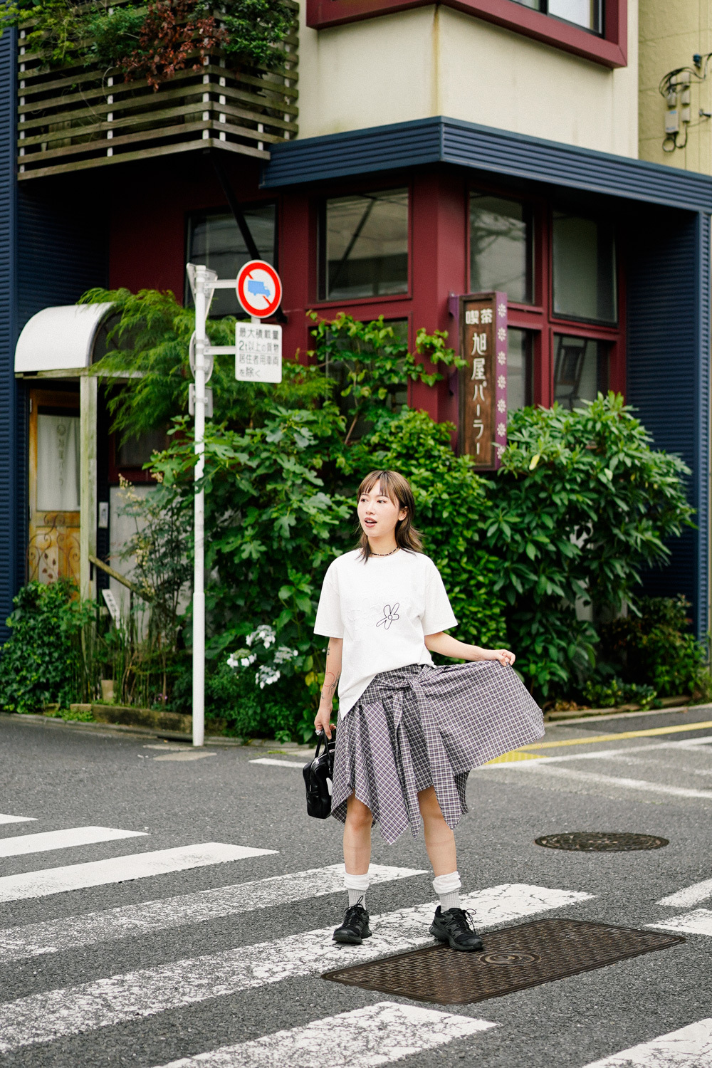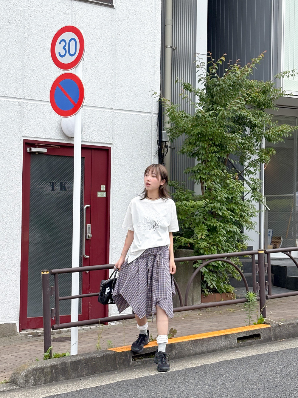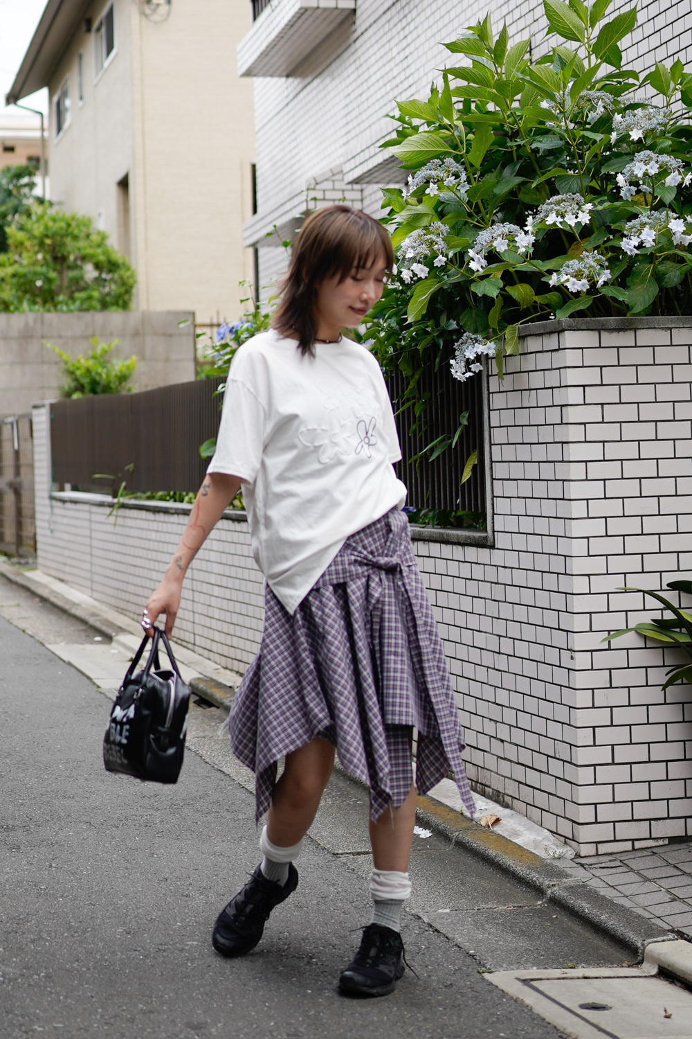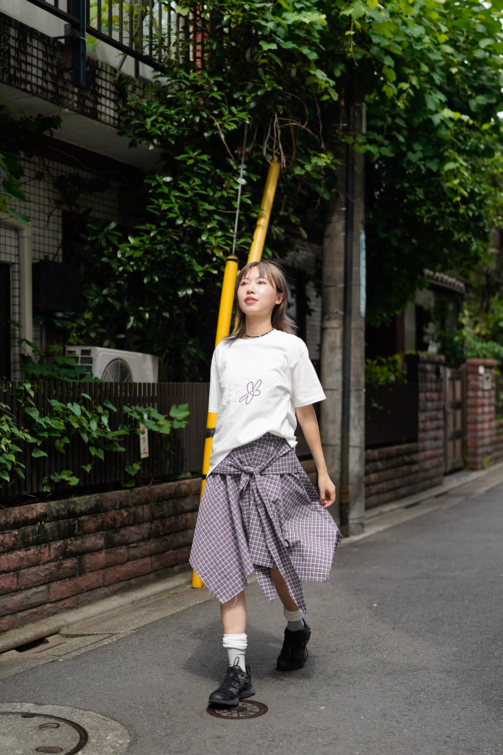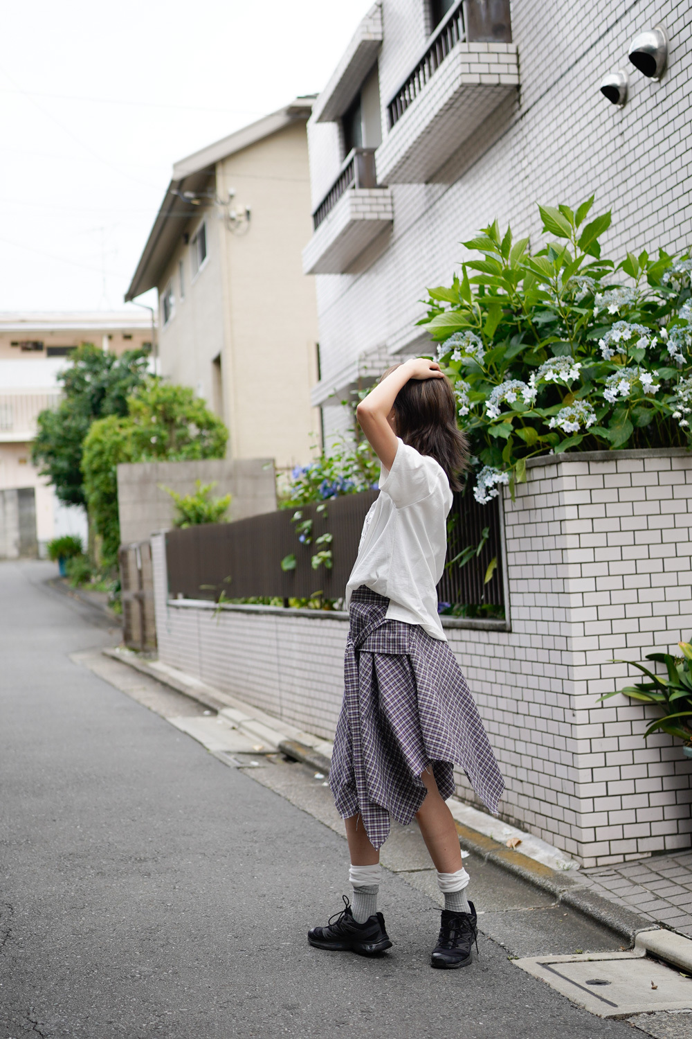 Happy price~irregular checked wrapping skirt (PURPLE / BLACK)- Free size