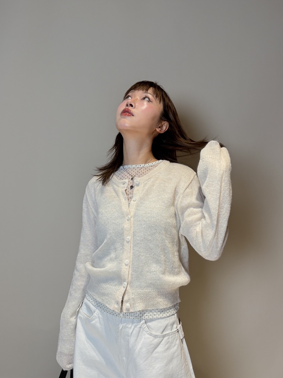 Happy price~Mohair cardigan (WHITE/YELLOW/GREY) - mohair 8% wool 22%