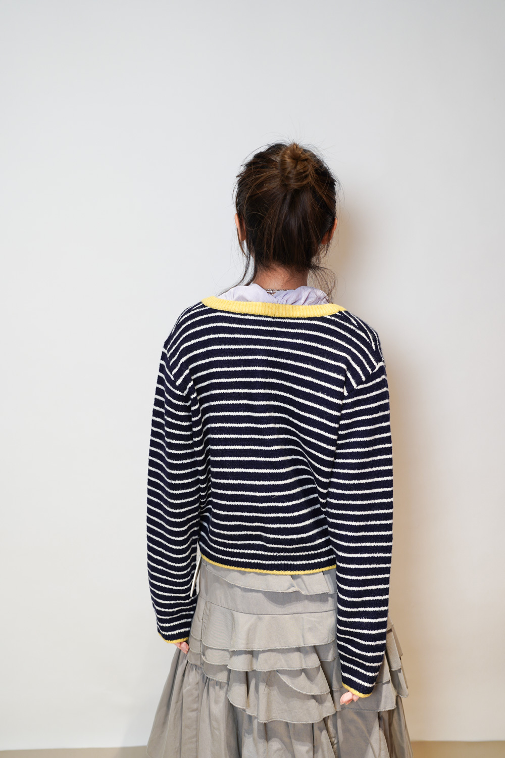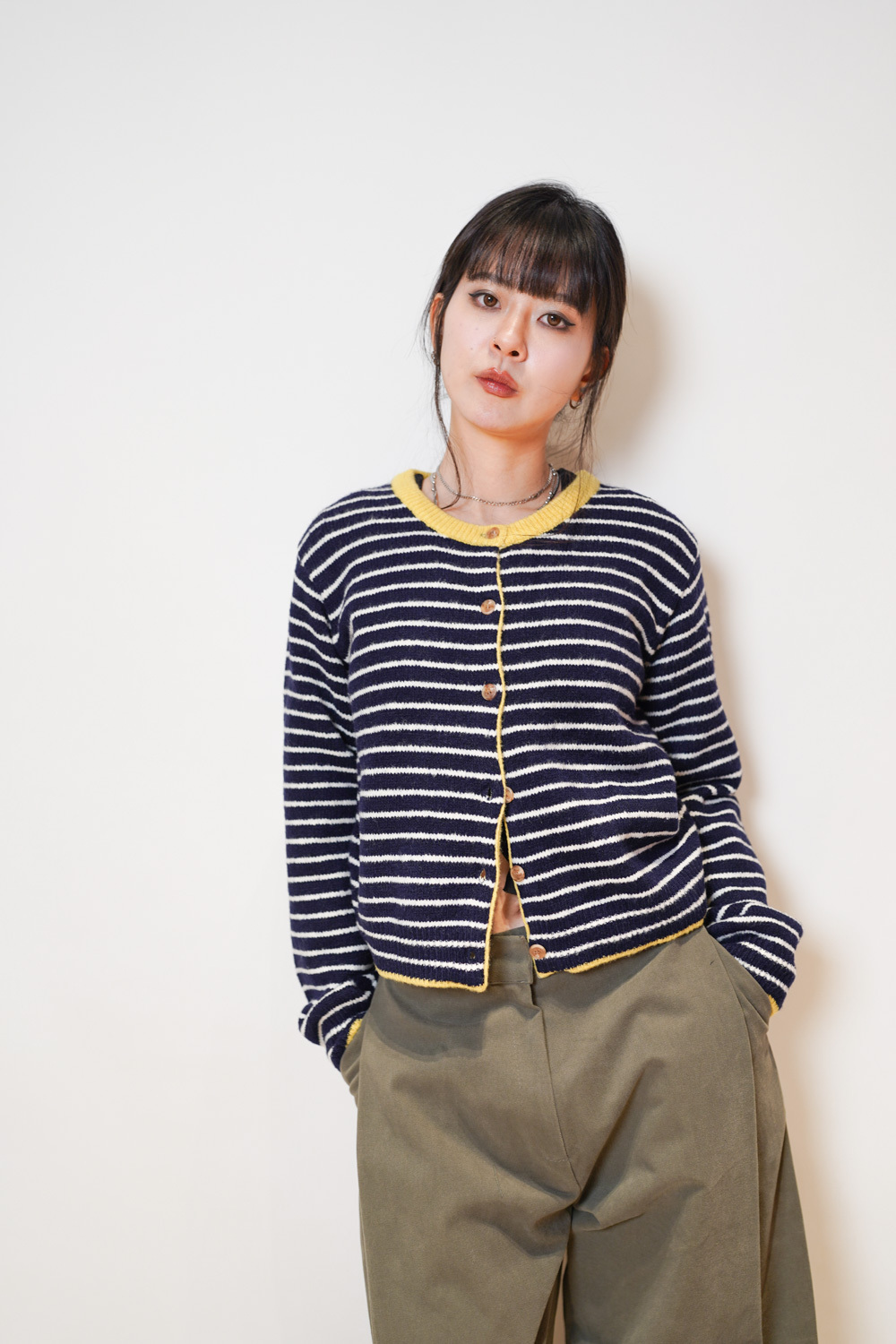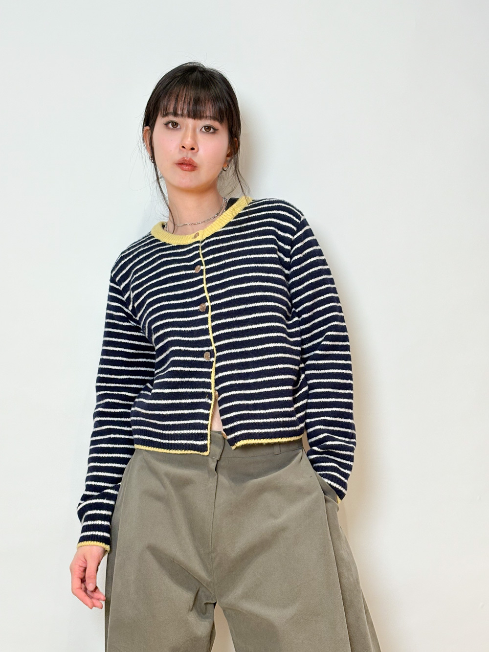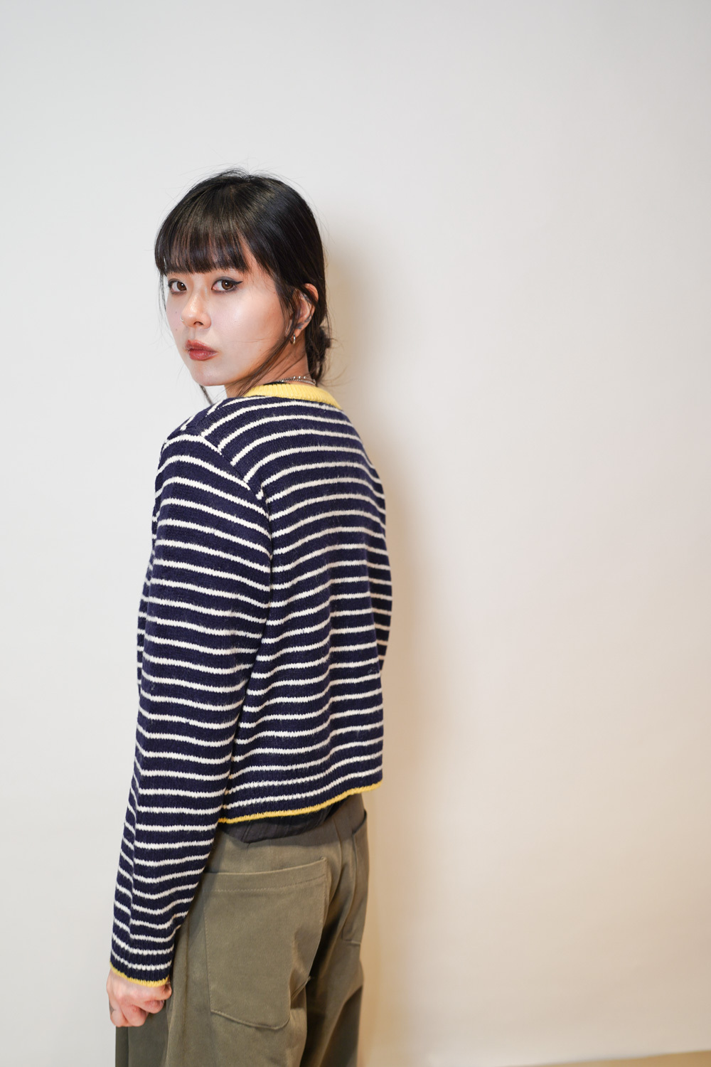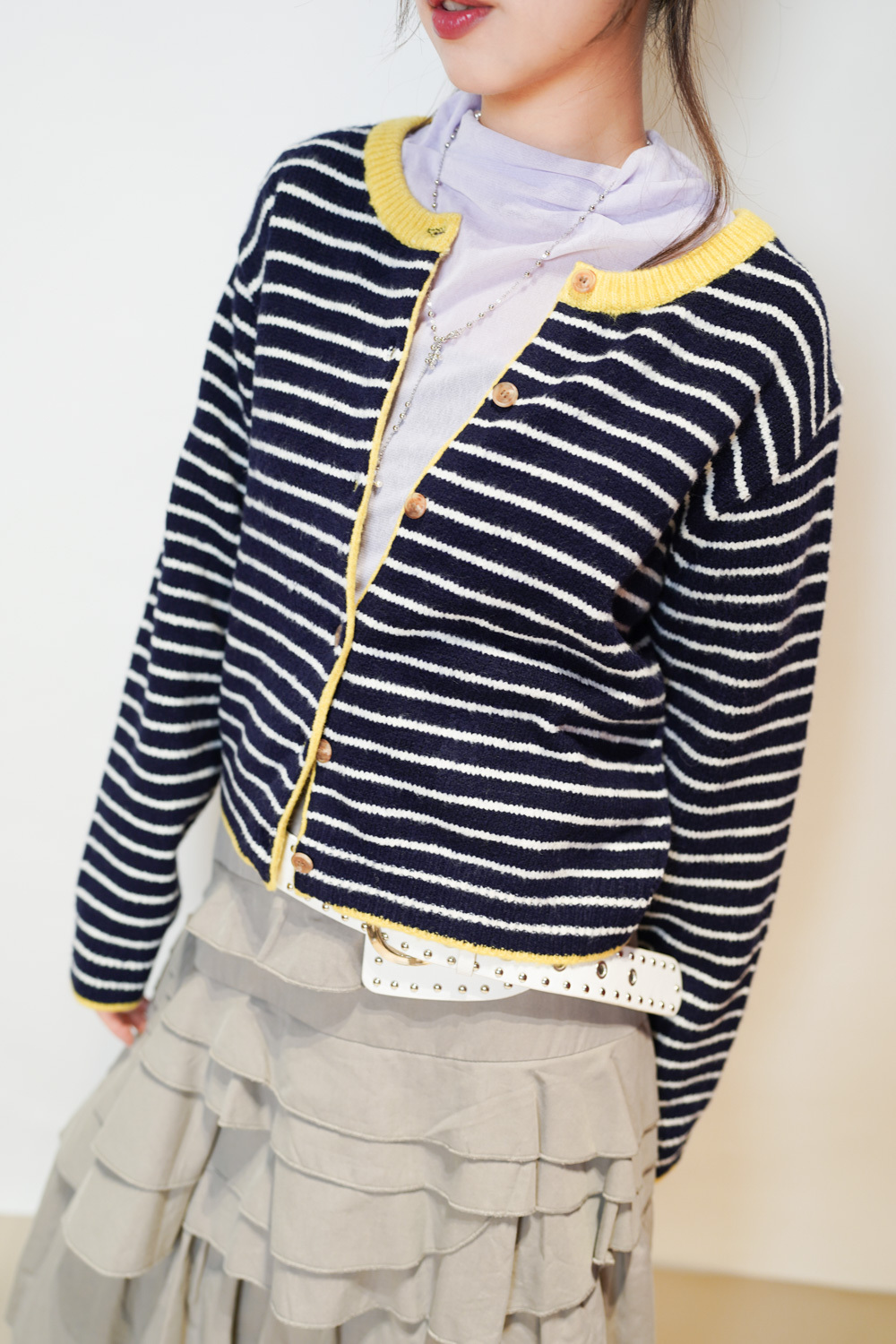 藍條紋撞粉色領口 可愛活潑/ 白色條紋撞黃色領口 日常百搭/棕色條紋撞藍色領口 日系秋日/