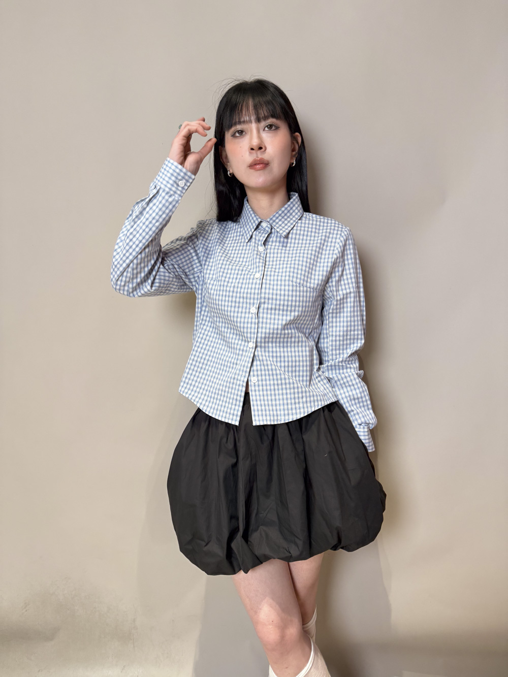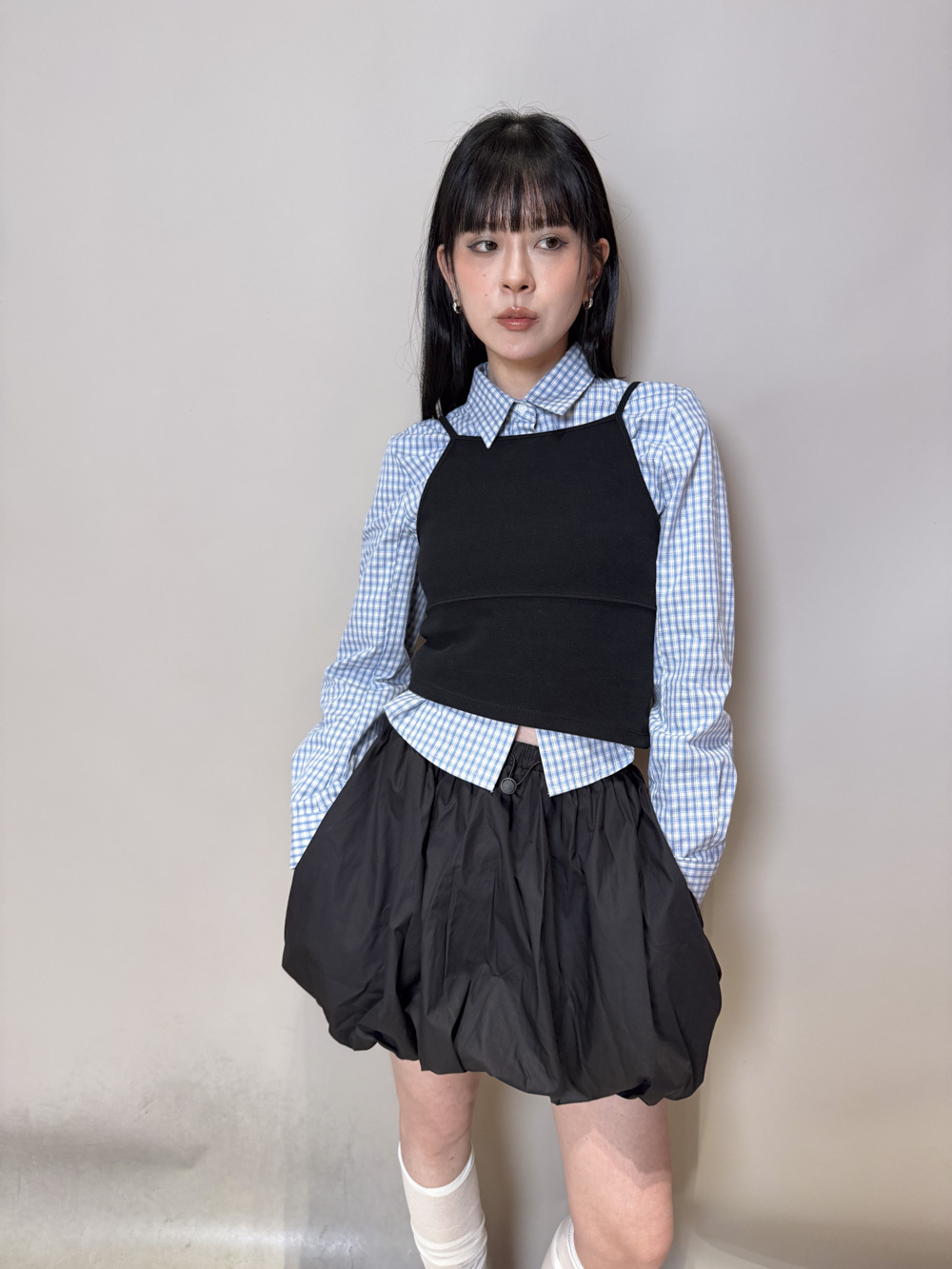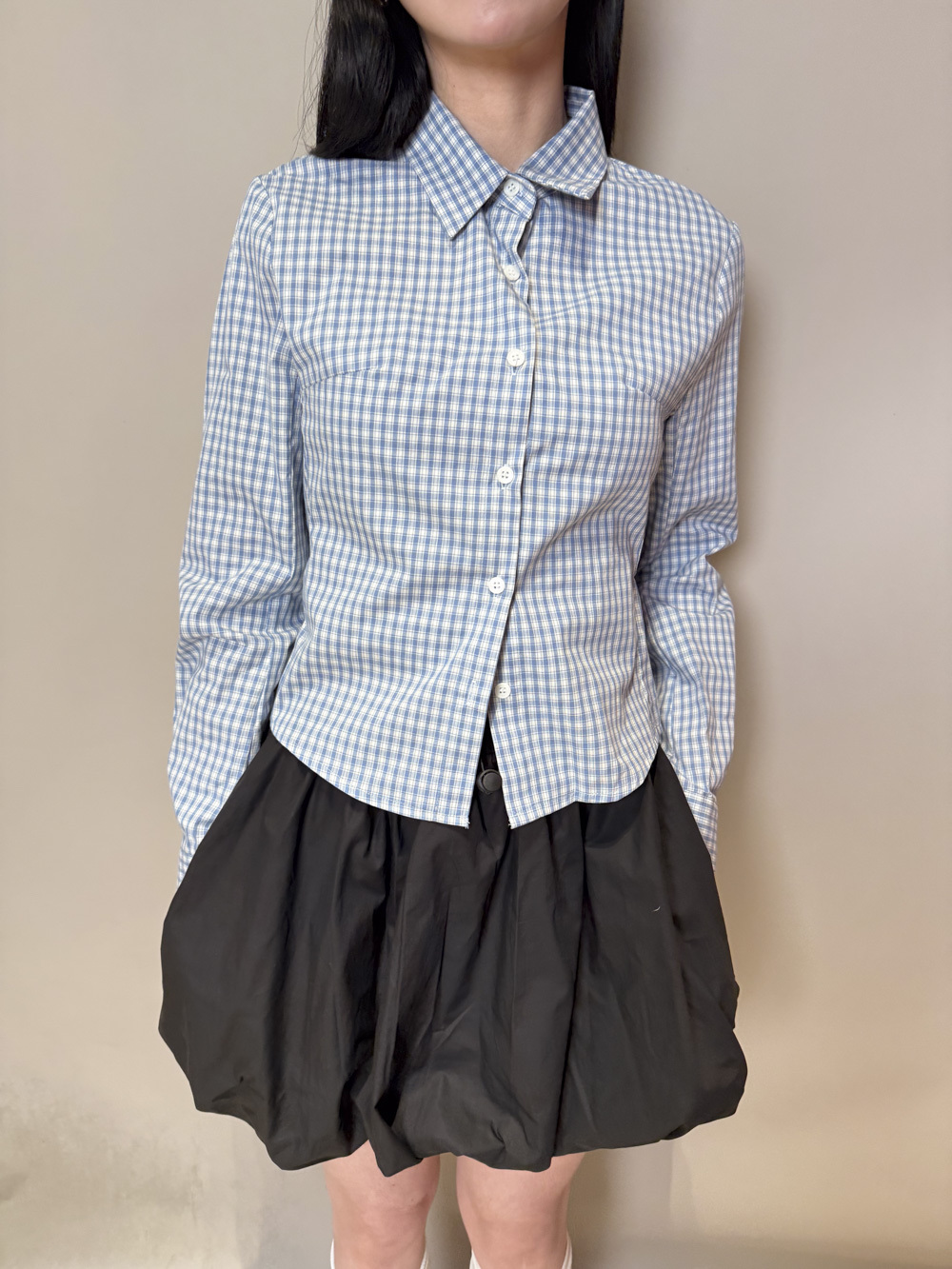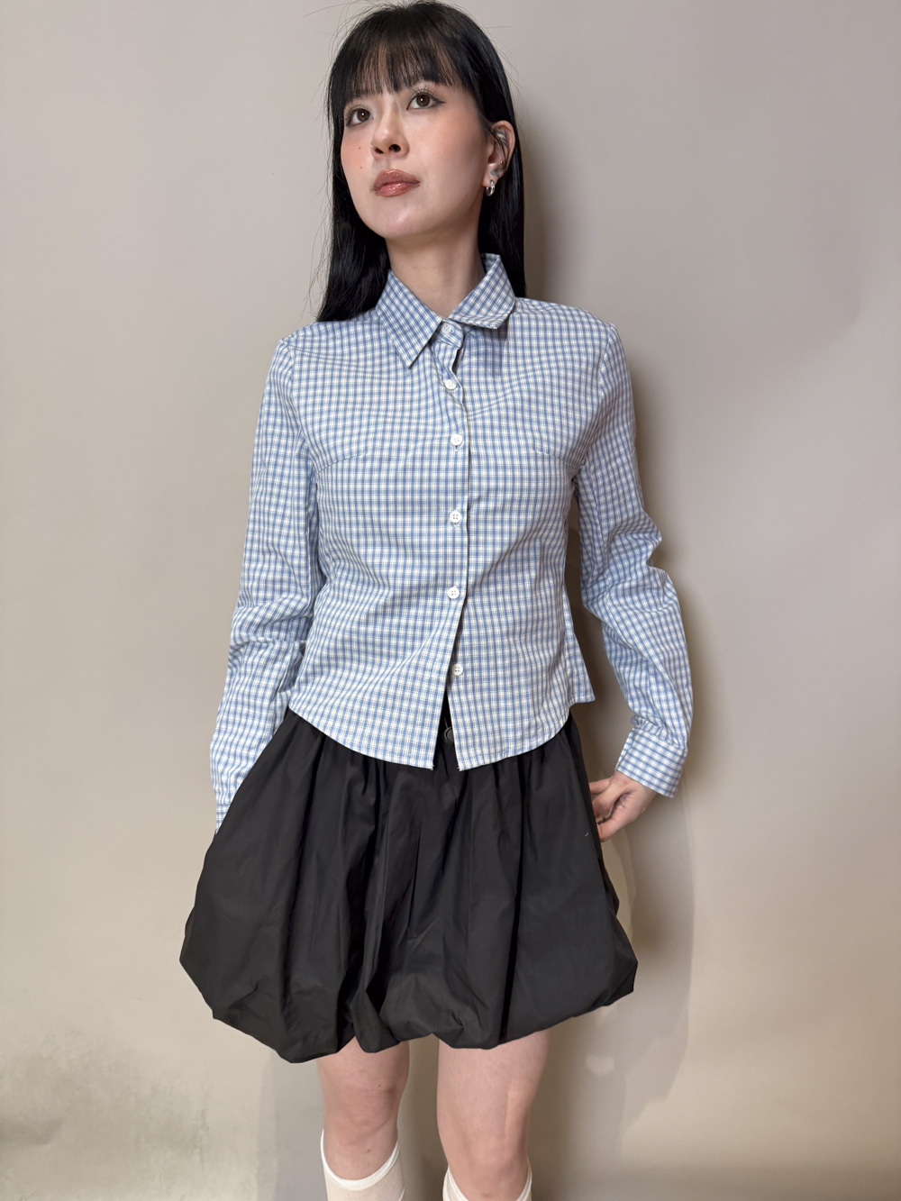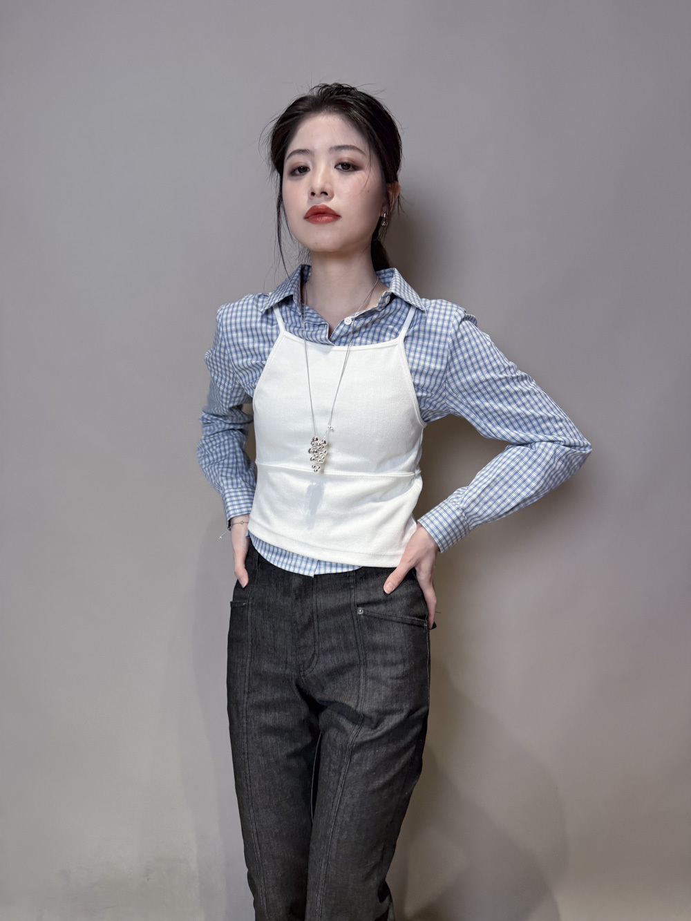 淺藍x白色格仔pattern/ 可搭配彈性背心更有修身型格感覺