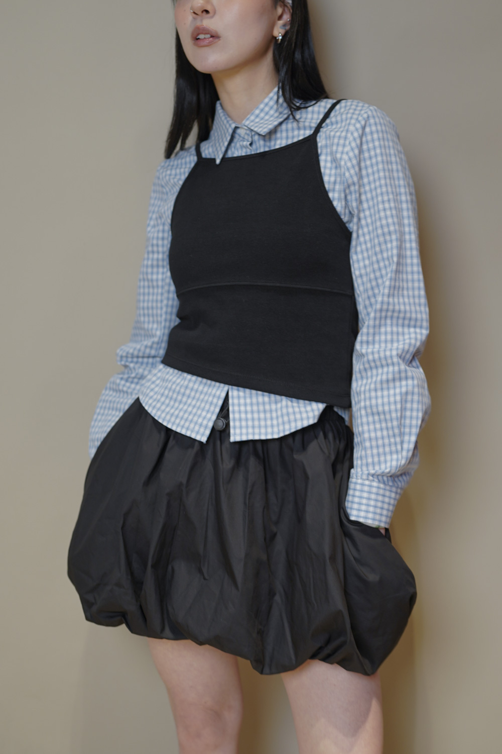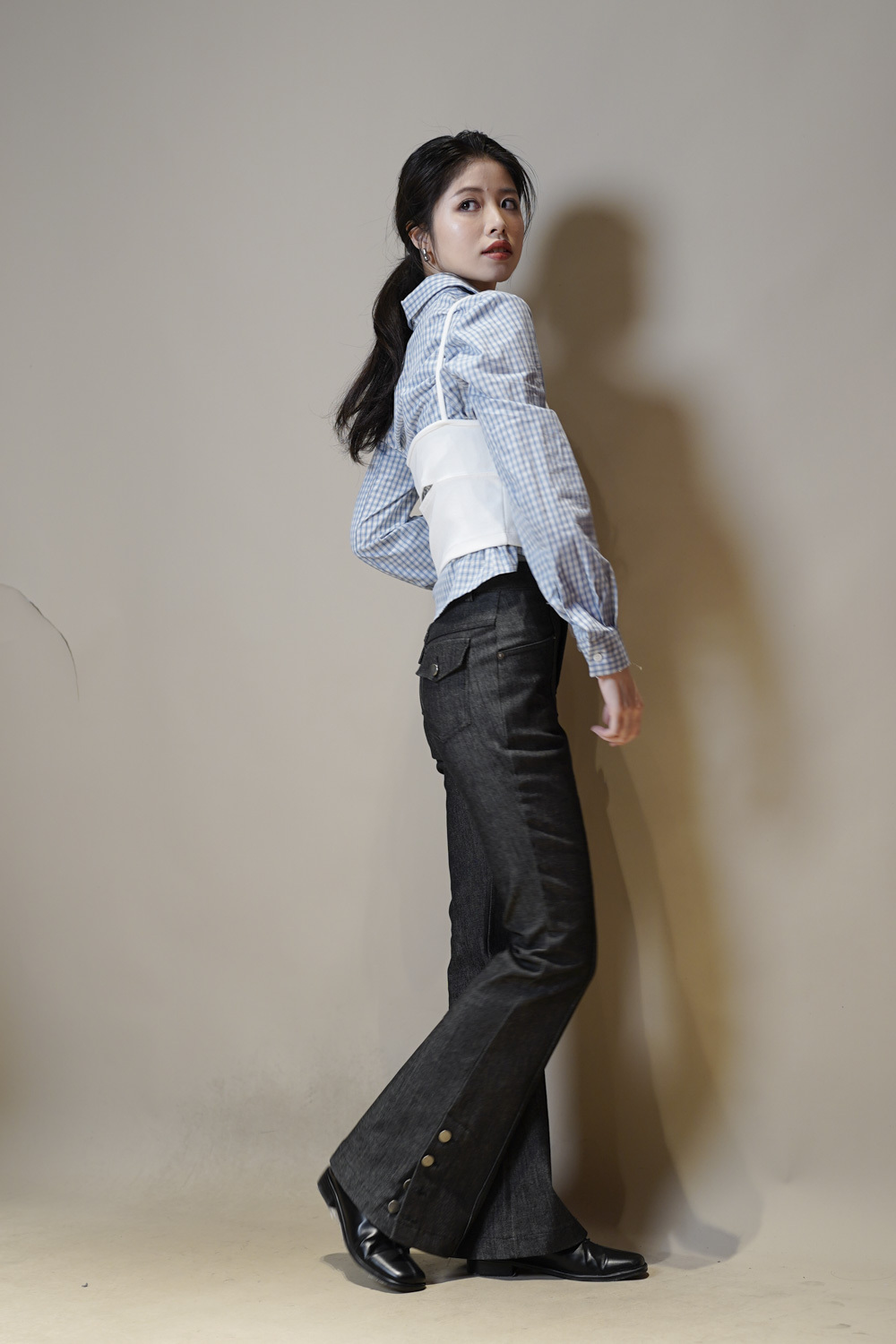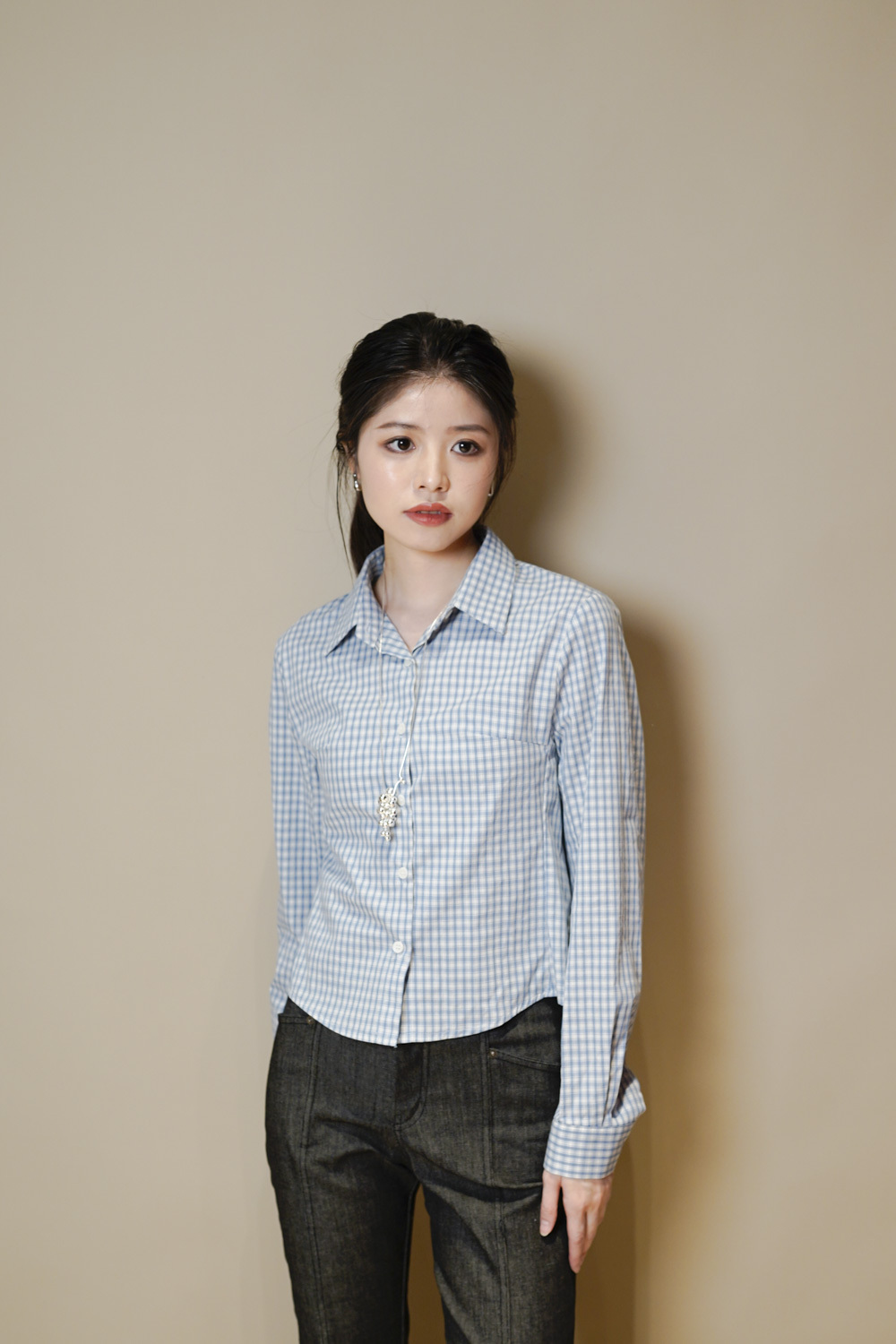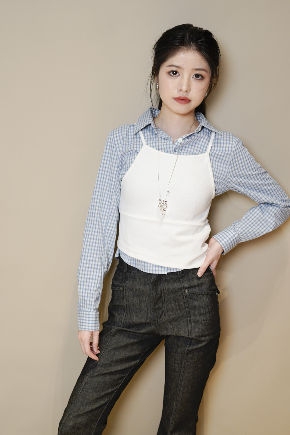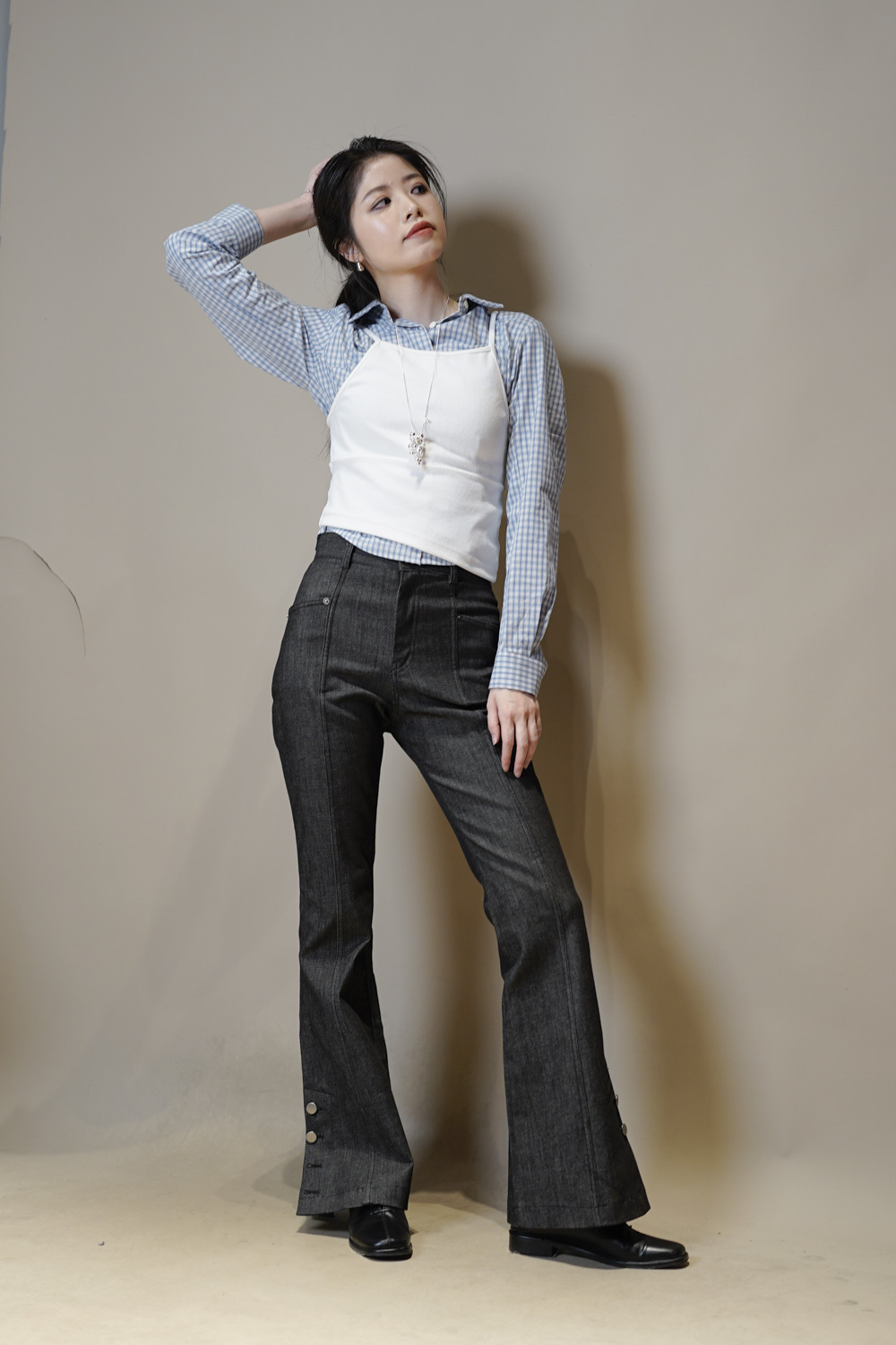 淺藍x白色格仔pattern/ 可搭配彈性背心更有修身型格感覺