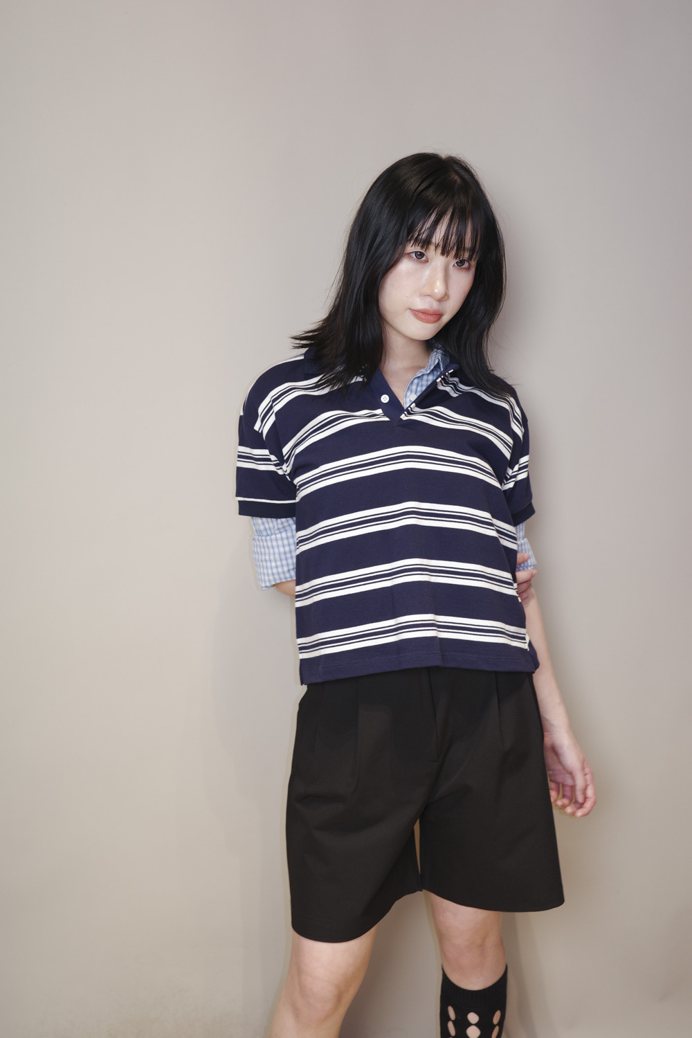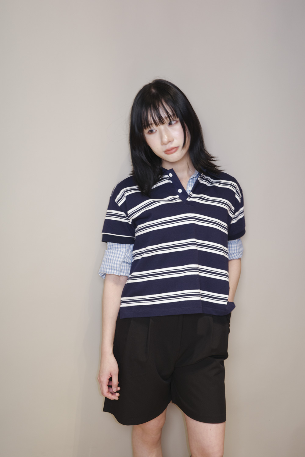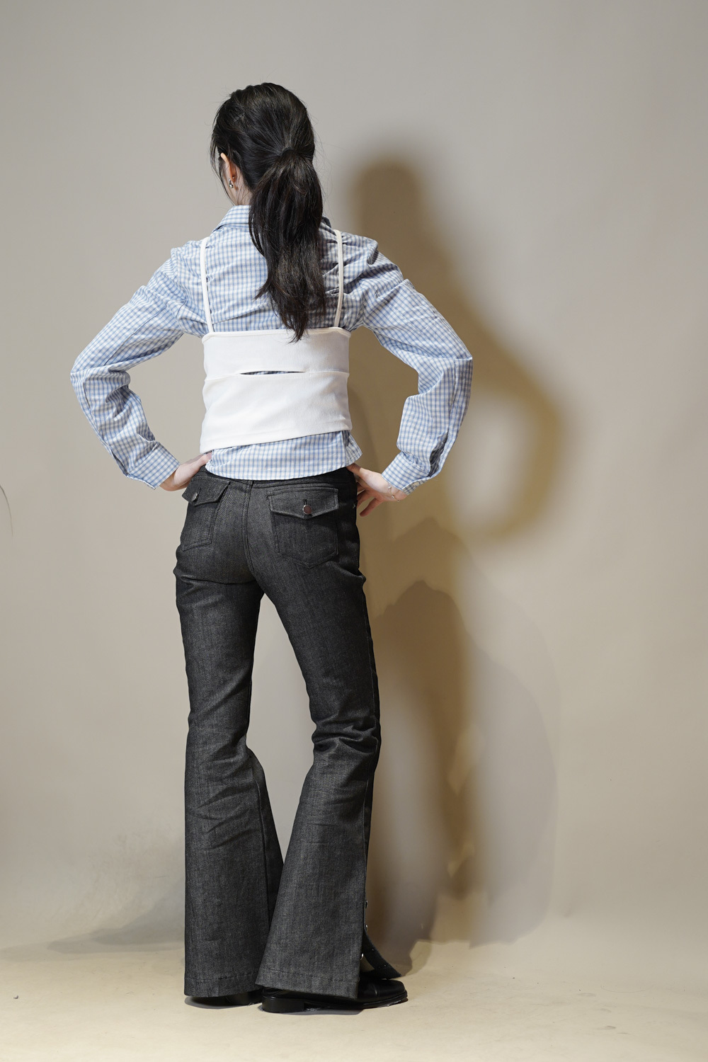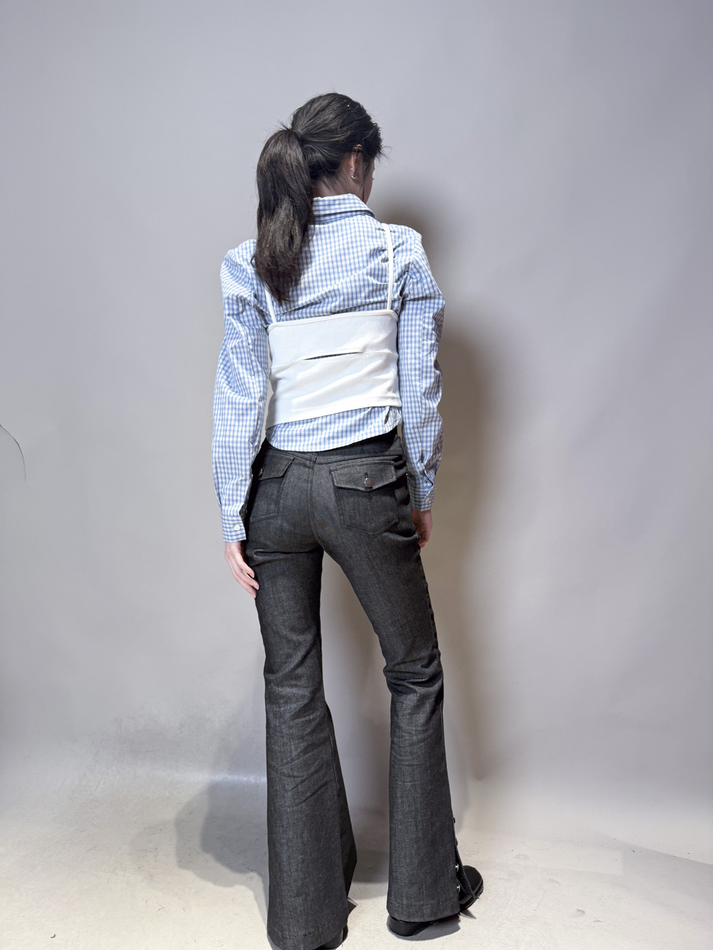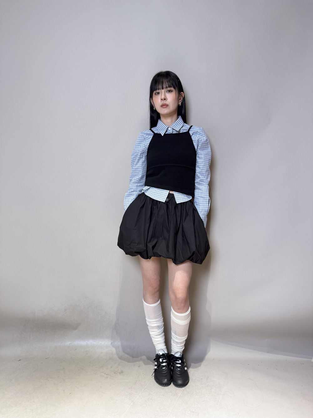 淺藍x白色格仔pattern/ 可搭配彈性背心更有修身型格感覺