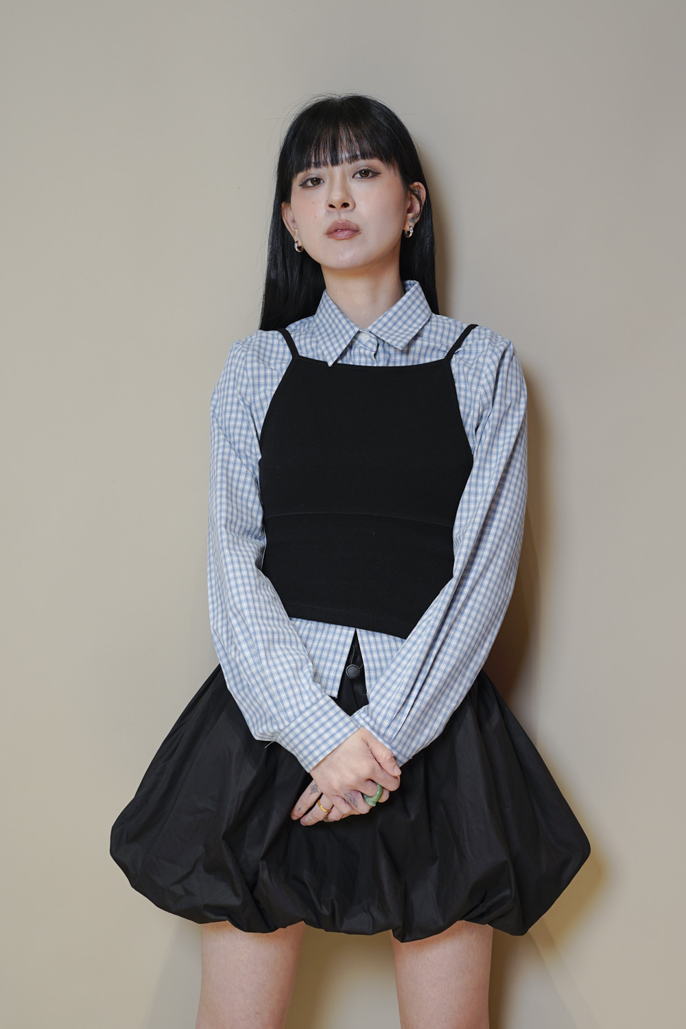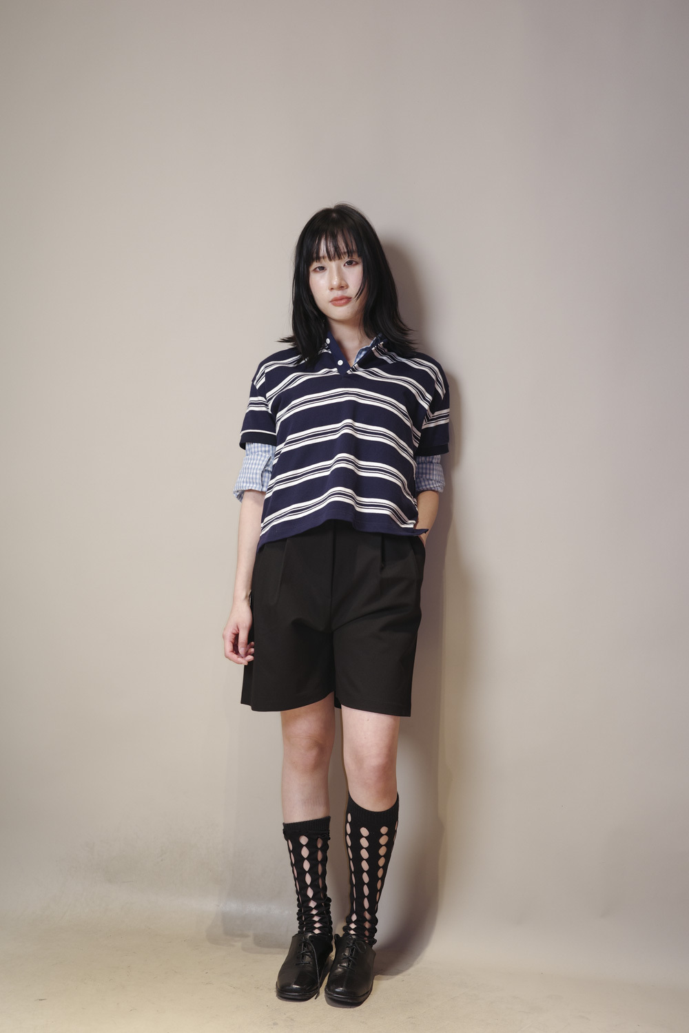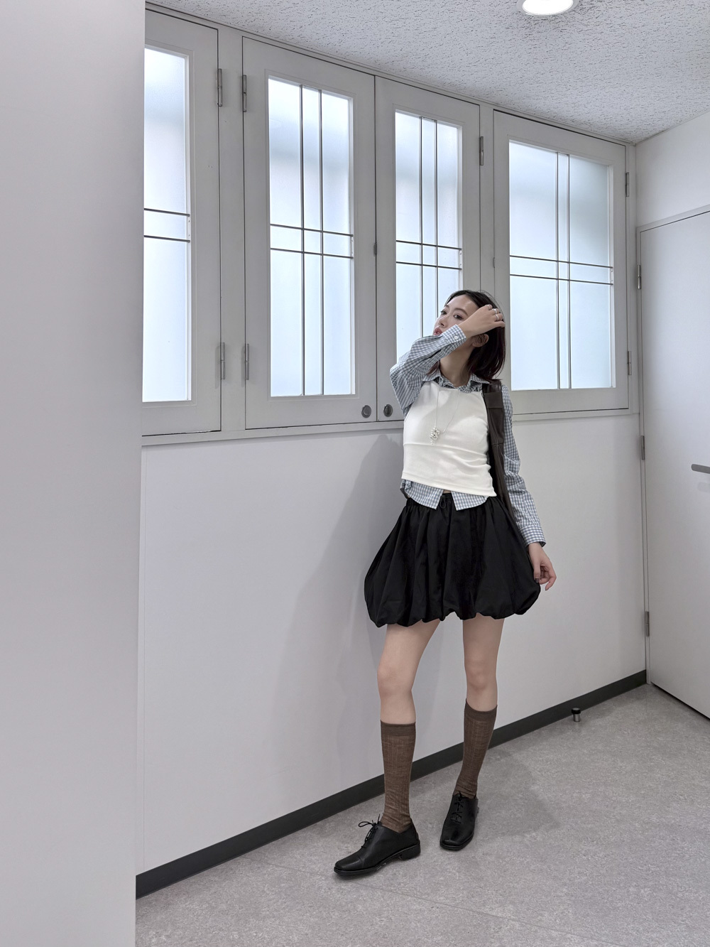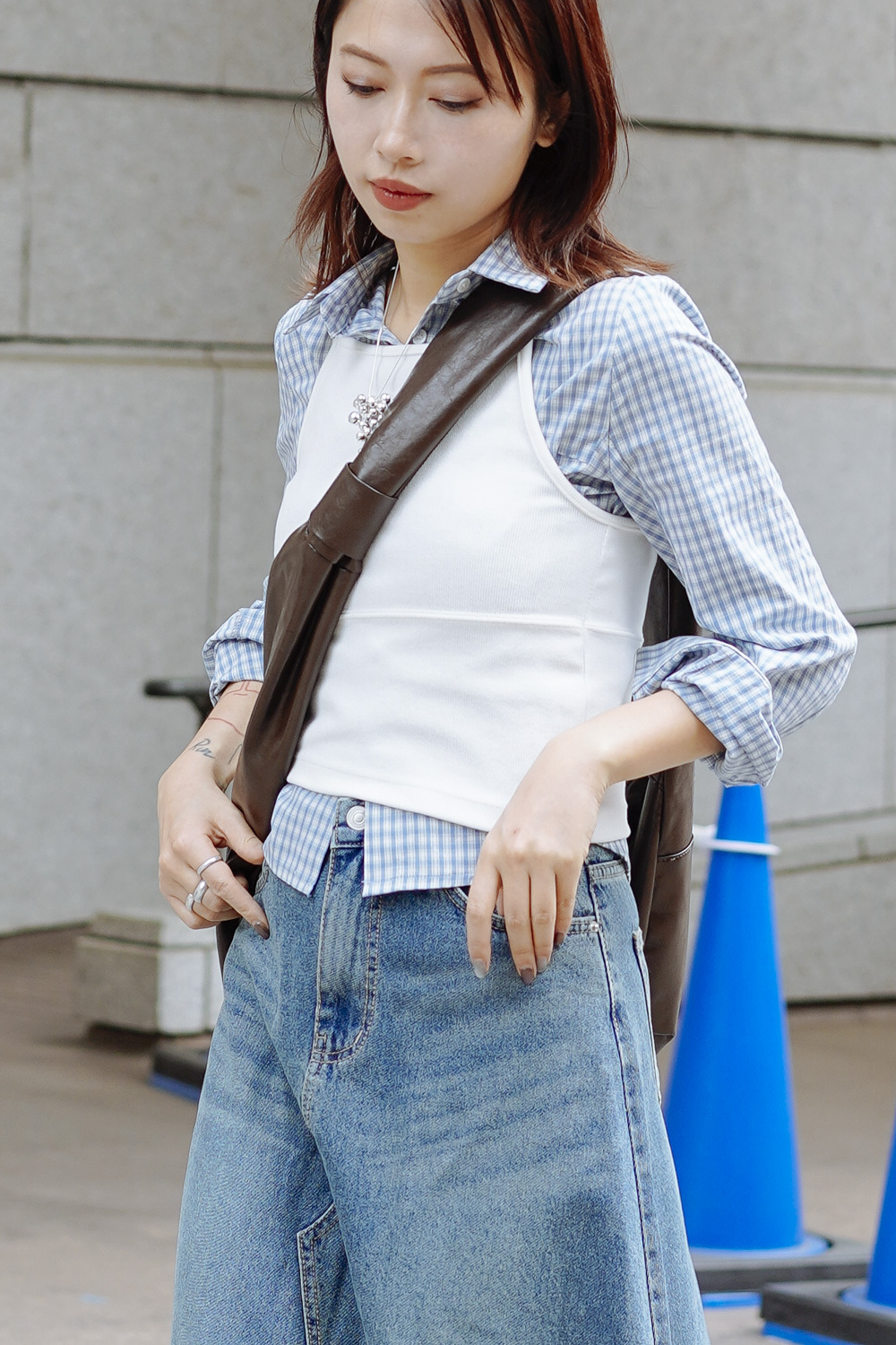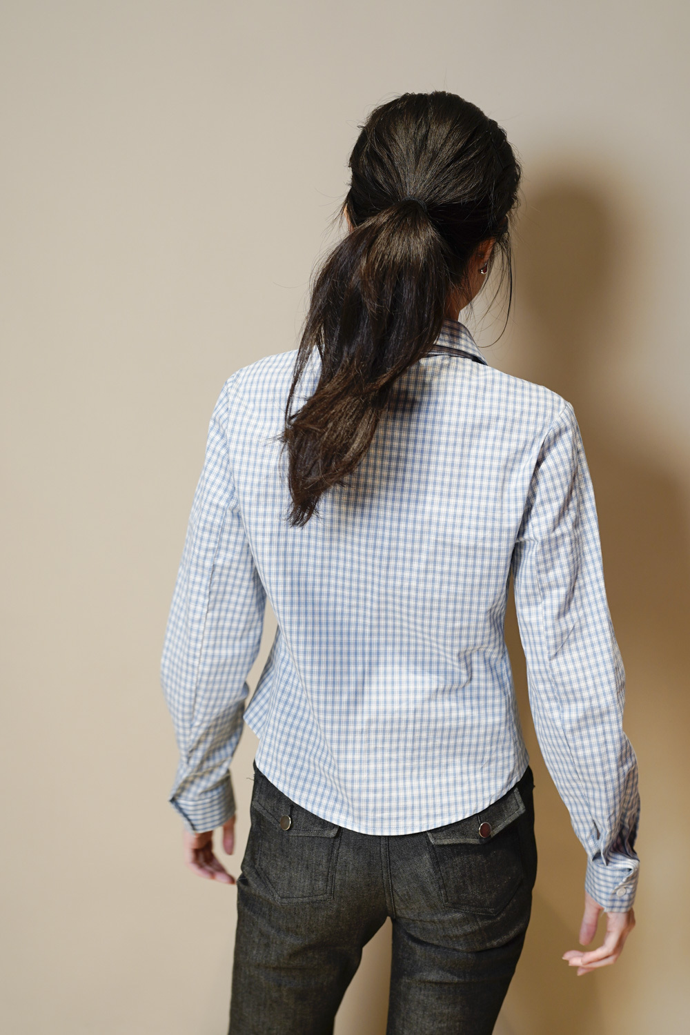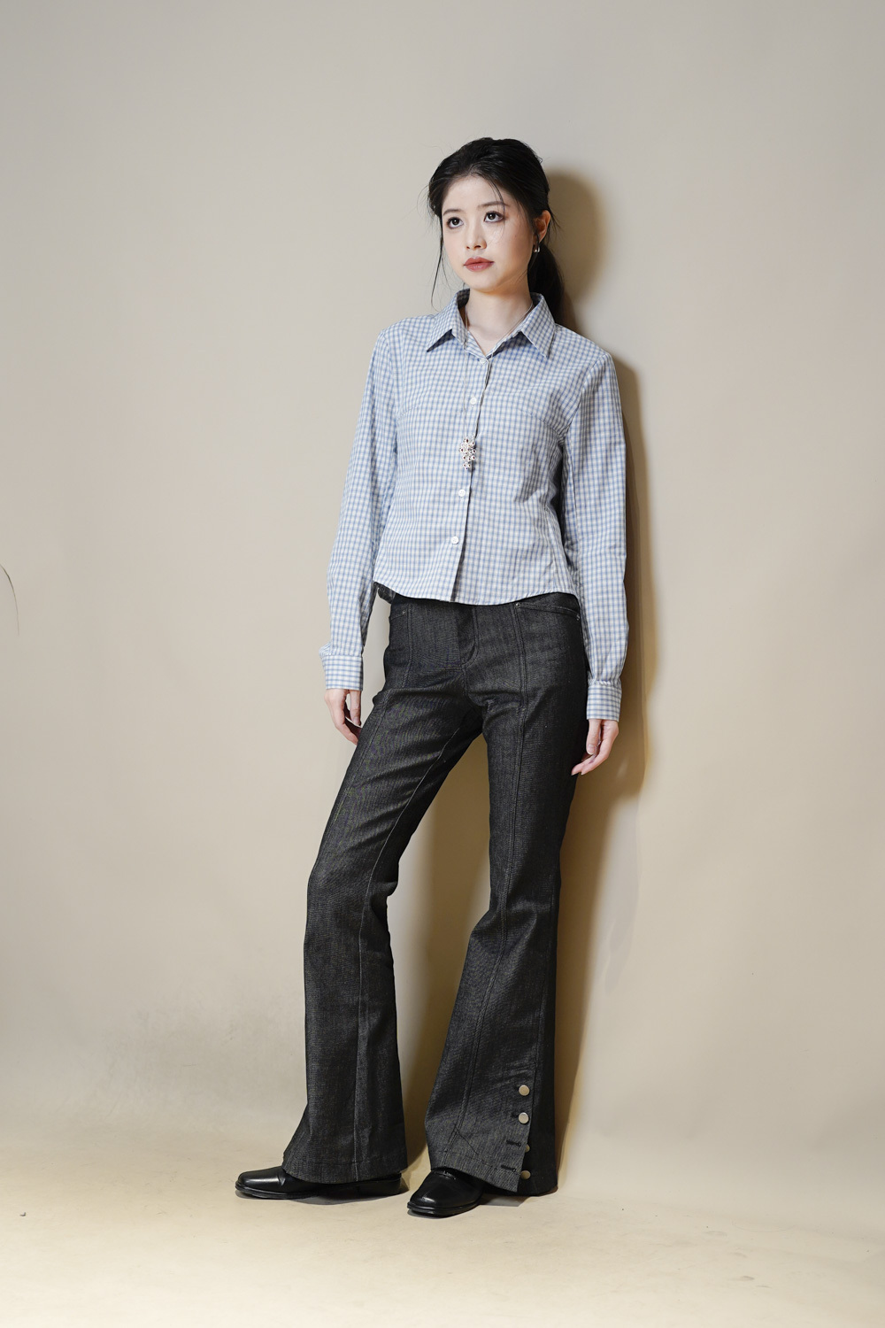 淺藍x白色格仔pattern/ 可搭配彈性背心更有修身型格感覺