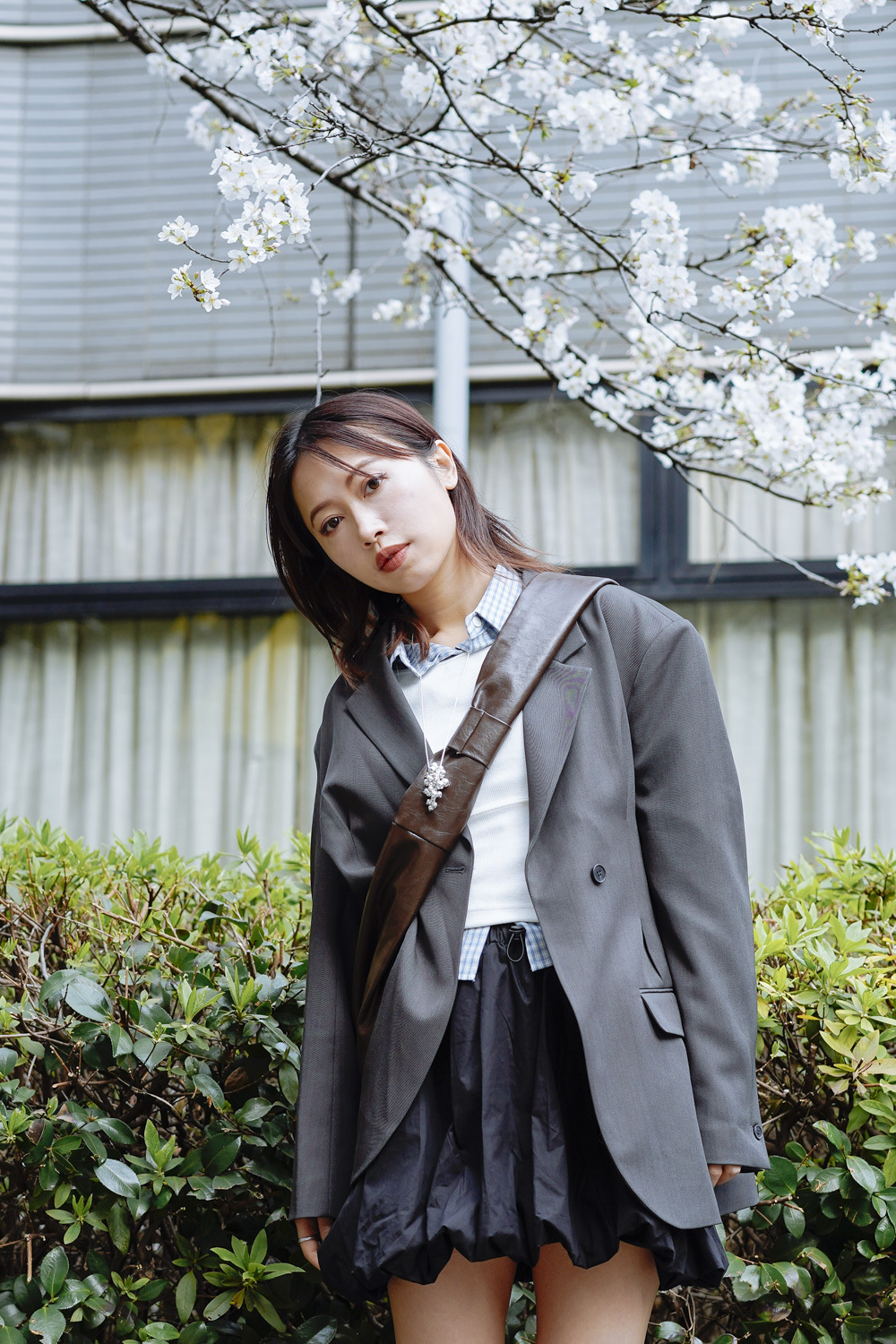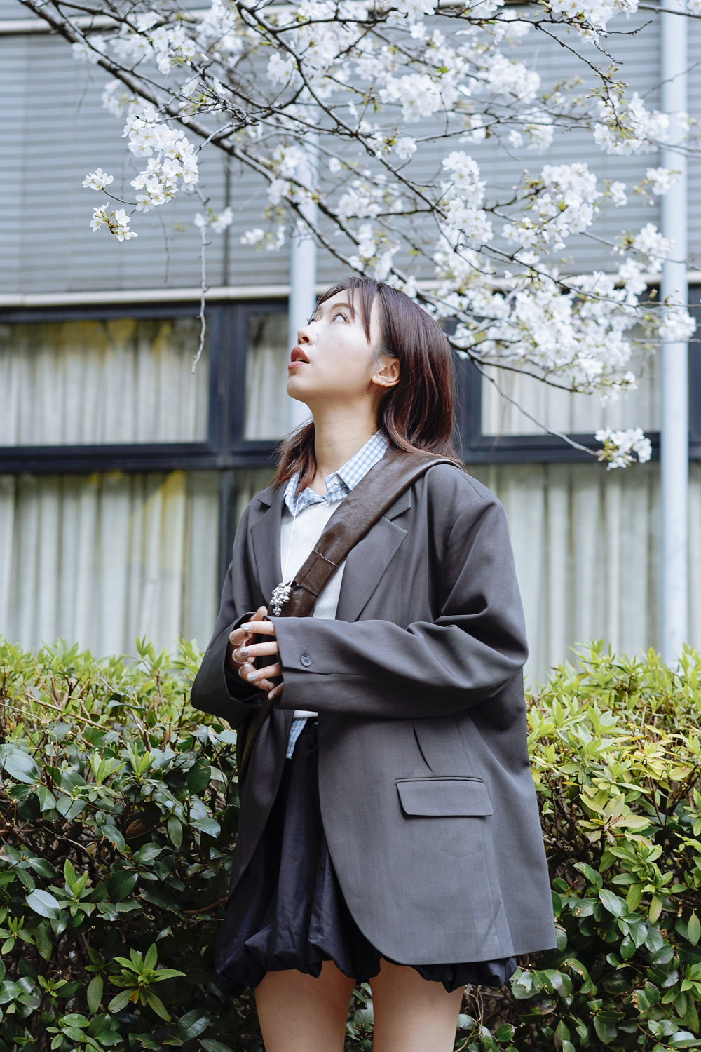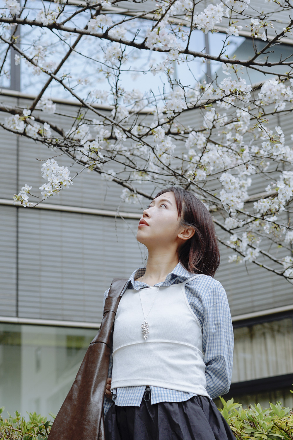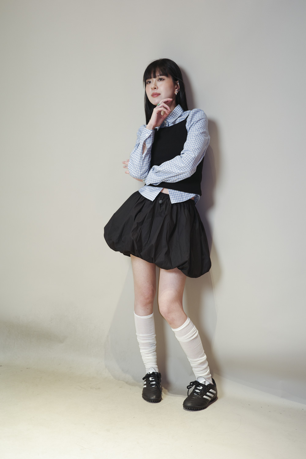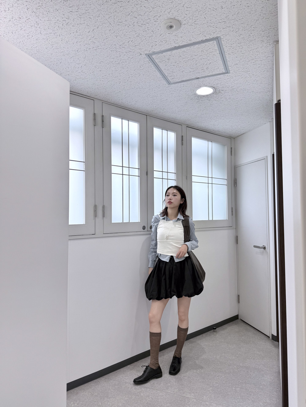 淺藍x白色格仔pattern/ 可搭配彈性背心更有修身型格感覺