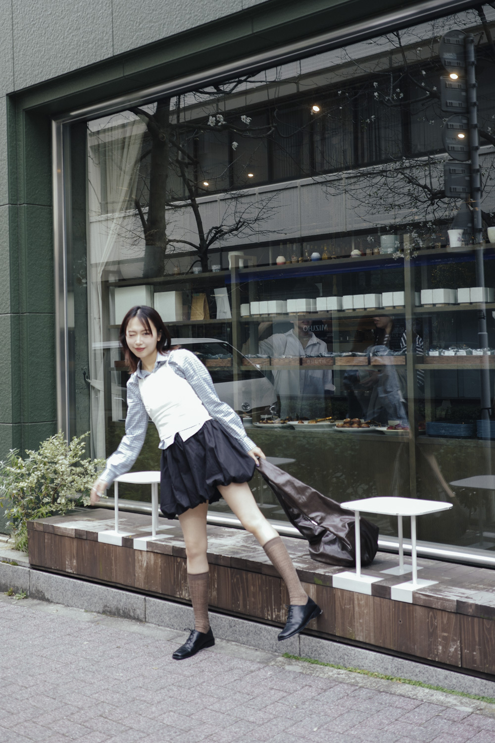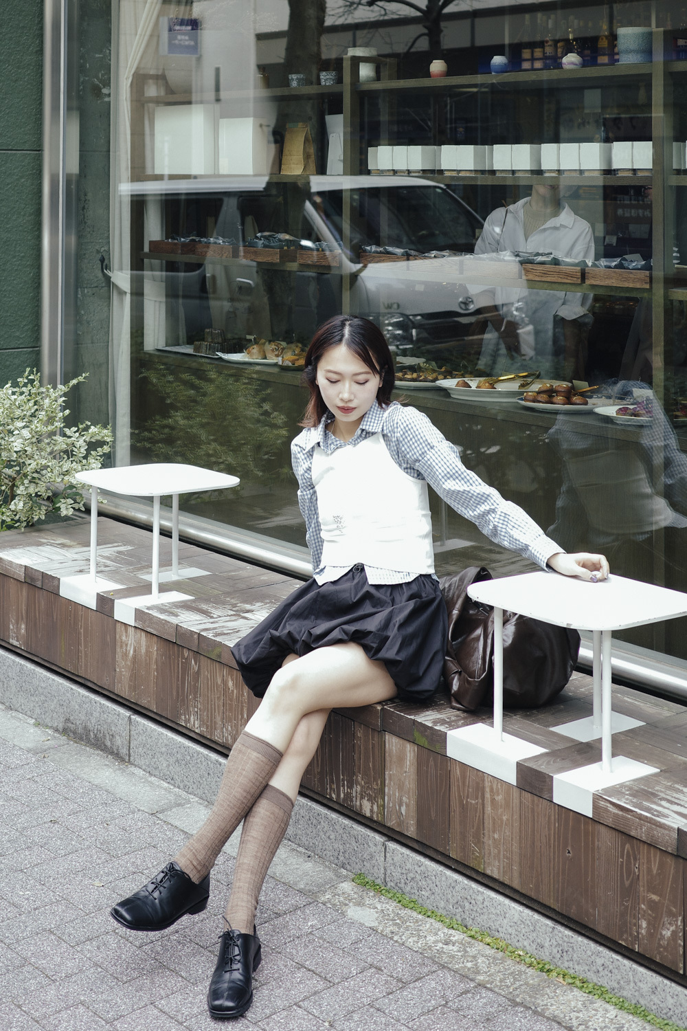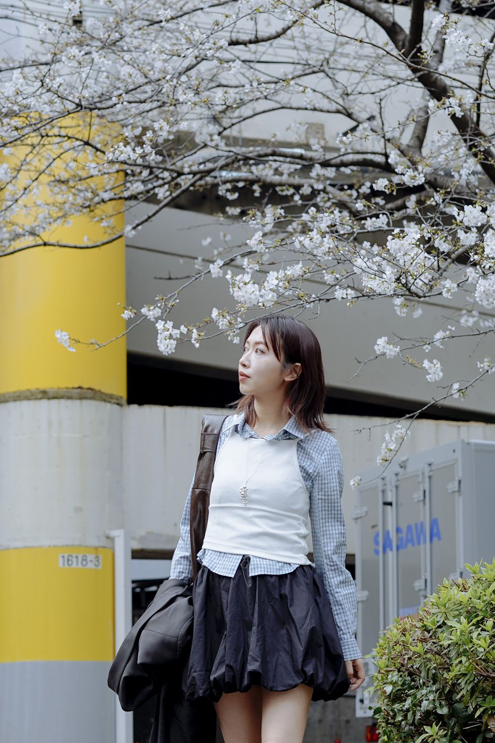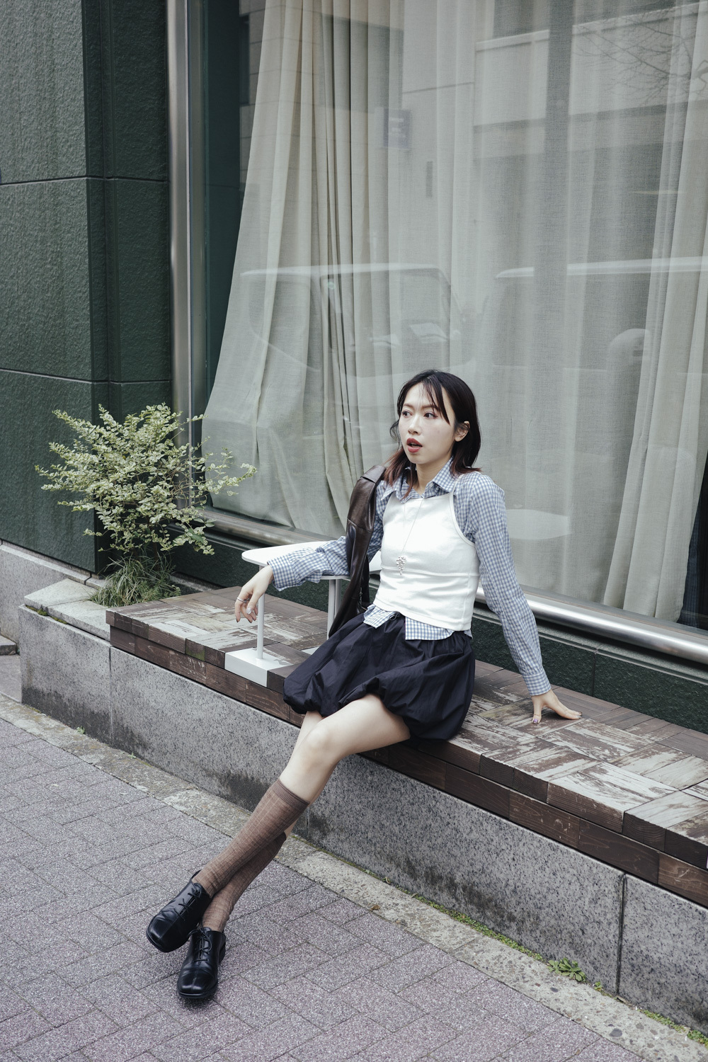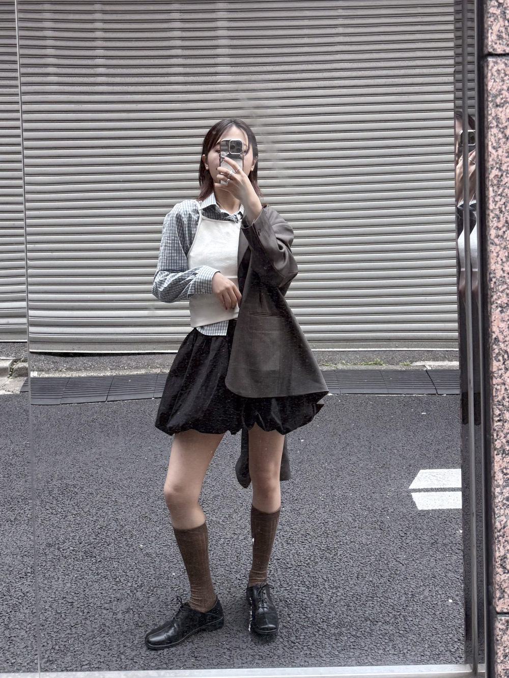 淺藍x白色格仔pattern/ 可搭配彈性背心更有修身型格感覺