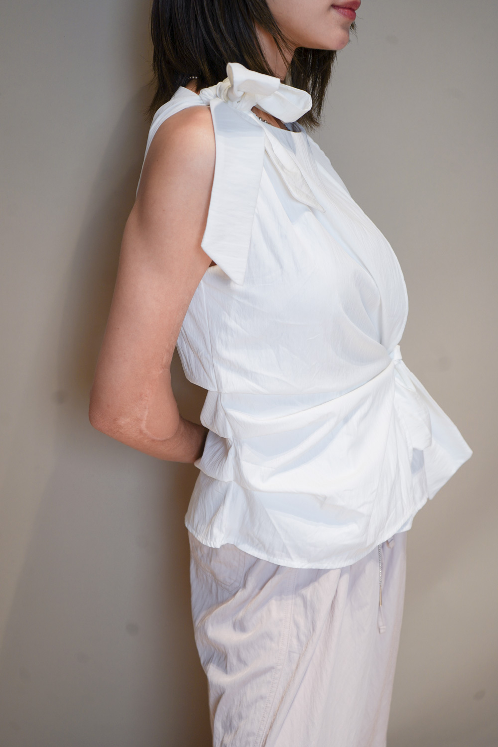 Happy price!~Ribbon-Tie urban tank (BLACK/WHITE)