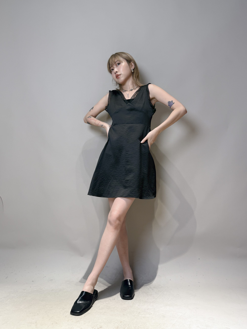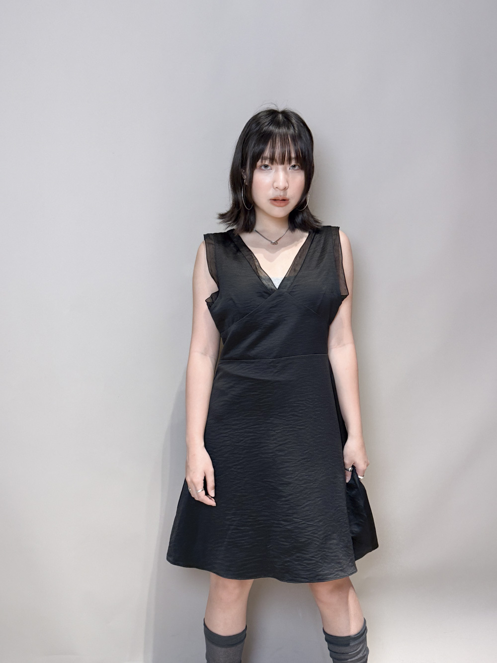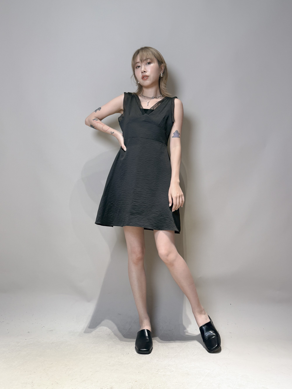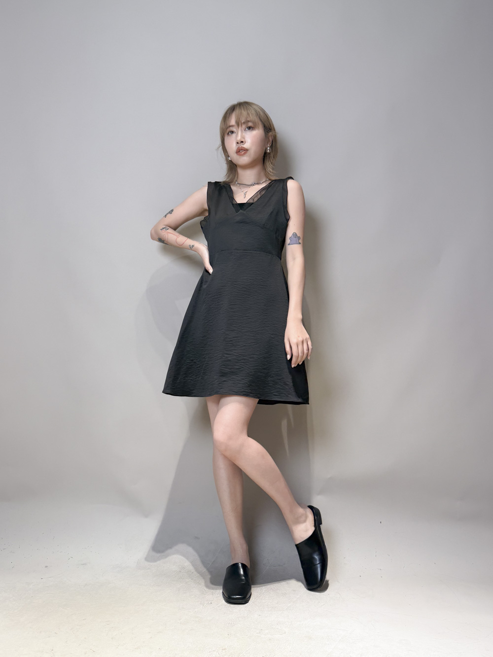 肩帶與領口透紗設計/更顯氣質/