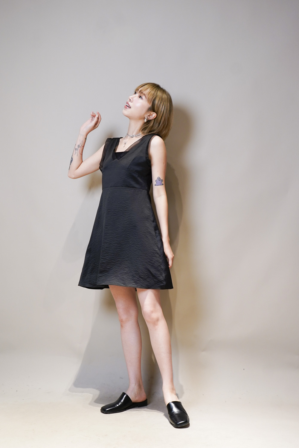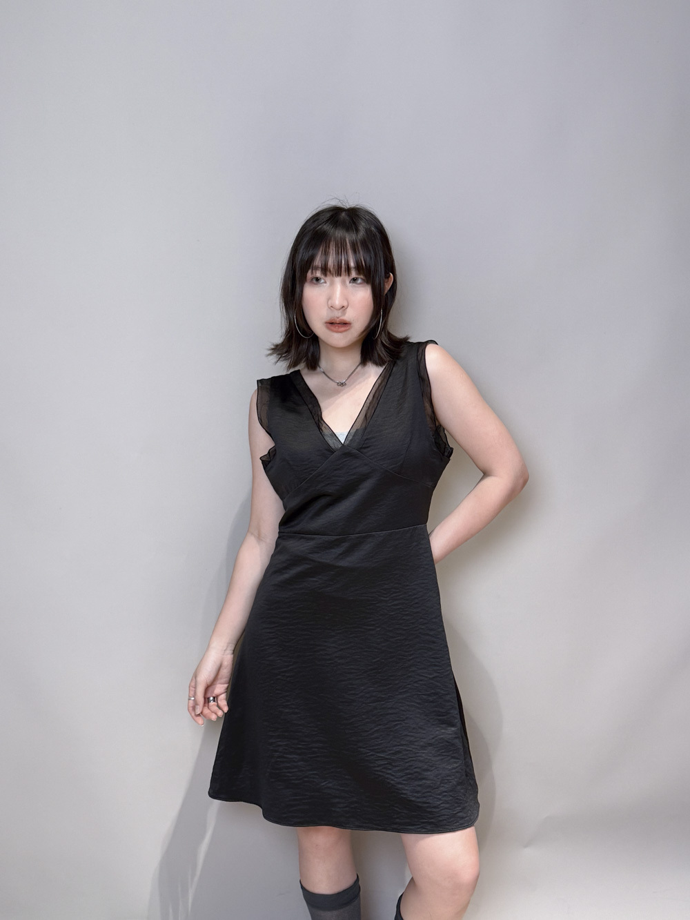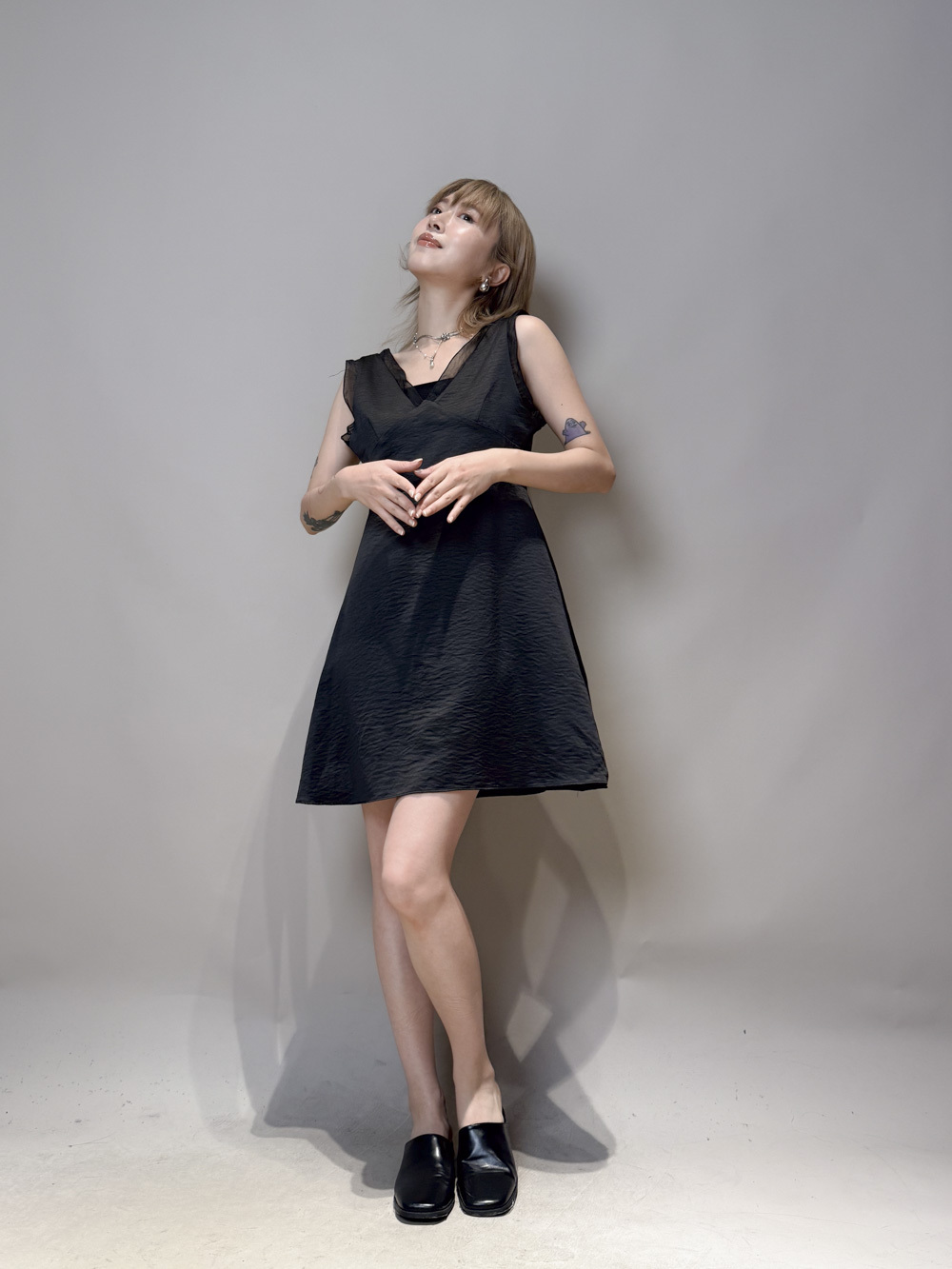 肩帶與領口透紗設計/更顯氣質/
