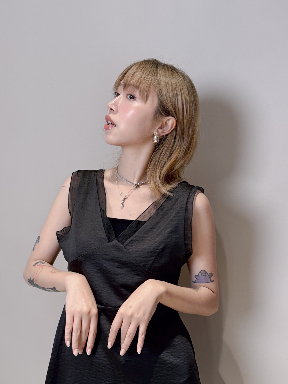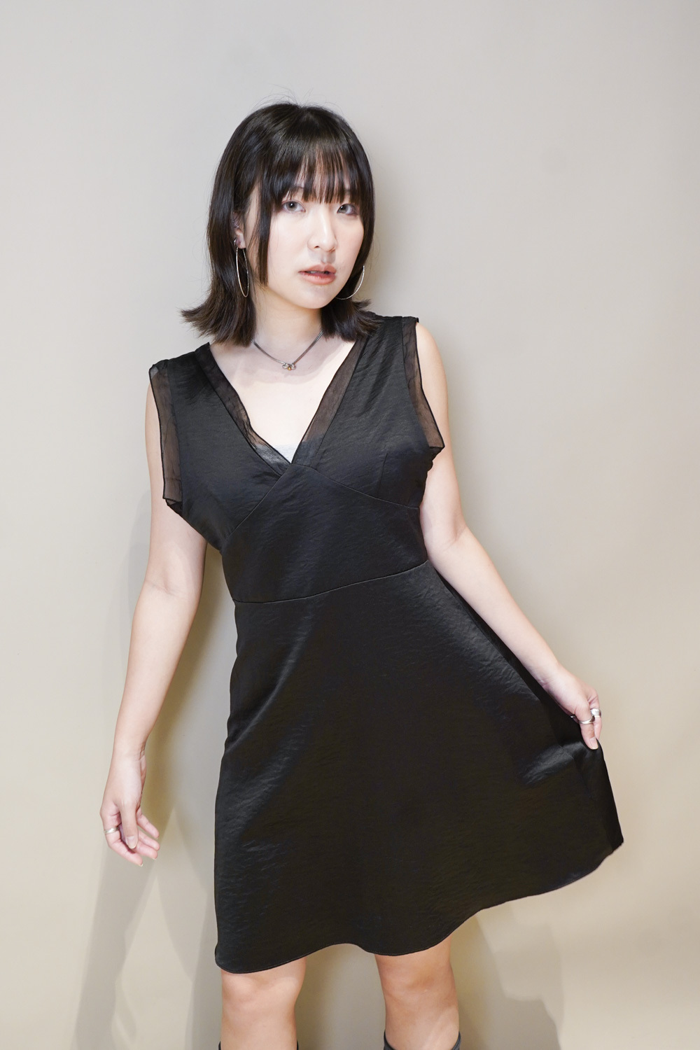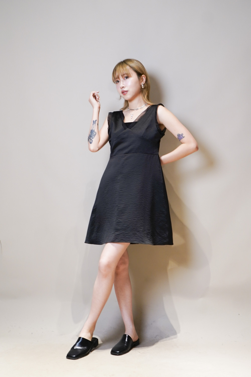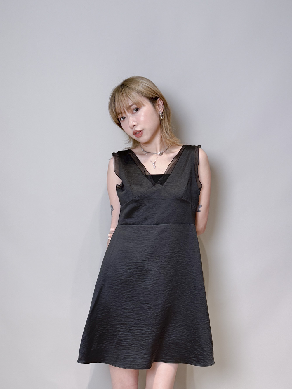 肩帶與領口透紗設計/更顯氣質/