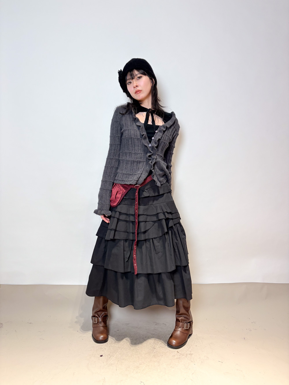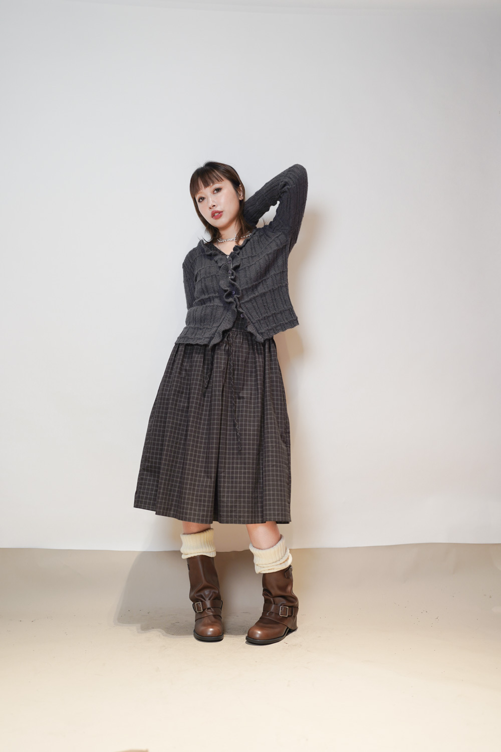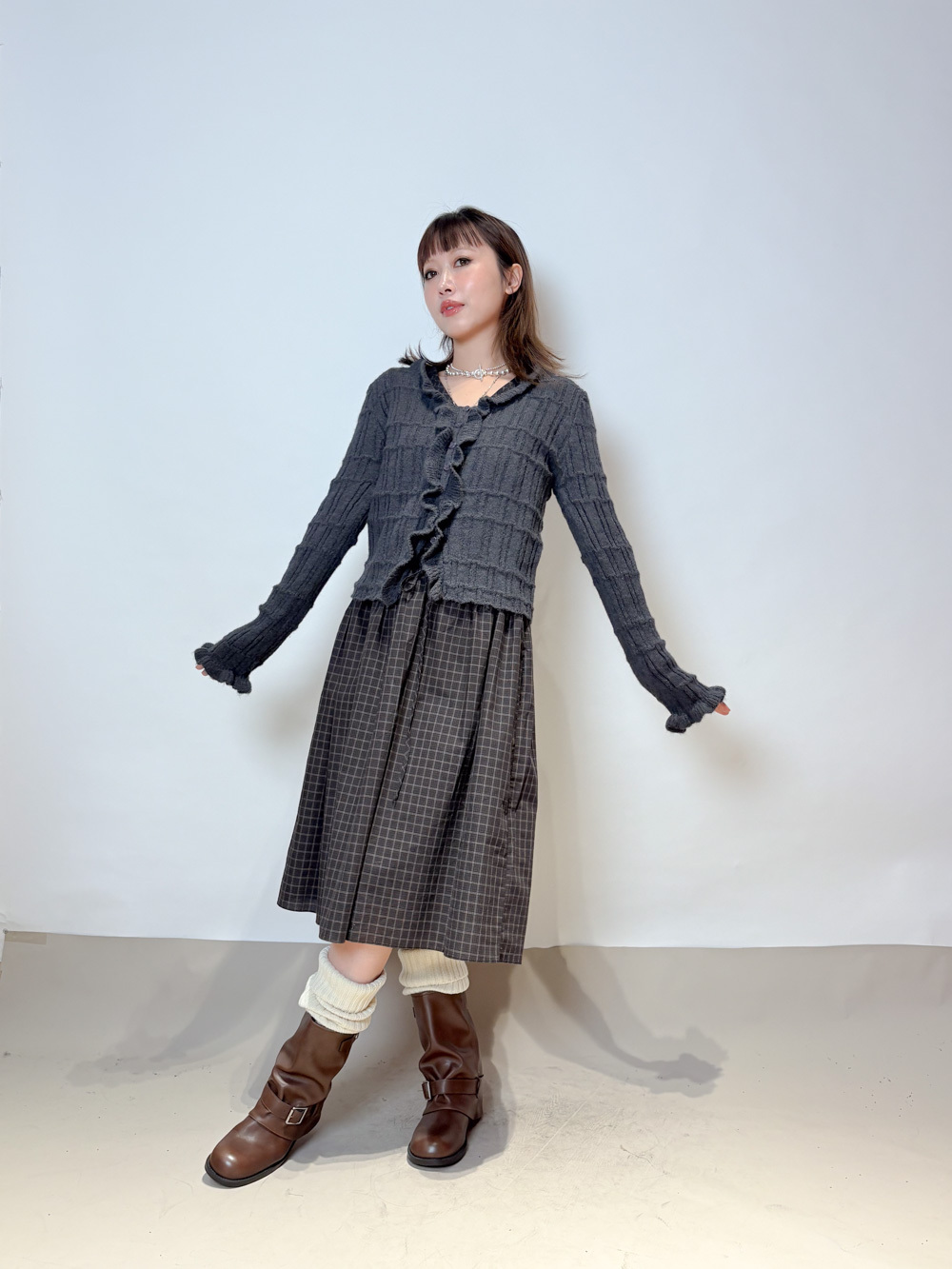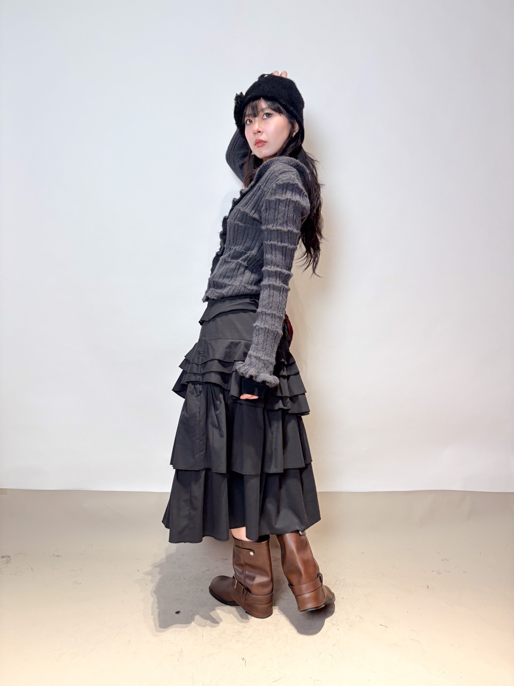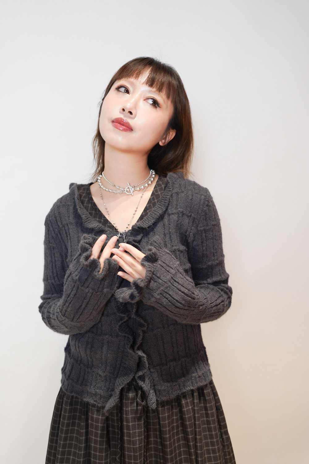 Happy price~Sisi ruffle cardigan (WHITE/GREY) -wool 10%