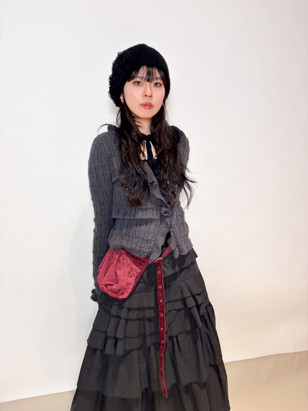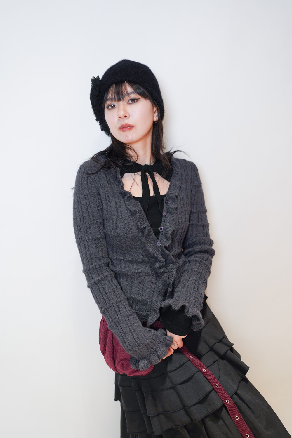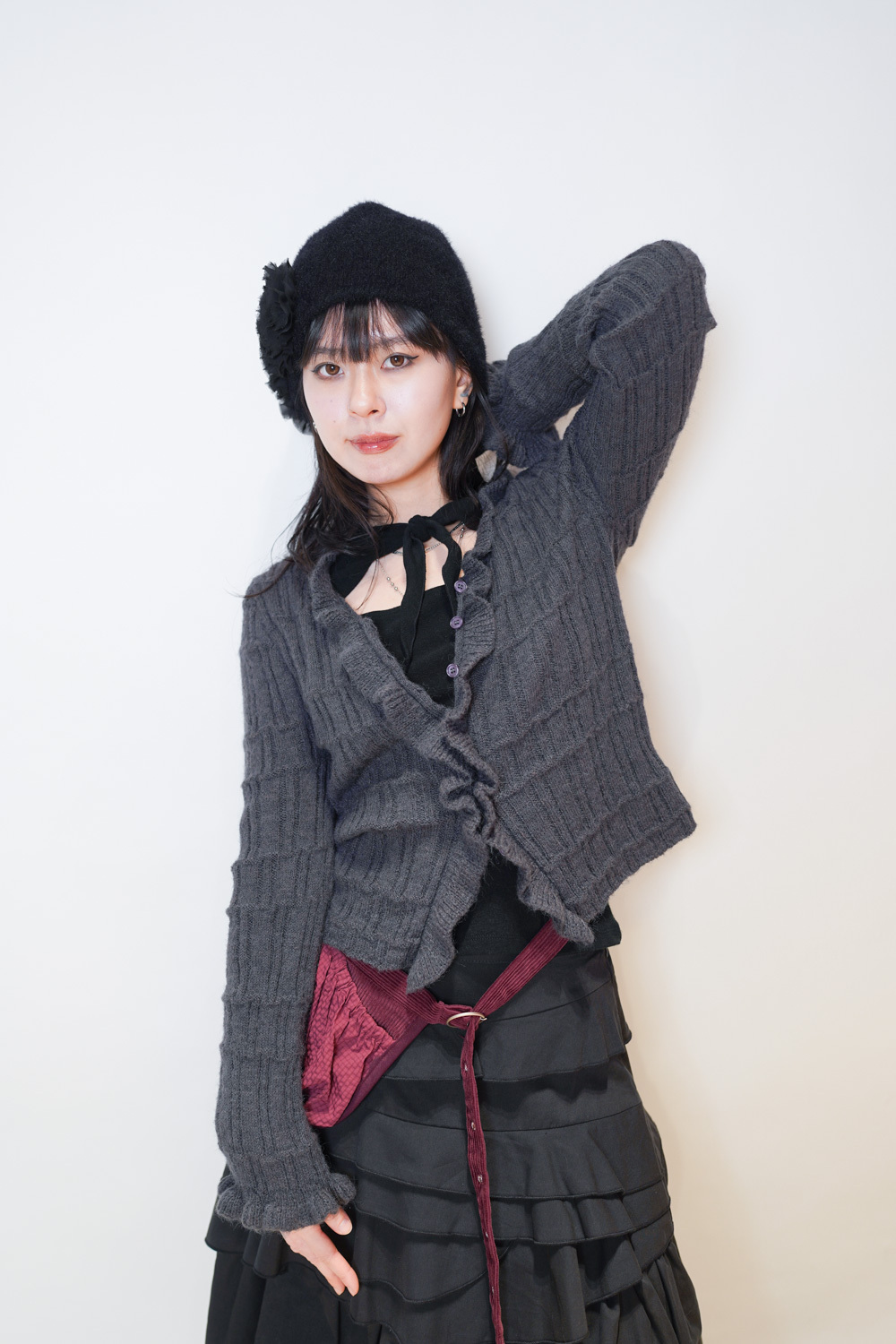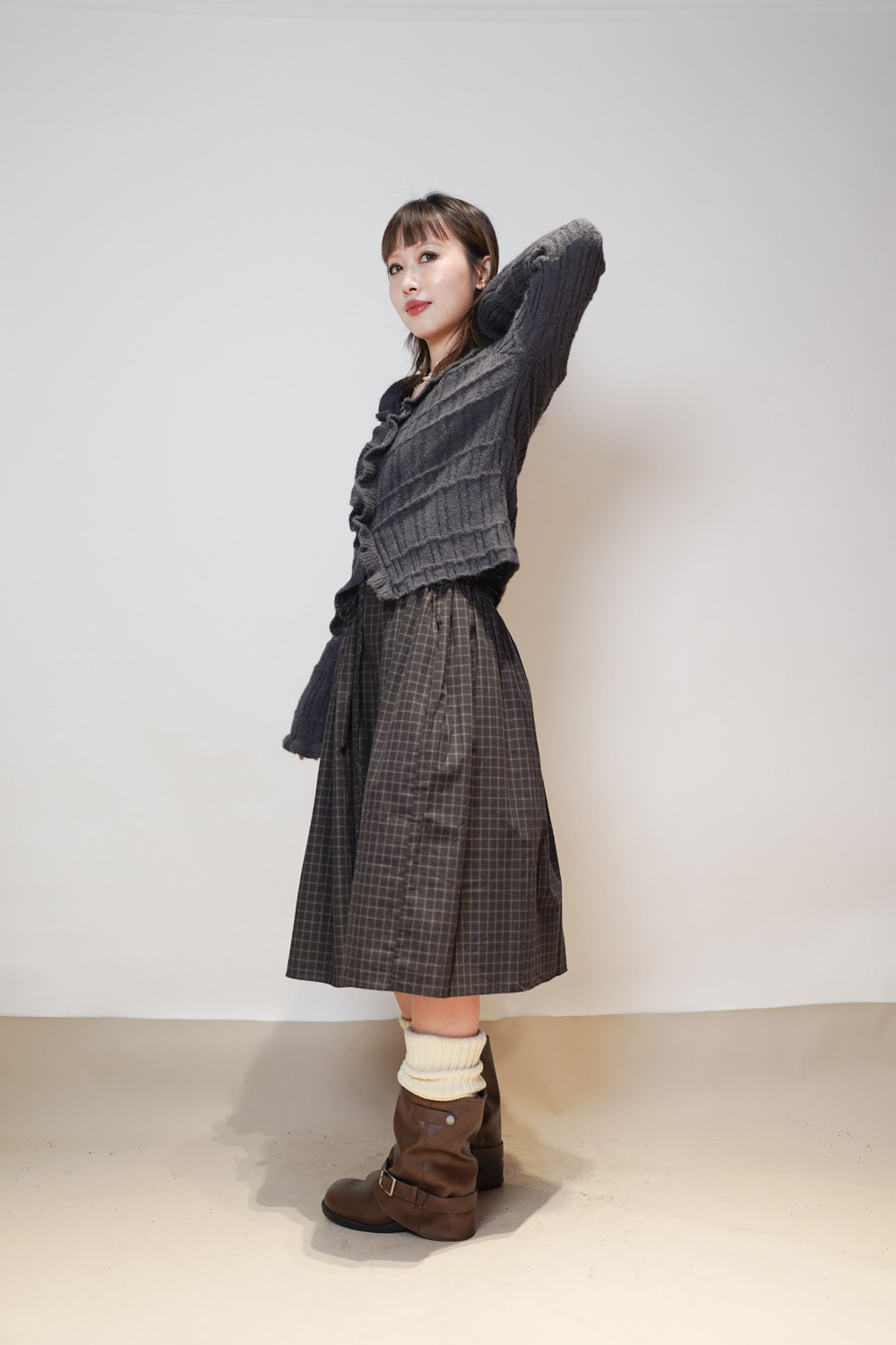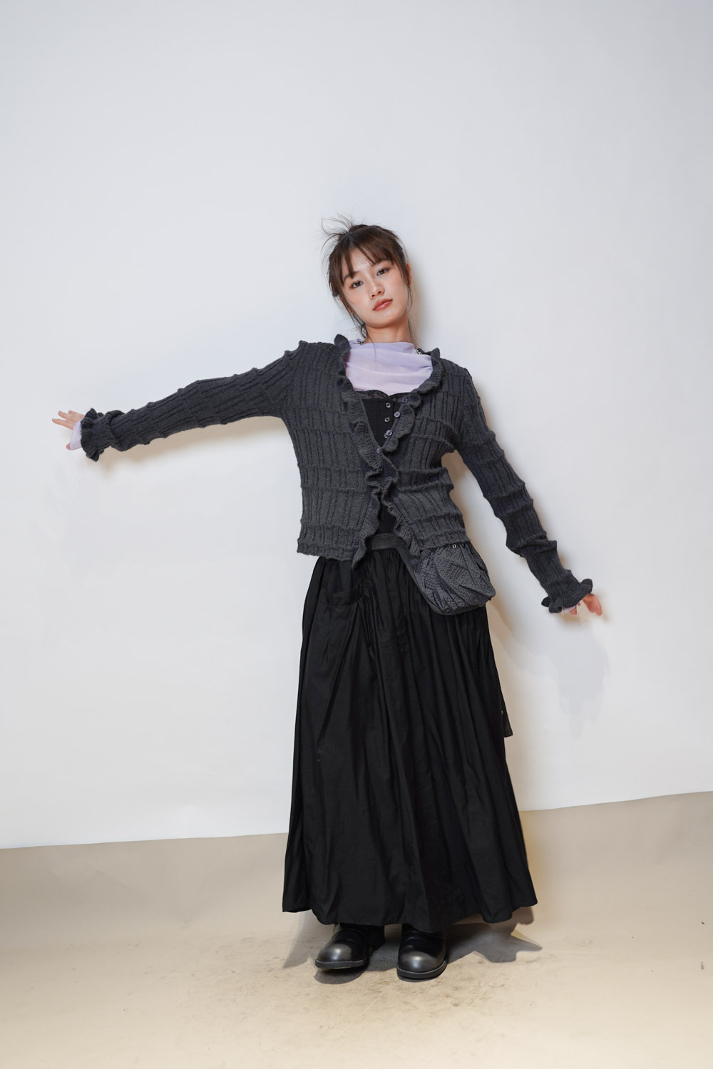 Happy price~Sisi ruffle cardigan (WHITE/GREY) -wool 10%