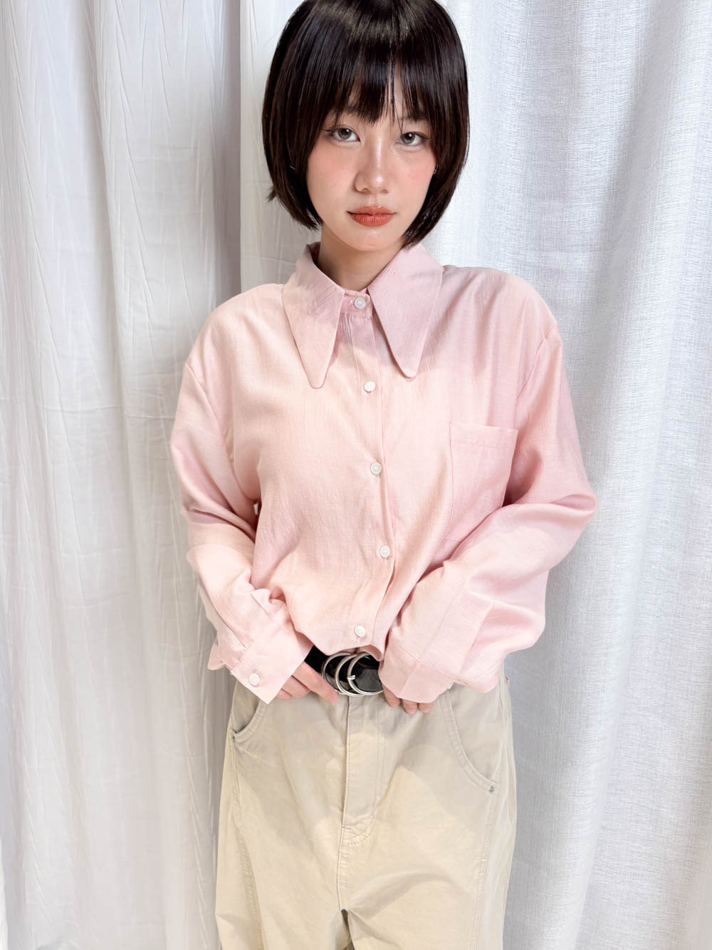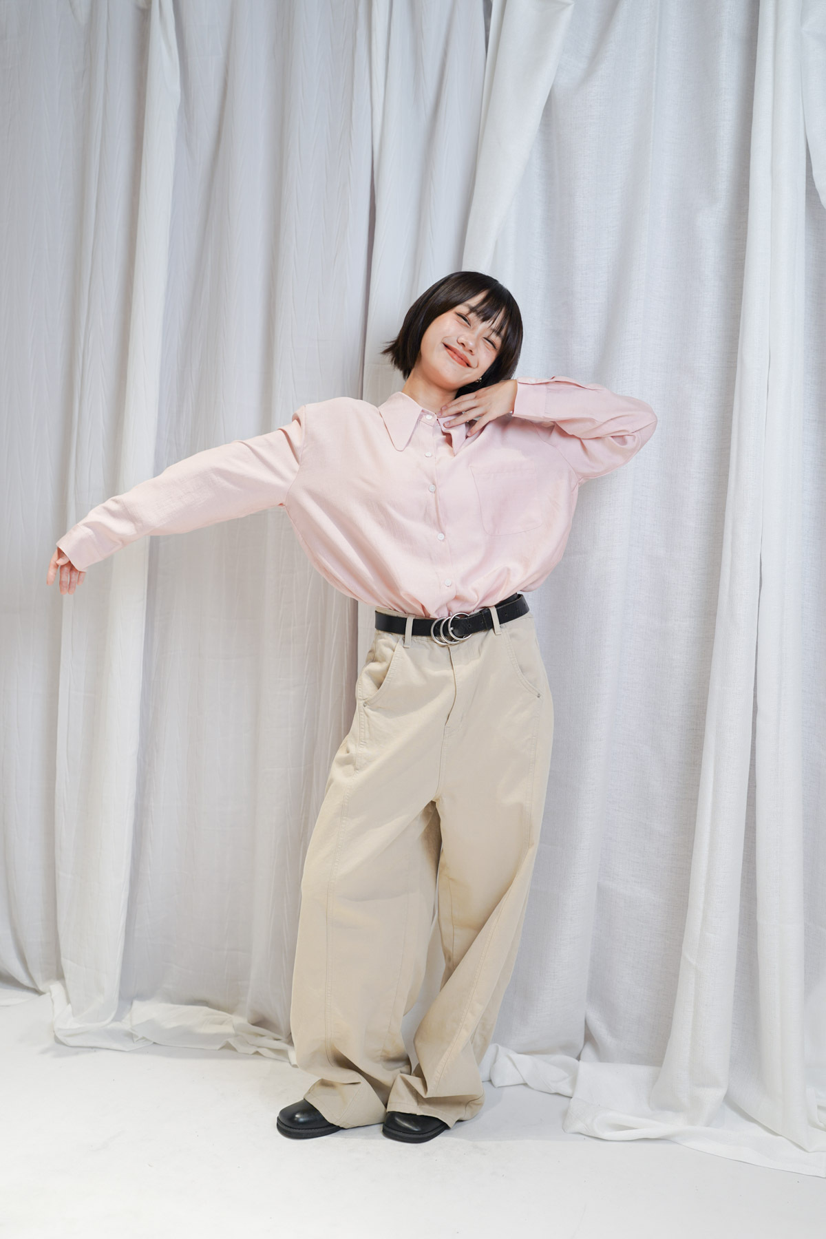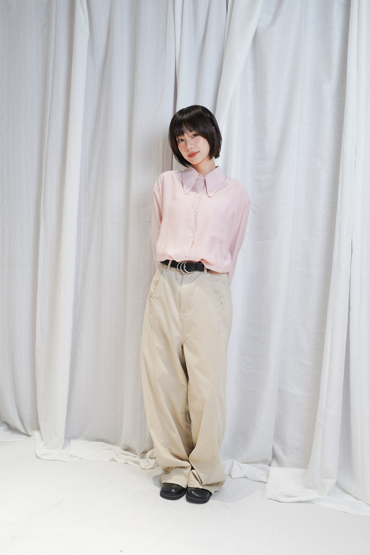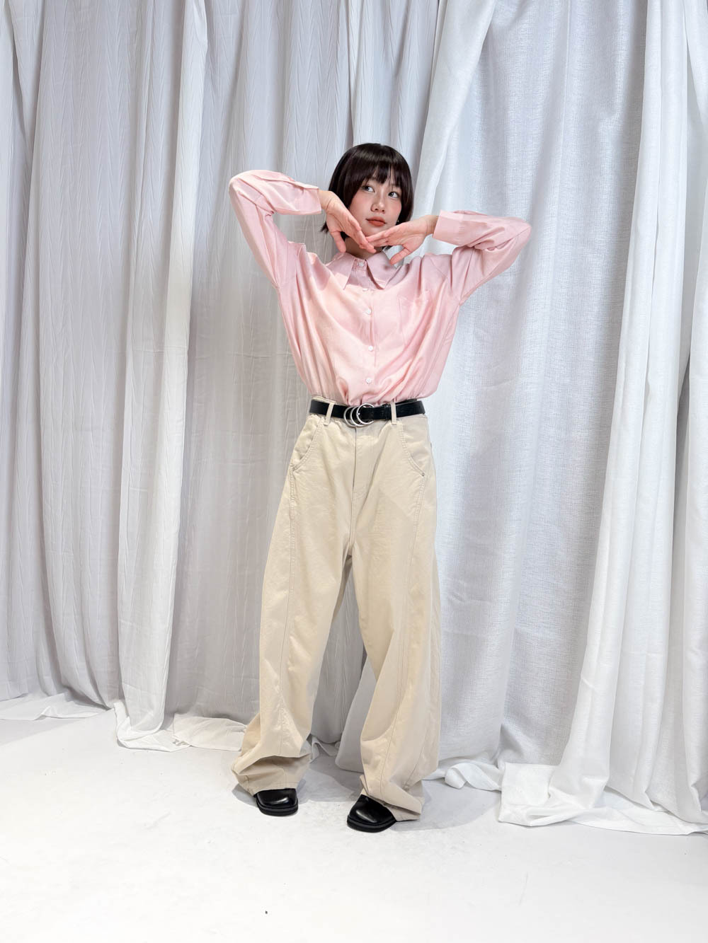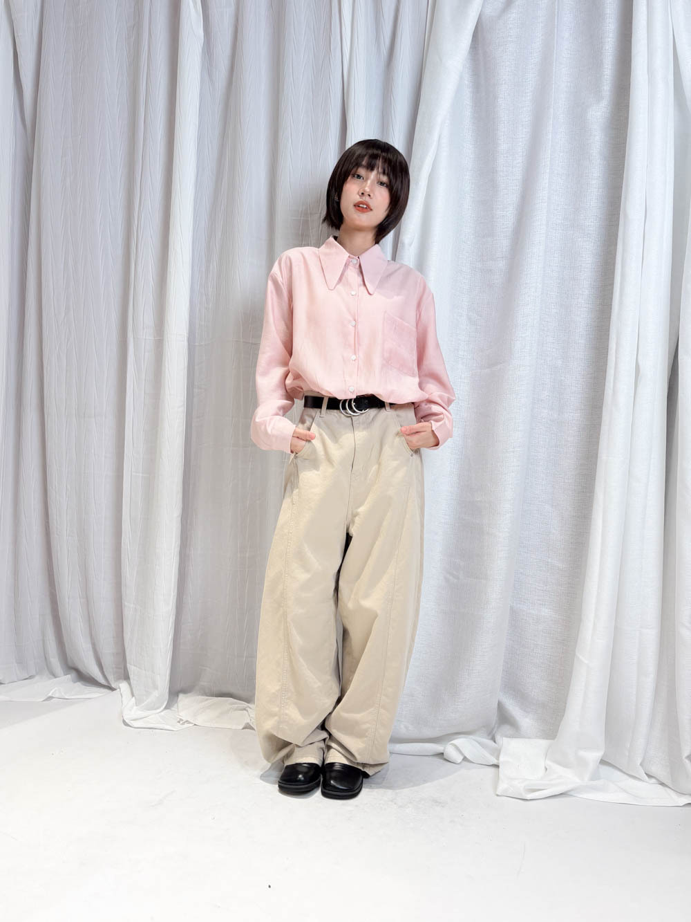 /Oversized 隨性風格 搭配皮帶營造鬆弛感/