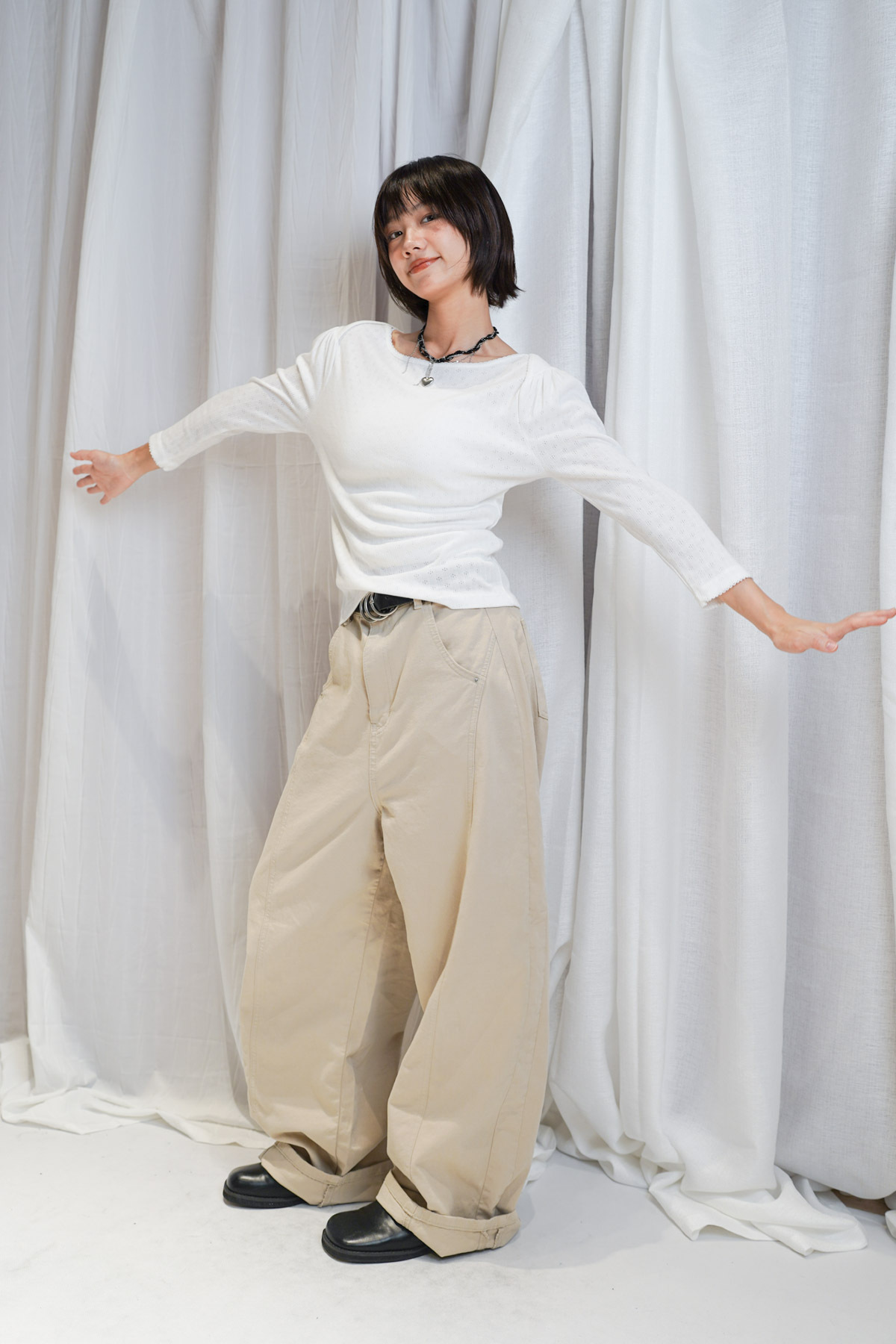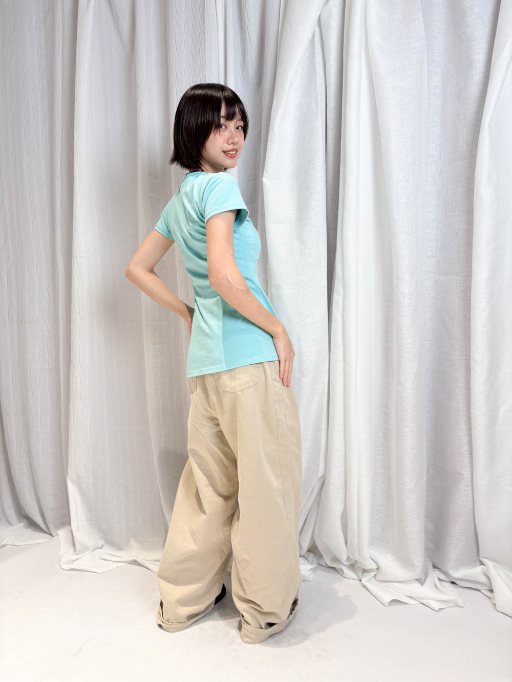 /寬鬆版型 修飾腿部線條 營造出筆直長腿