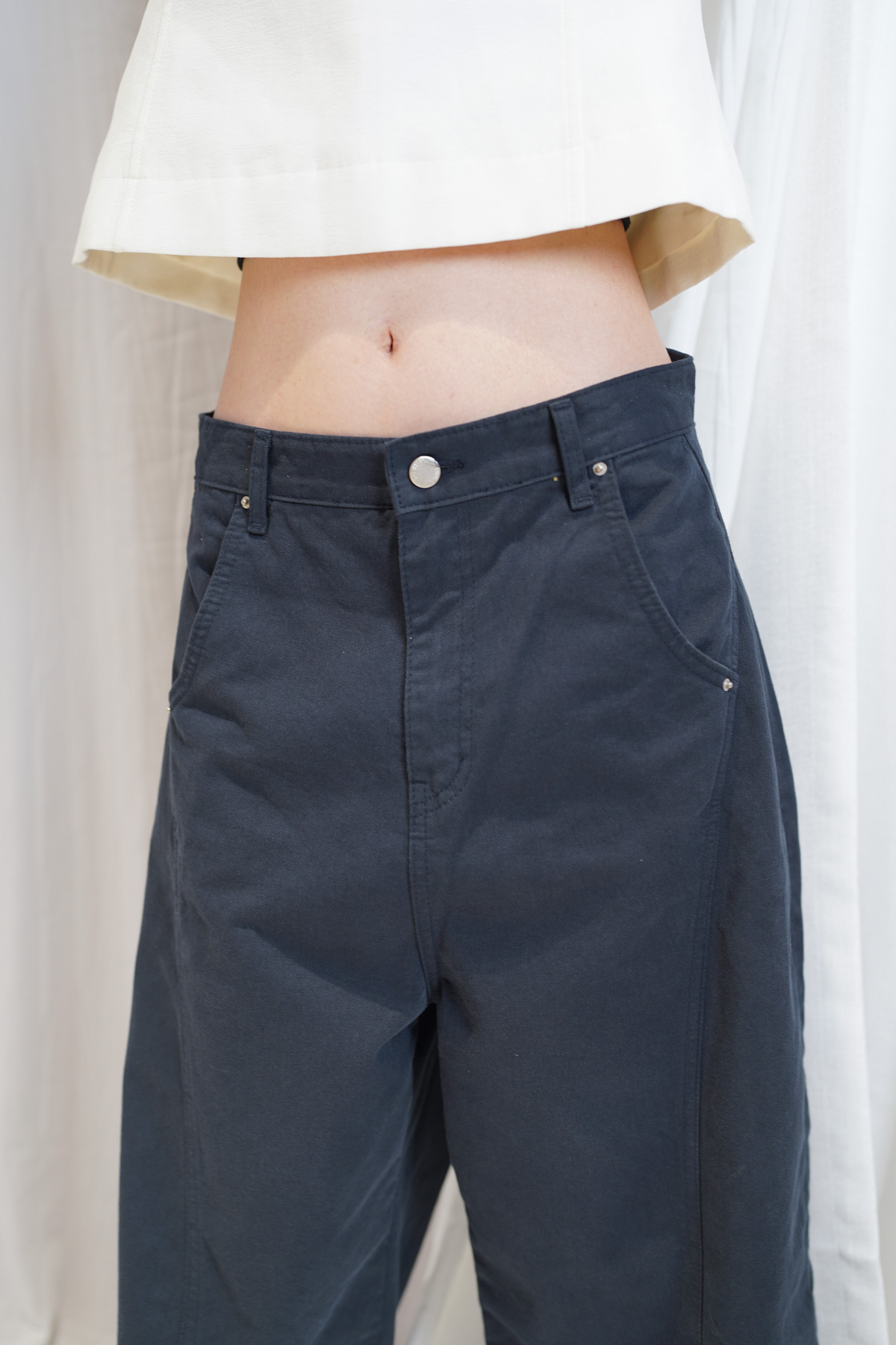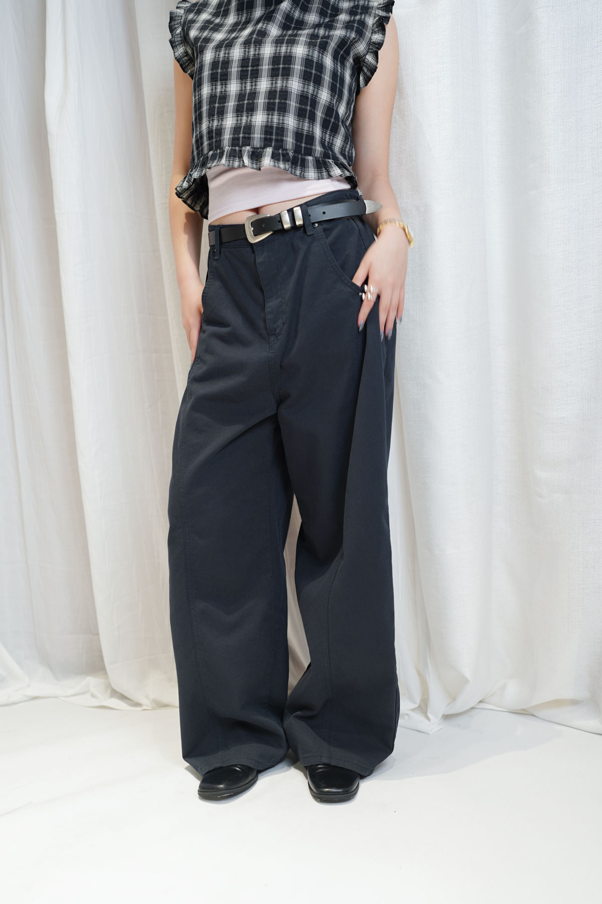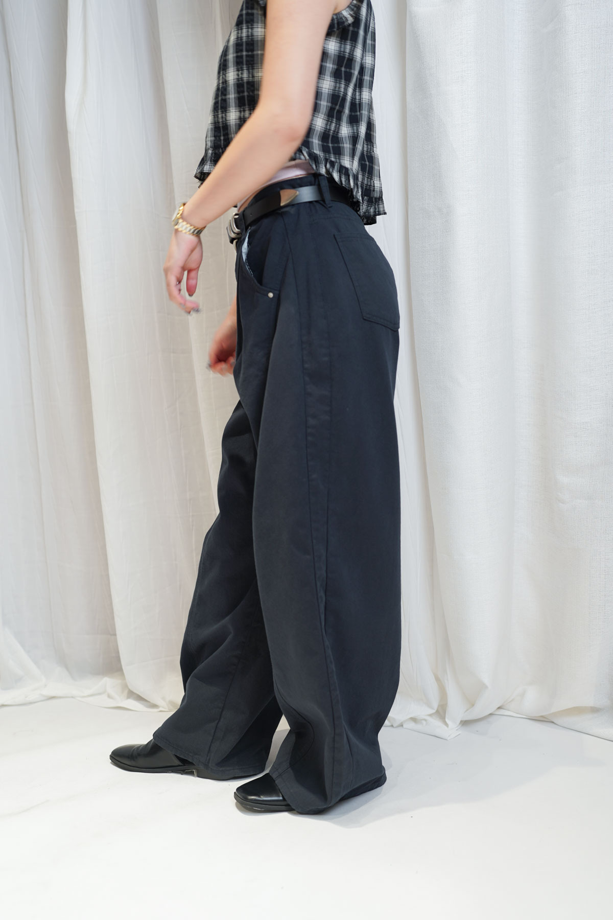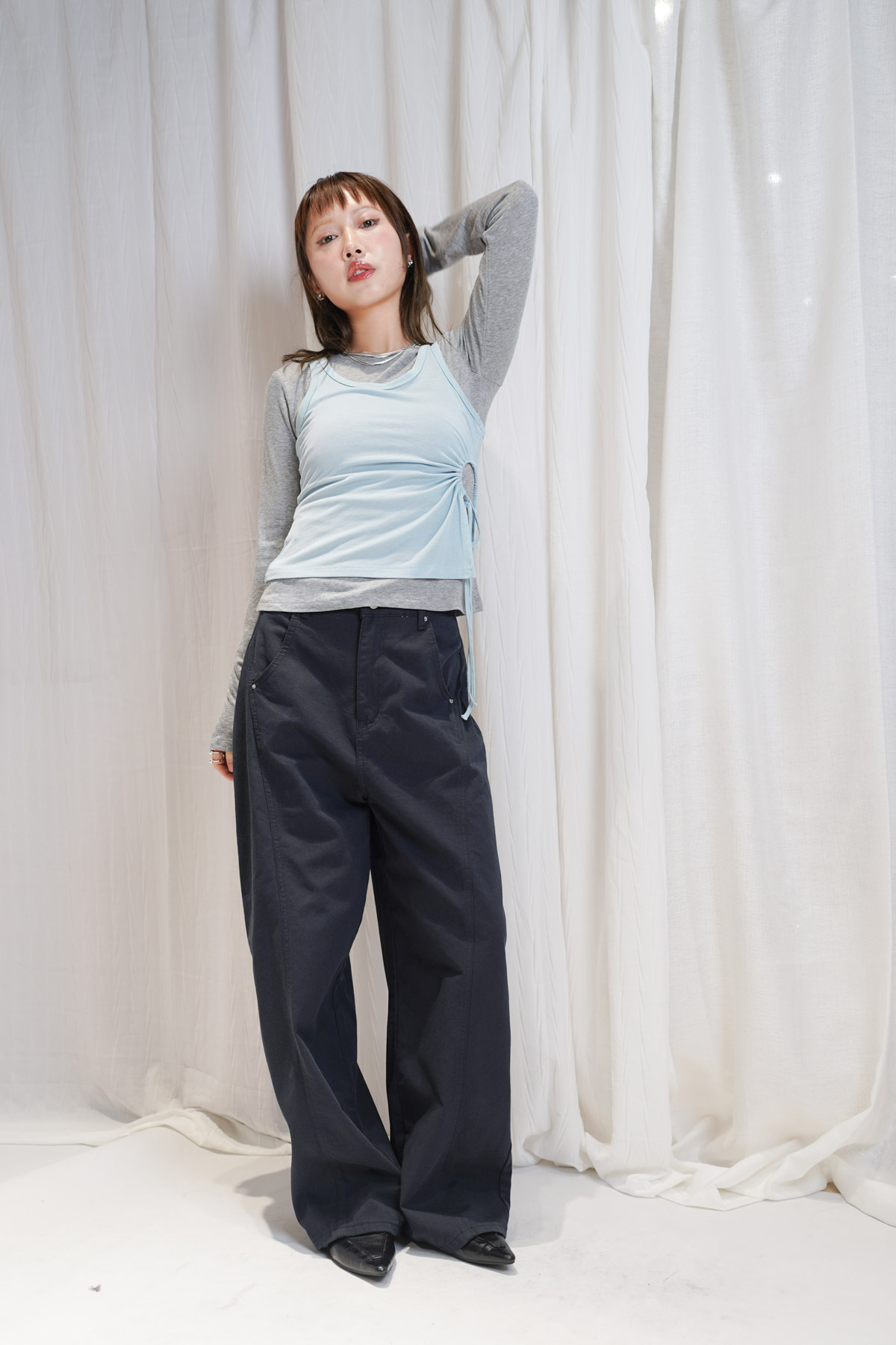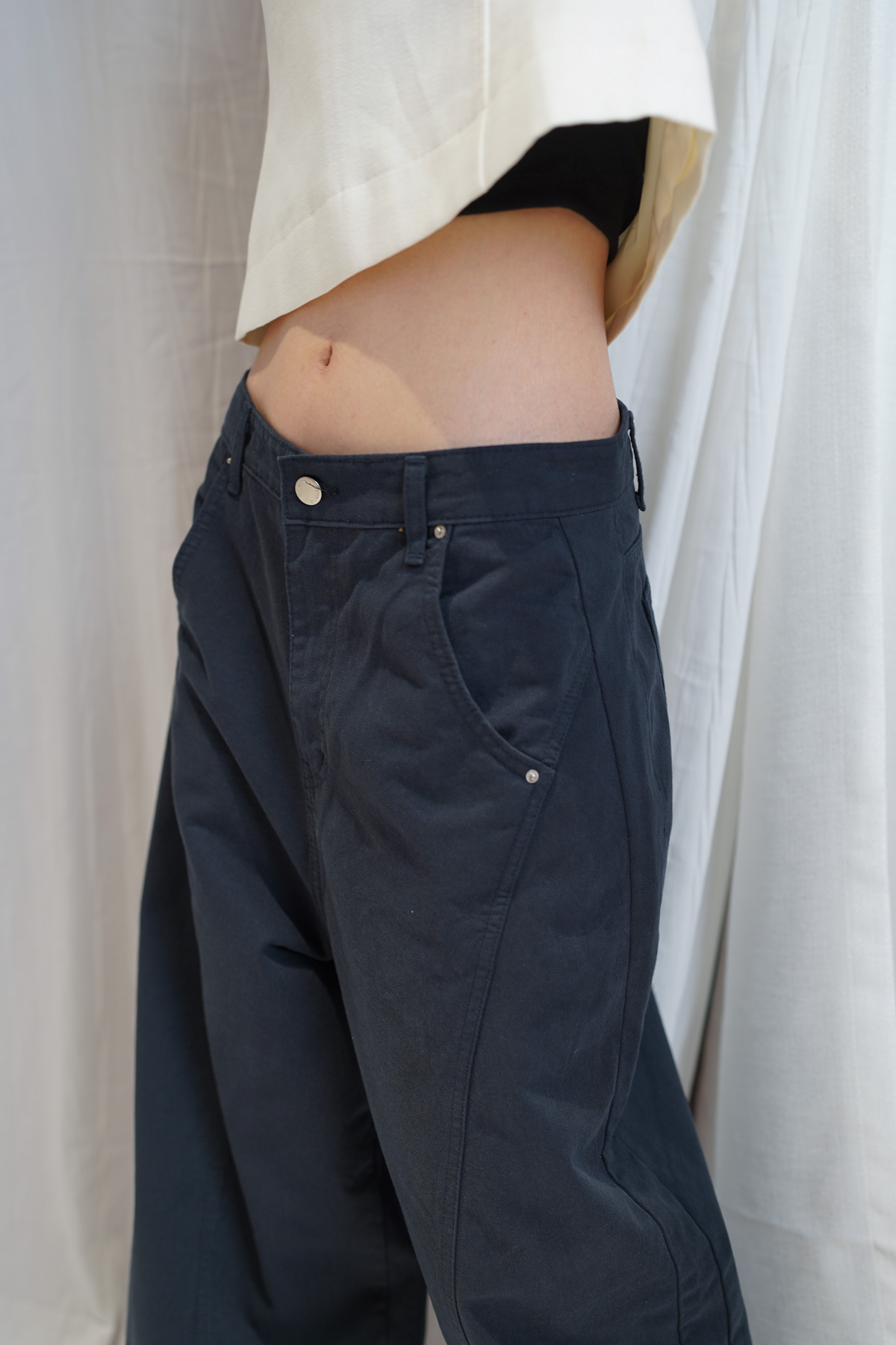 Straight-cut 90s workwear pants with metail points (BEIGE / NAVY) (S / M / L)