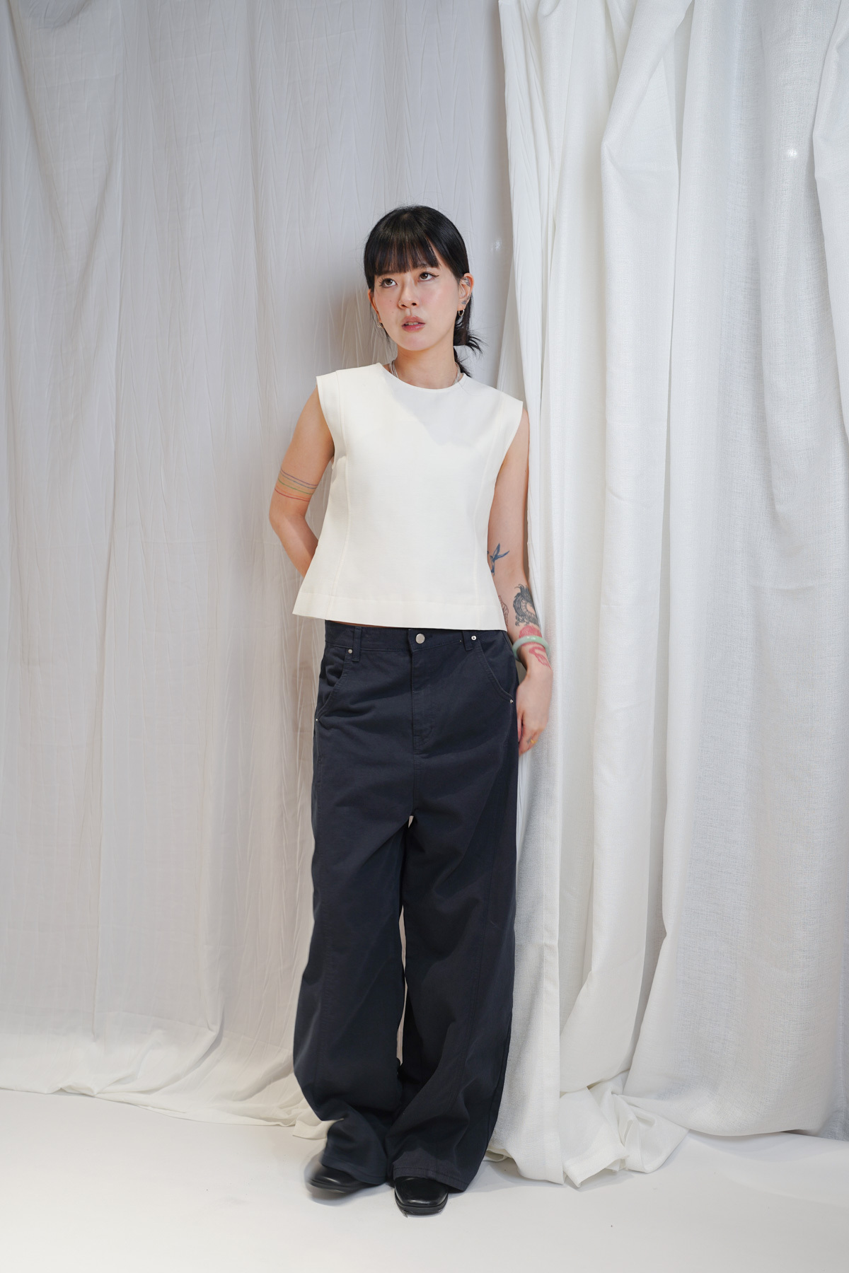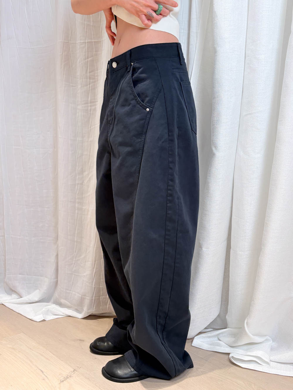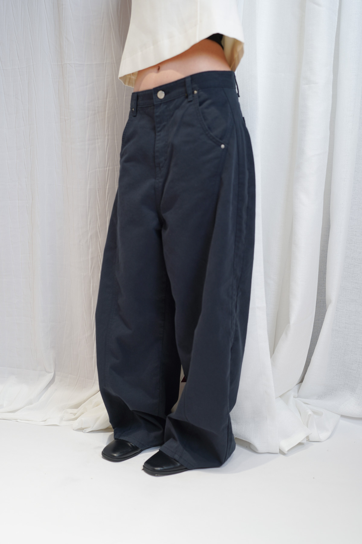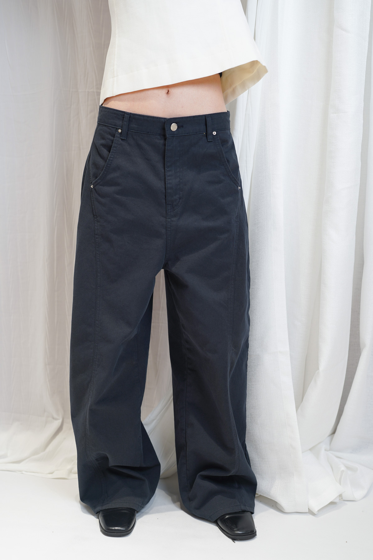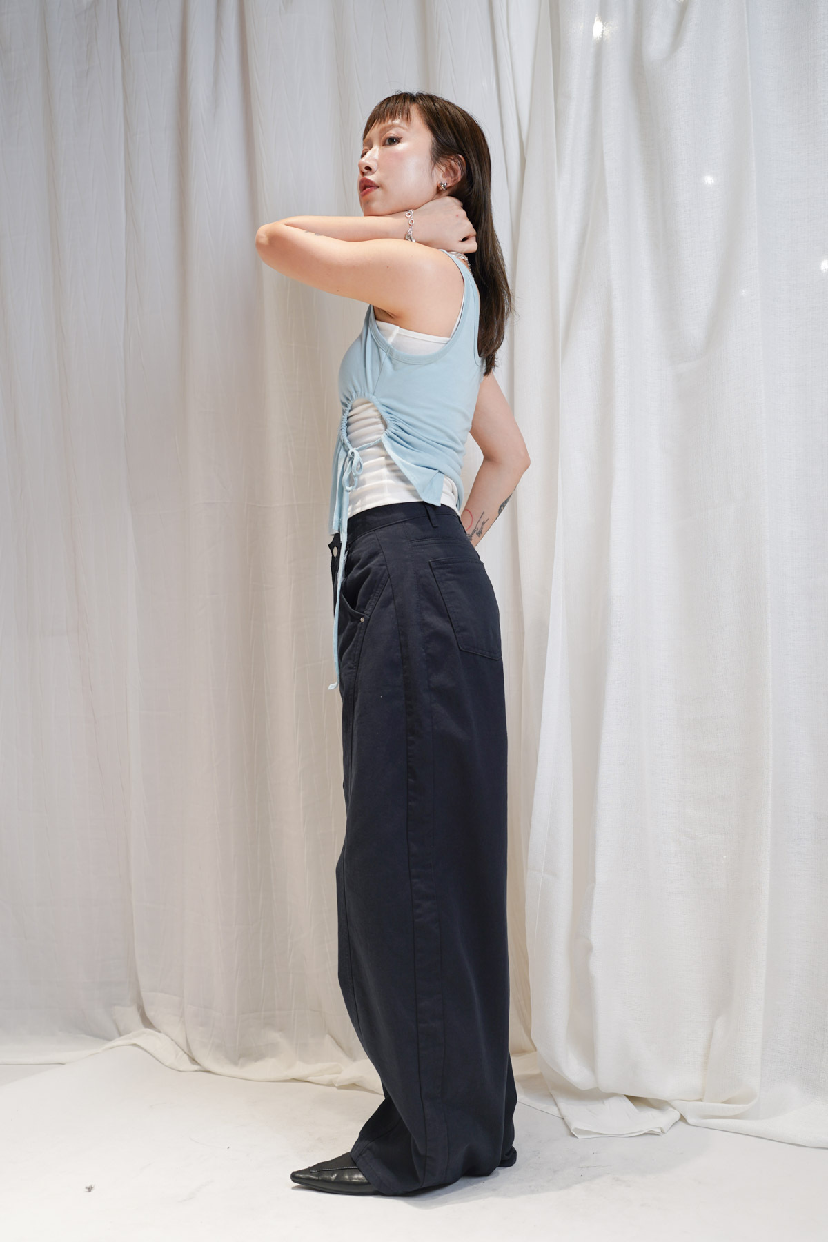 Straight-cut 90s workwear pants with metail points (BEIGE / NAVY) (S / M / L)
