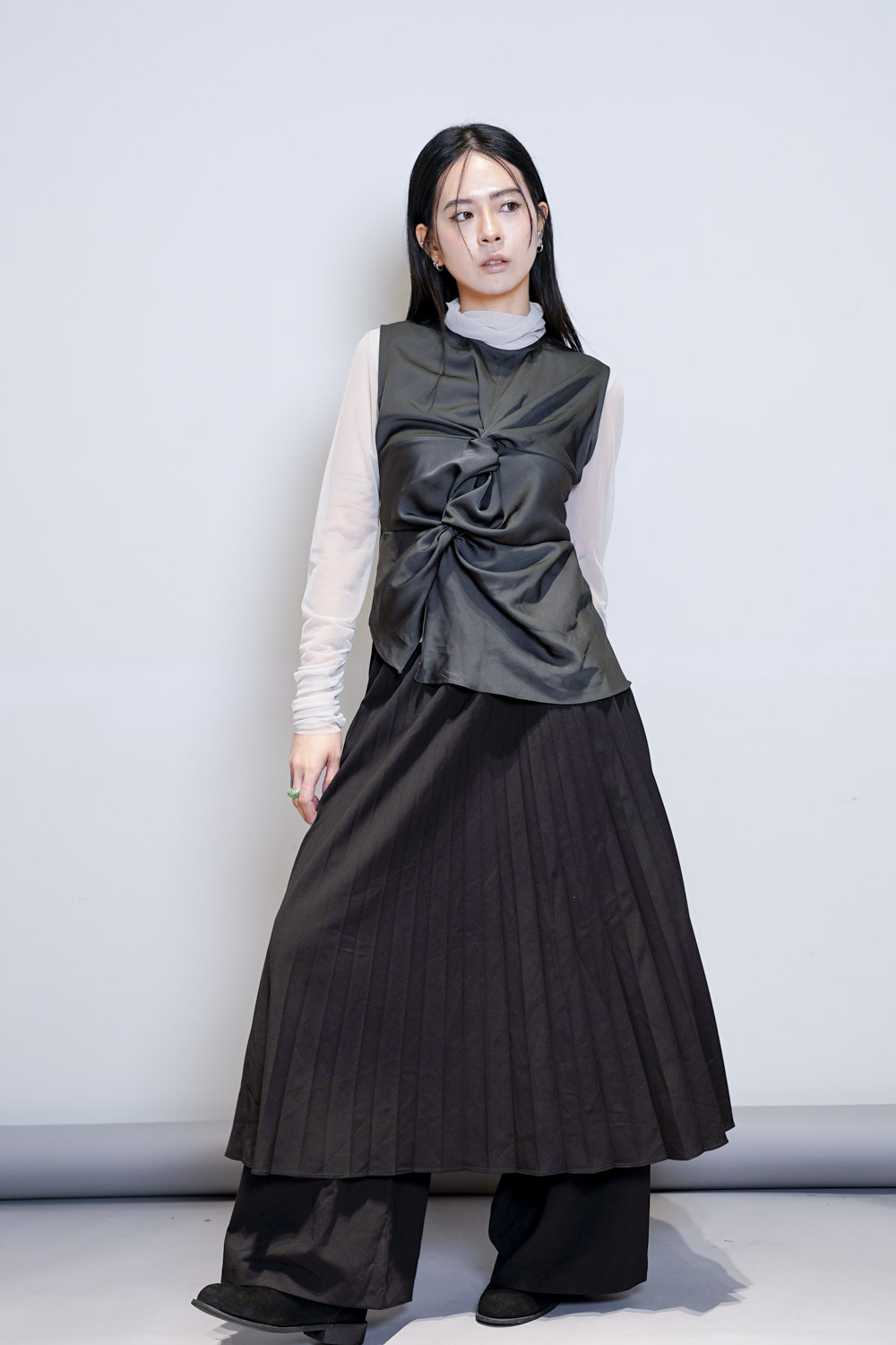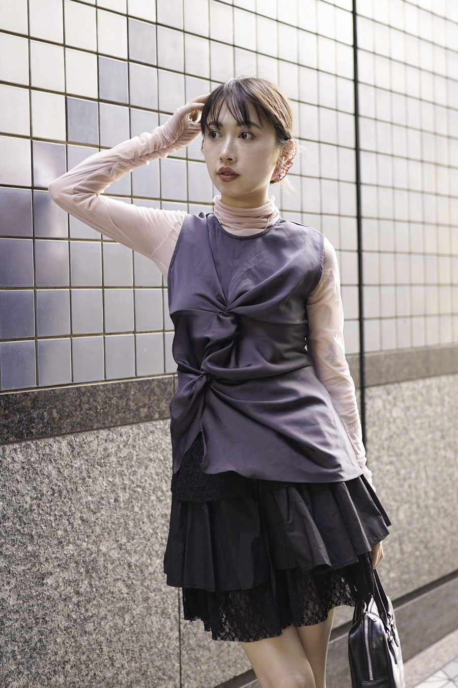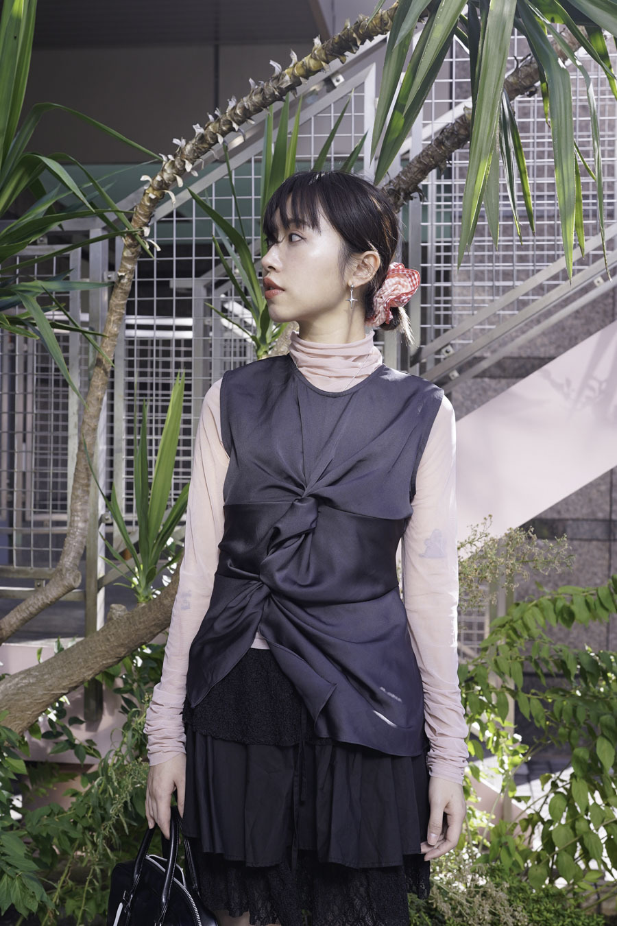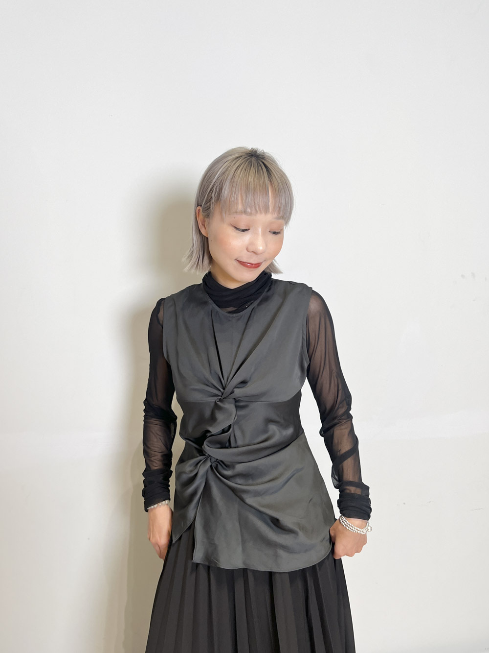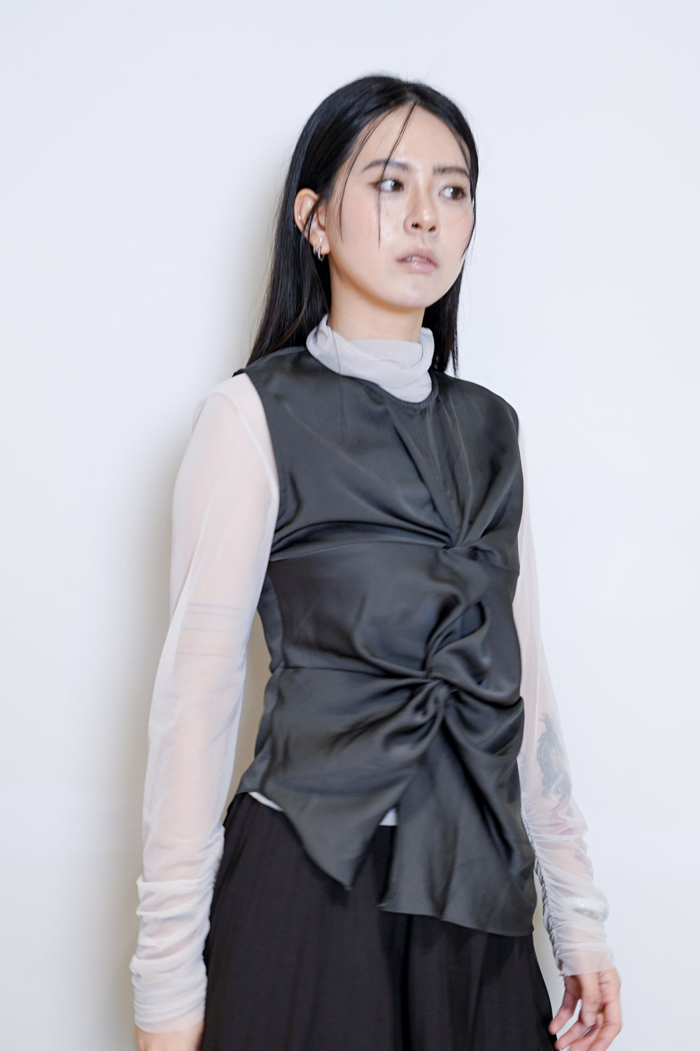 Happy price~Twisted silky vest (WHITE/ GREY)