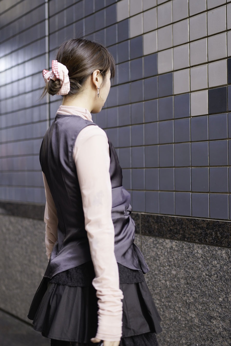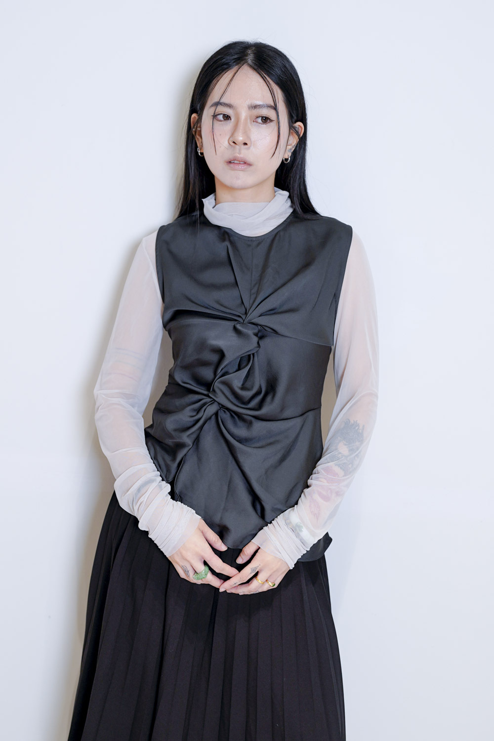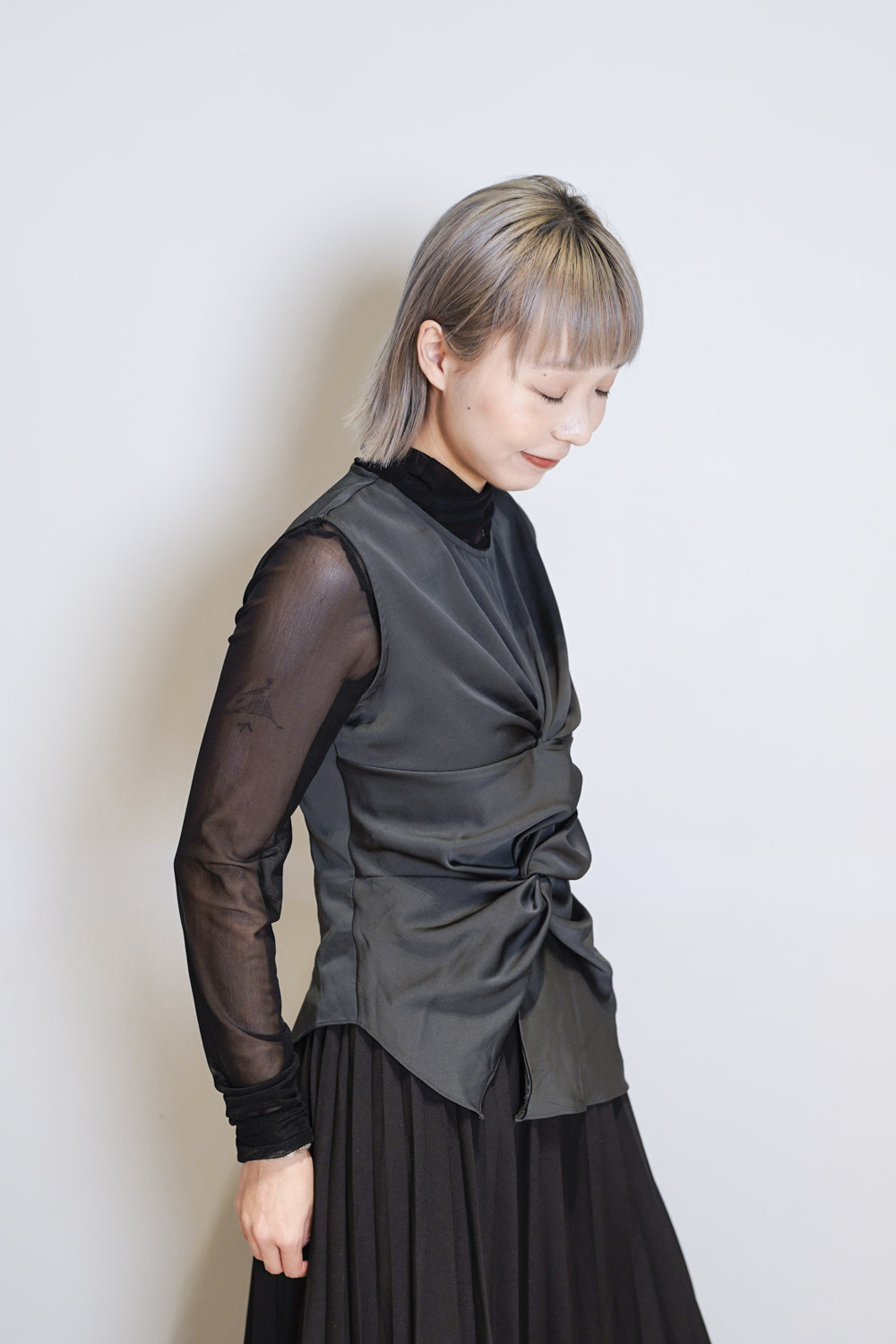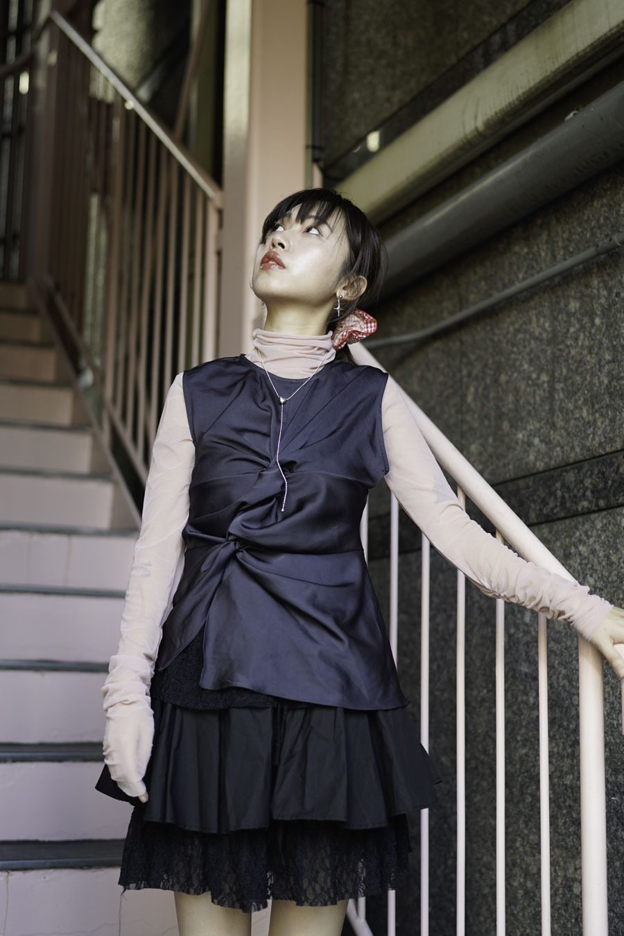 Happy price~Twisted silky vest (WHITE/ GREY)