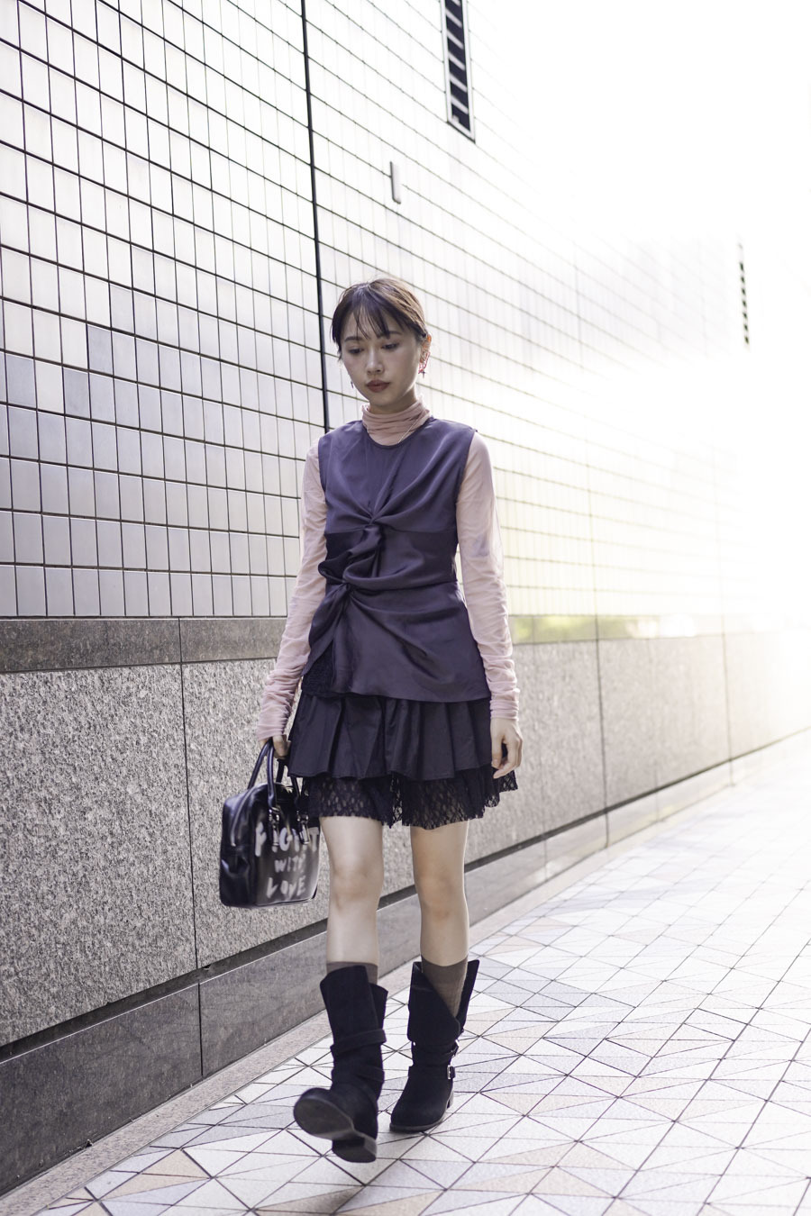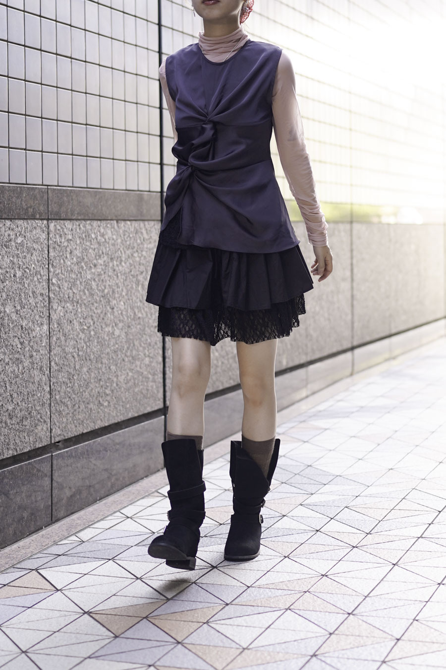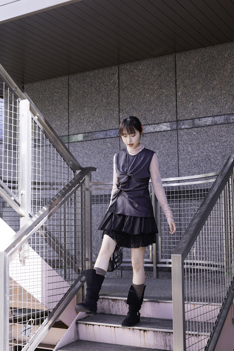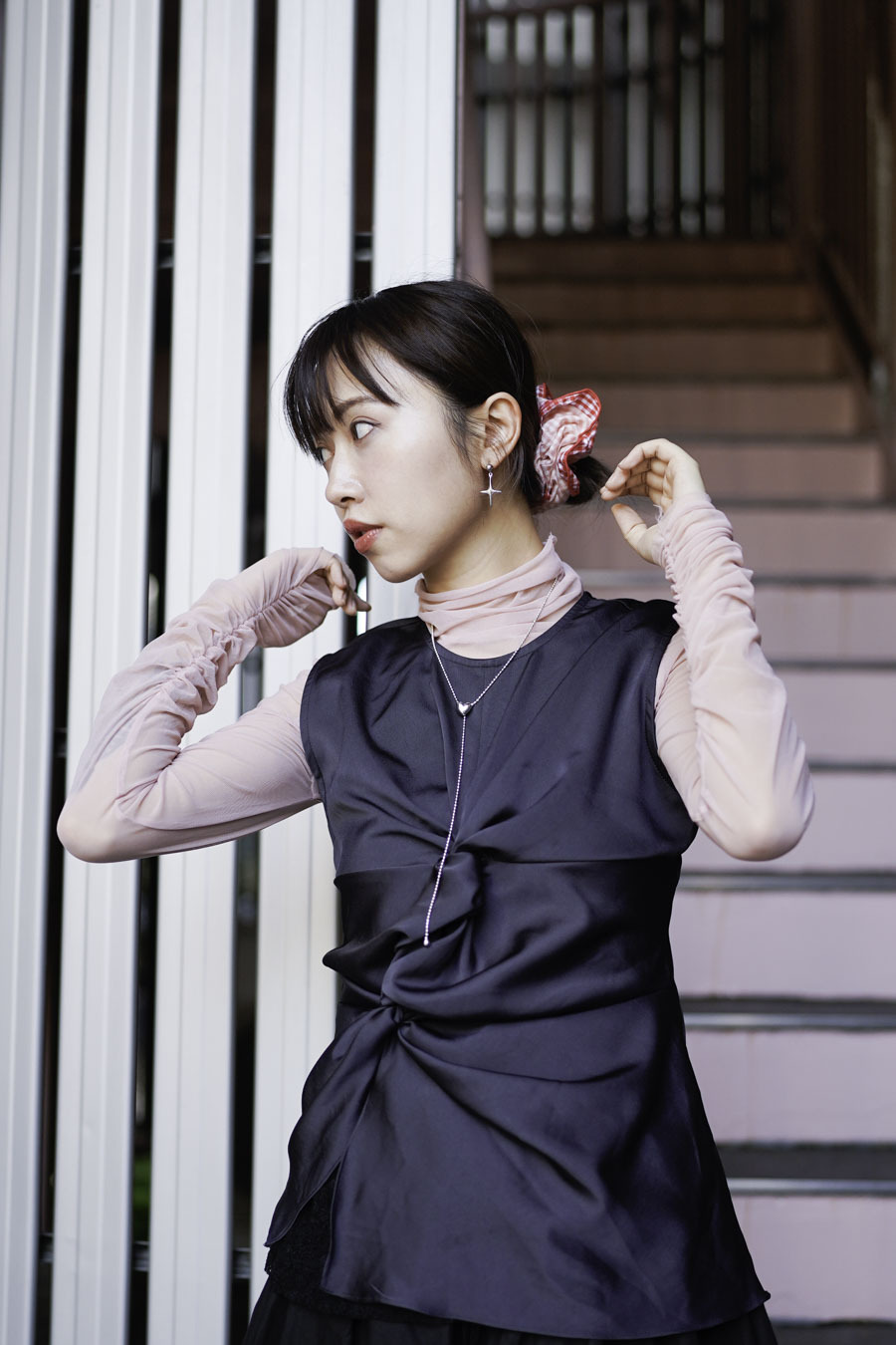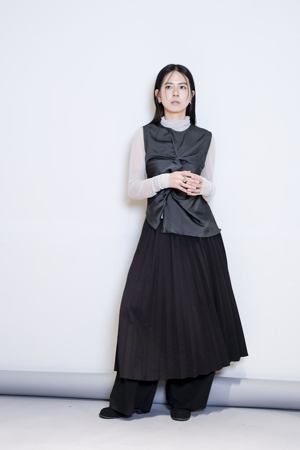 Happy price~Twisted silky vest (WHITE/ GREY)