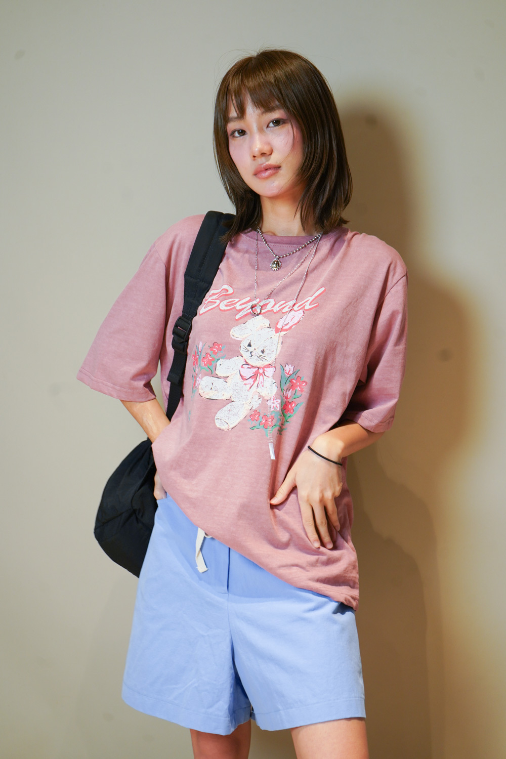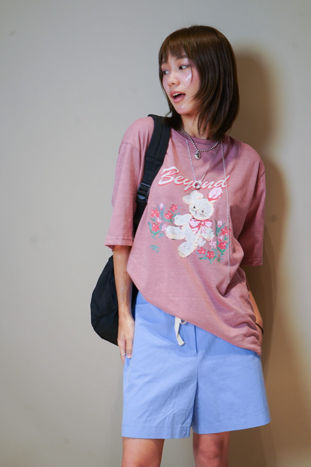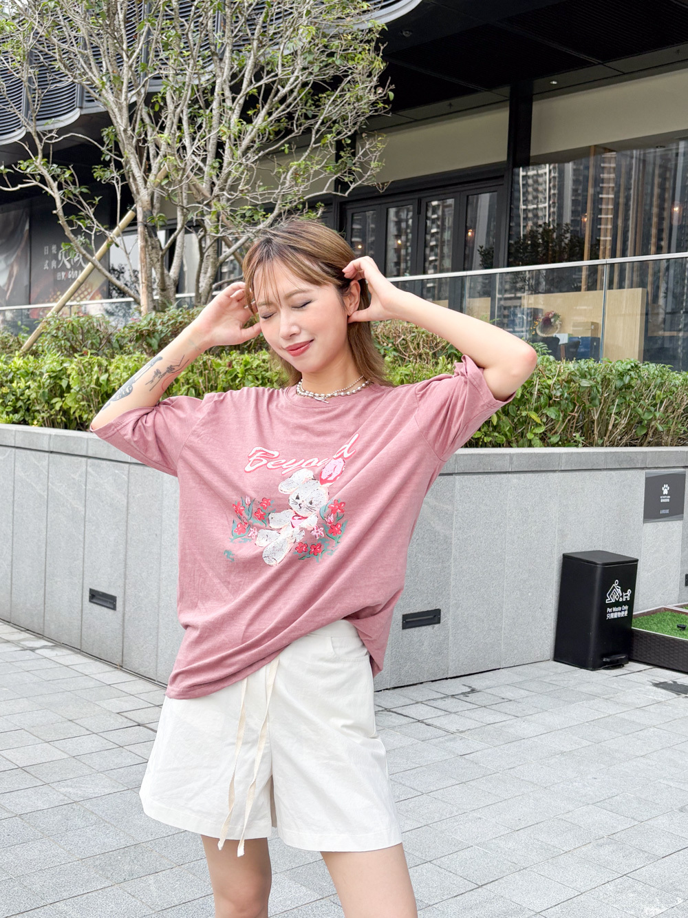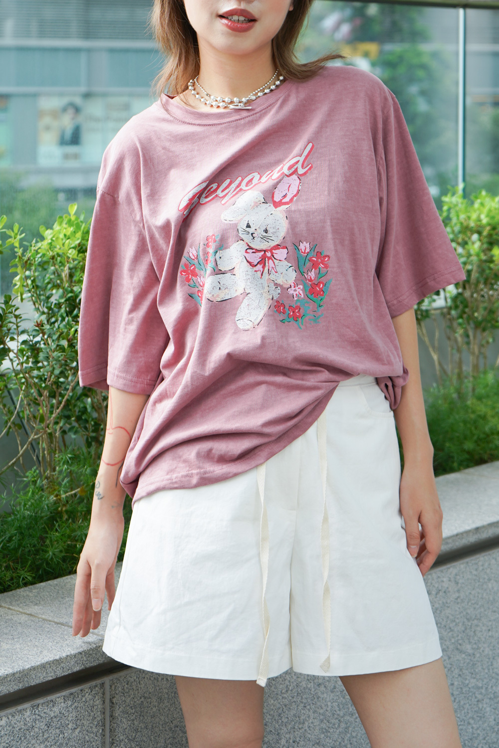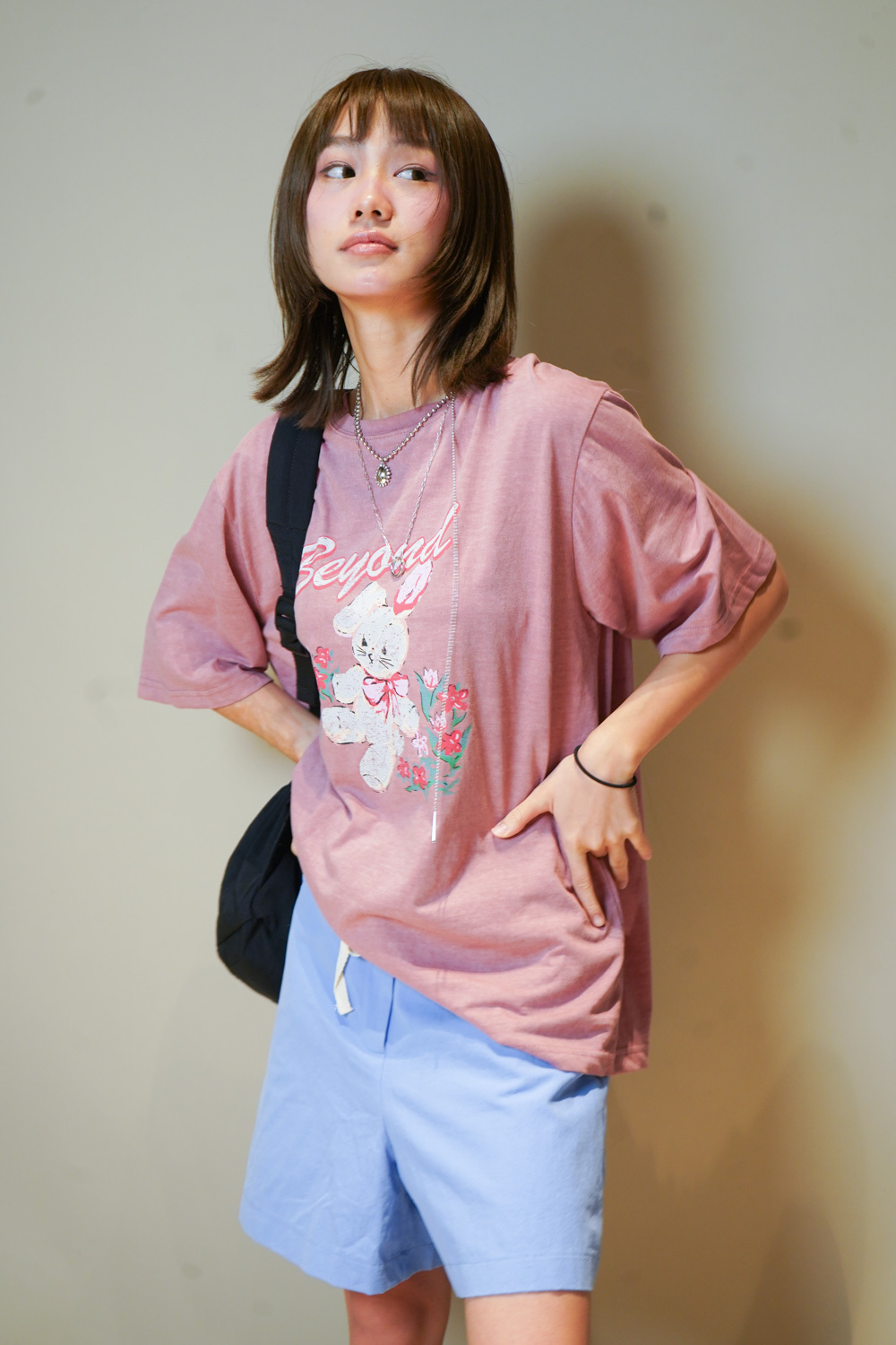 Happy price!~Vintage print rabbit tee (GREY/DUSTY PINK)