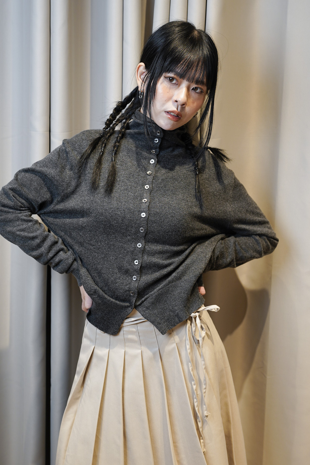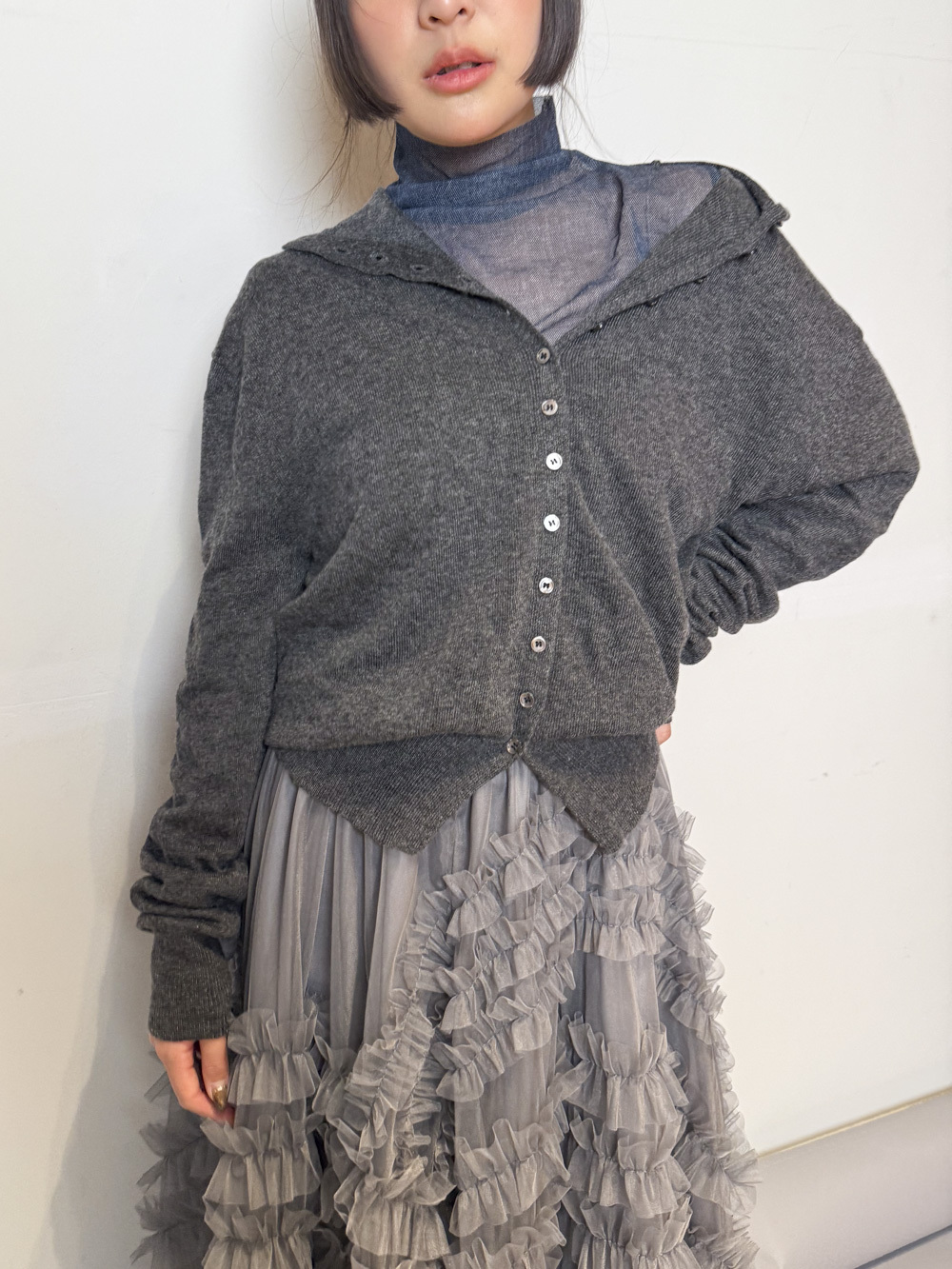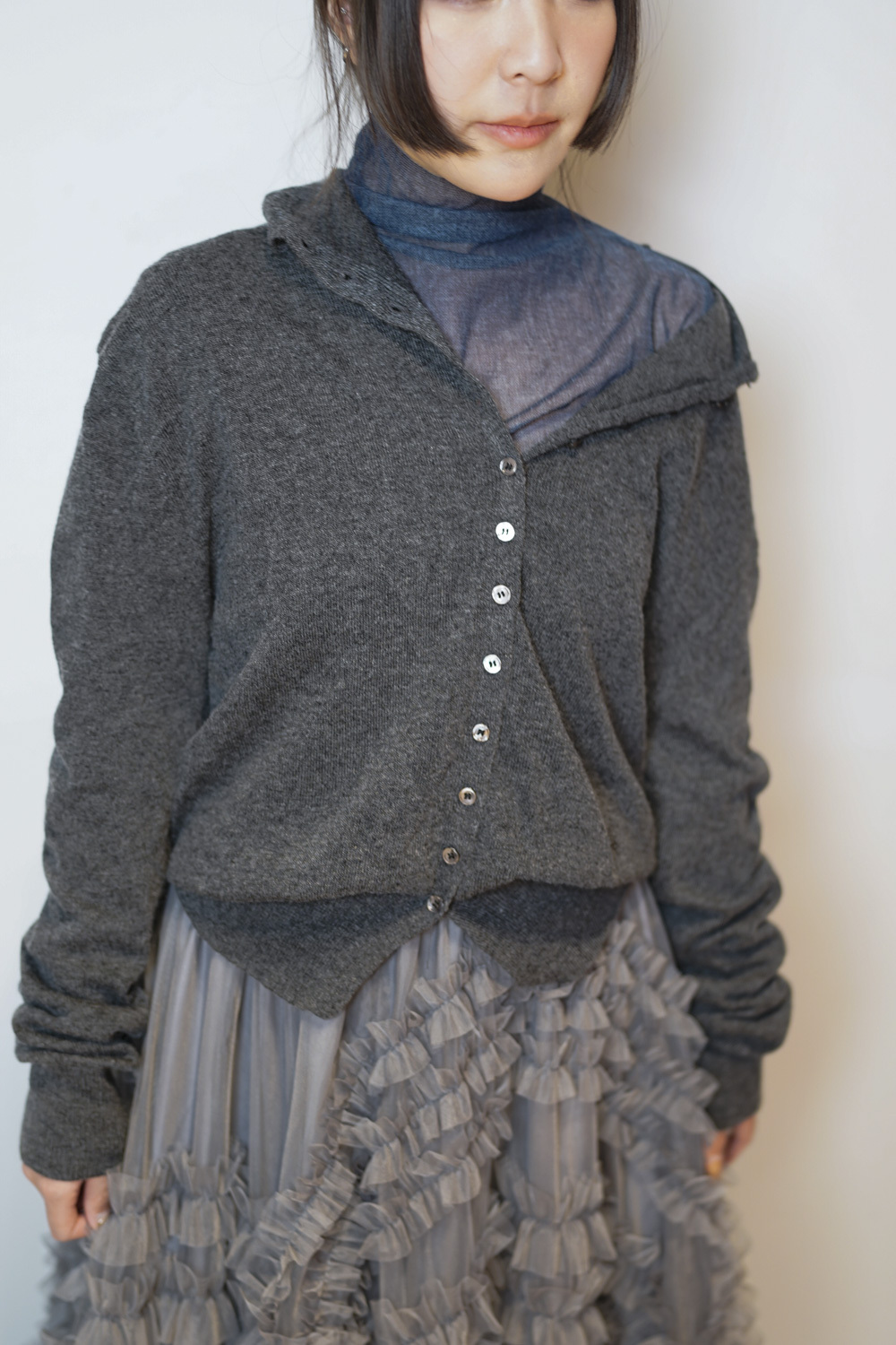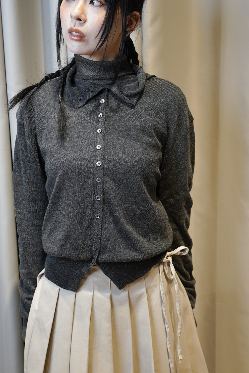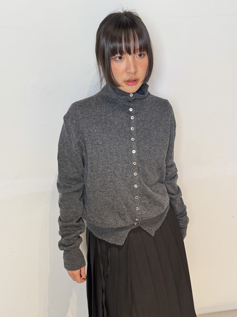 Hemingway collar cardigan-8% wool (WHITE / GREY)