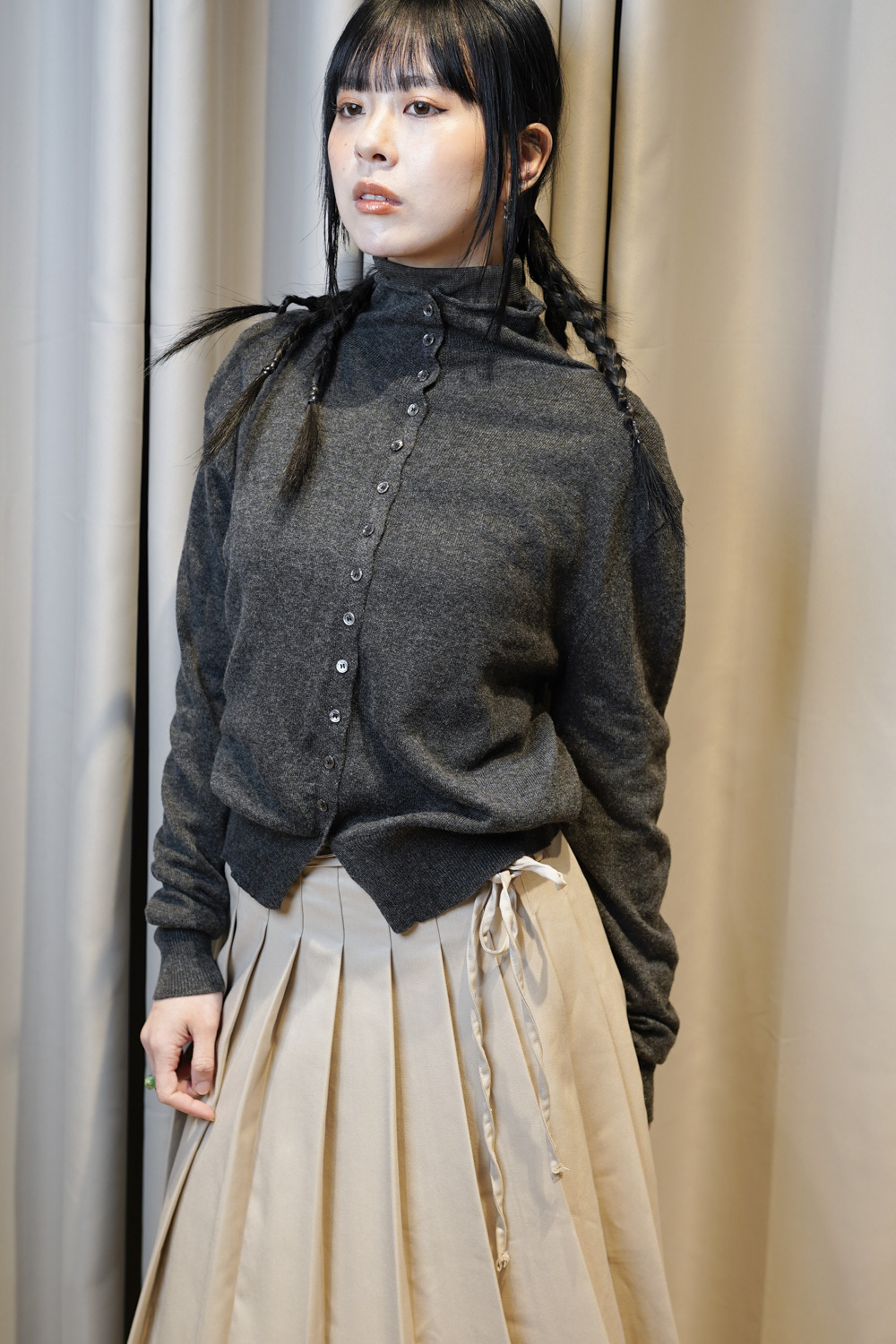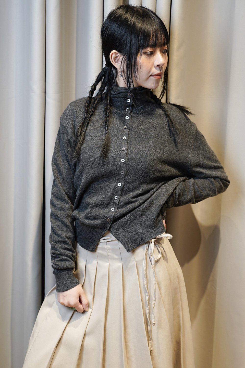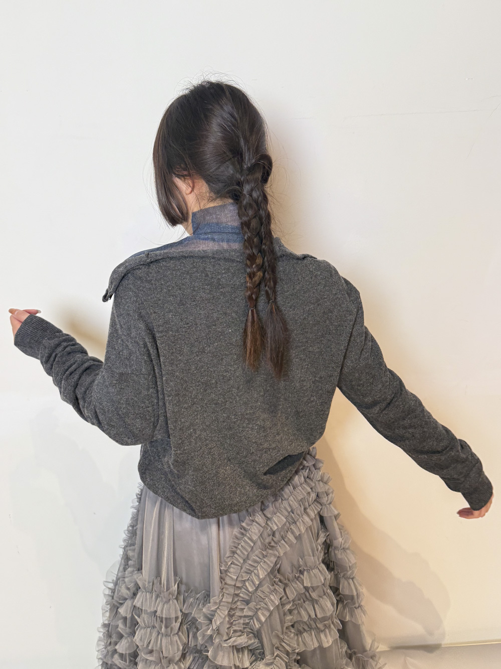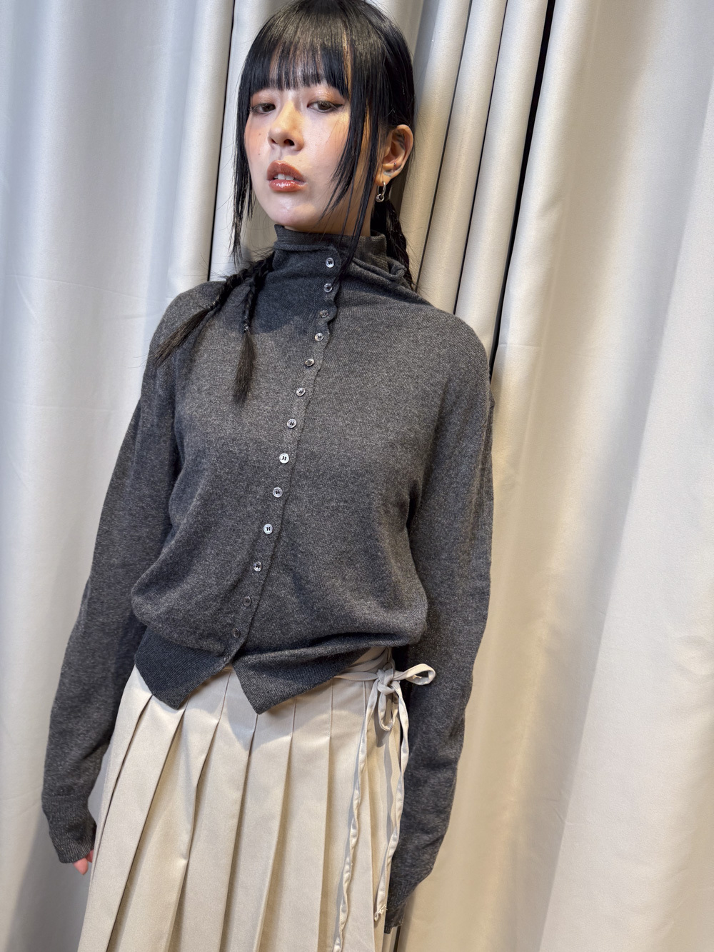 Hemingway collar cardigan-8% wool (WHITE / GREY)