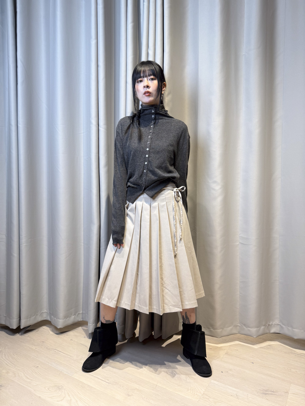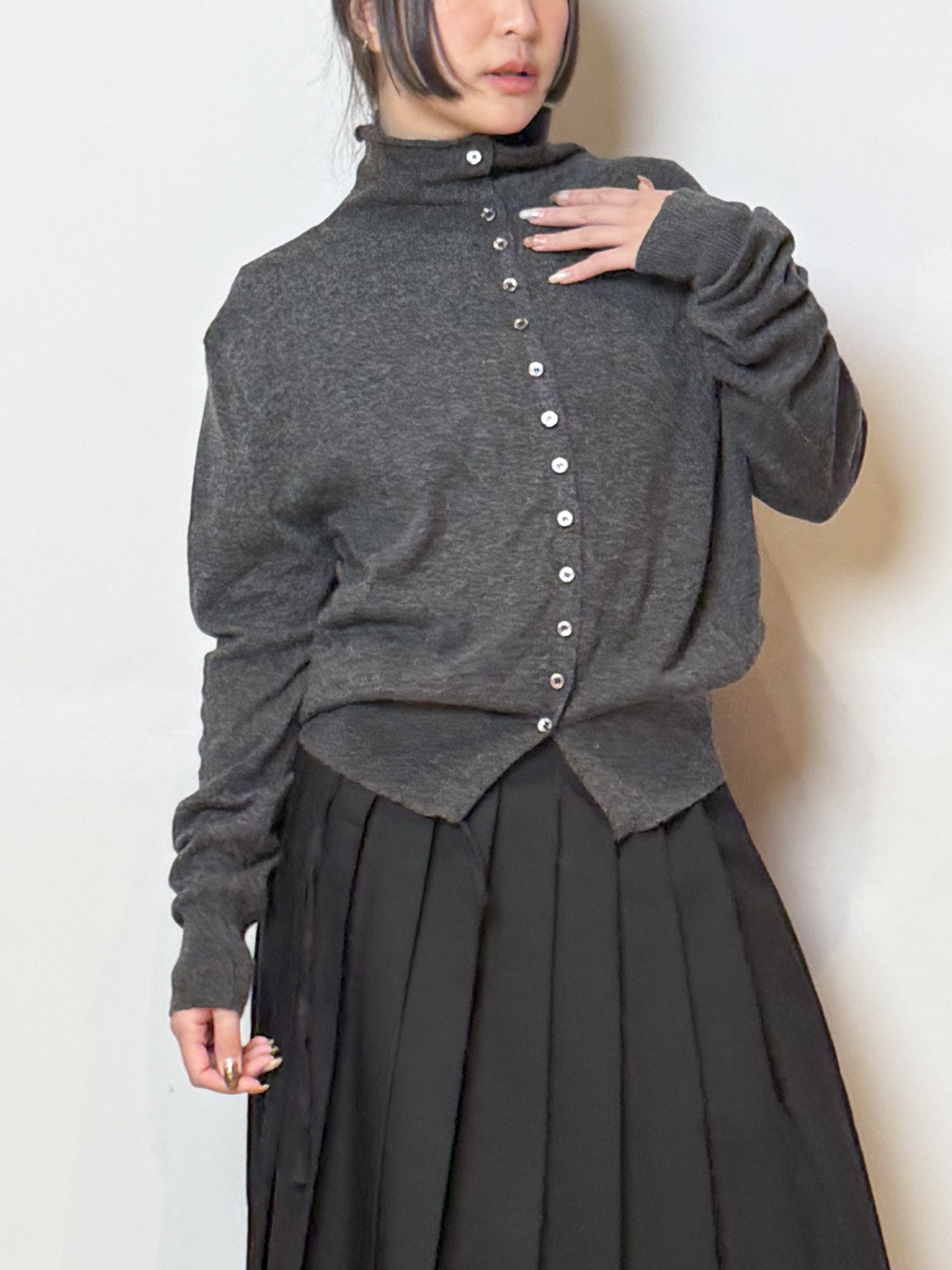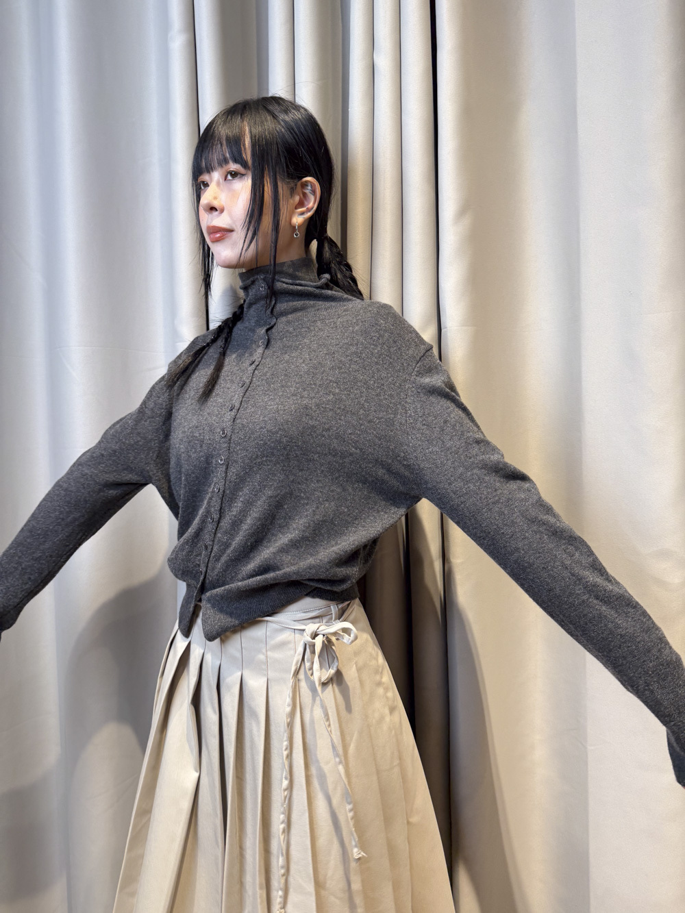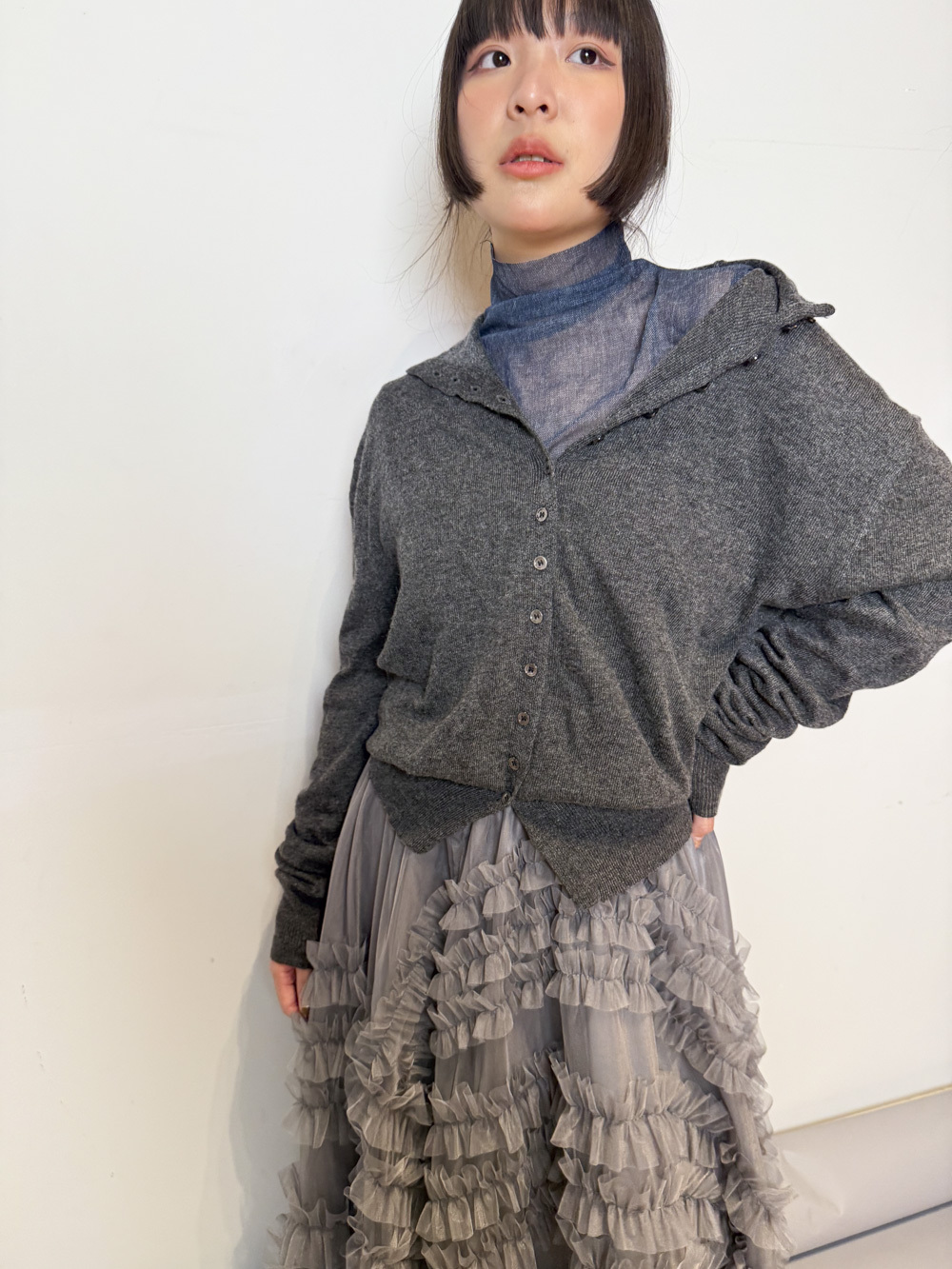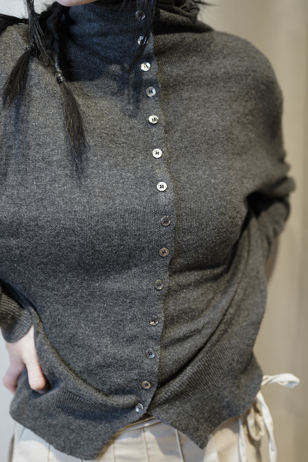 Hemingway collar cardigan-8% wool (WHITE / GREY)