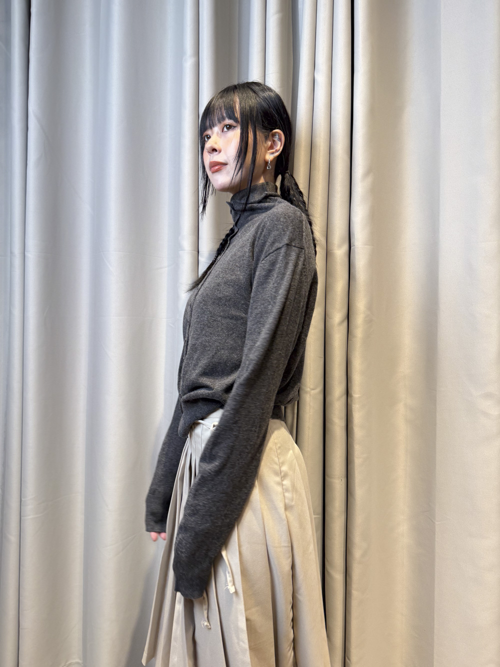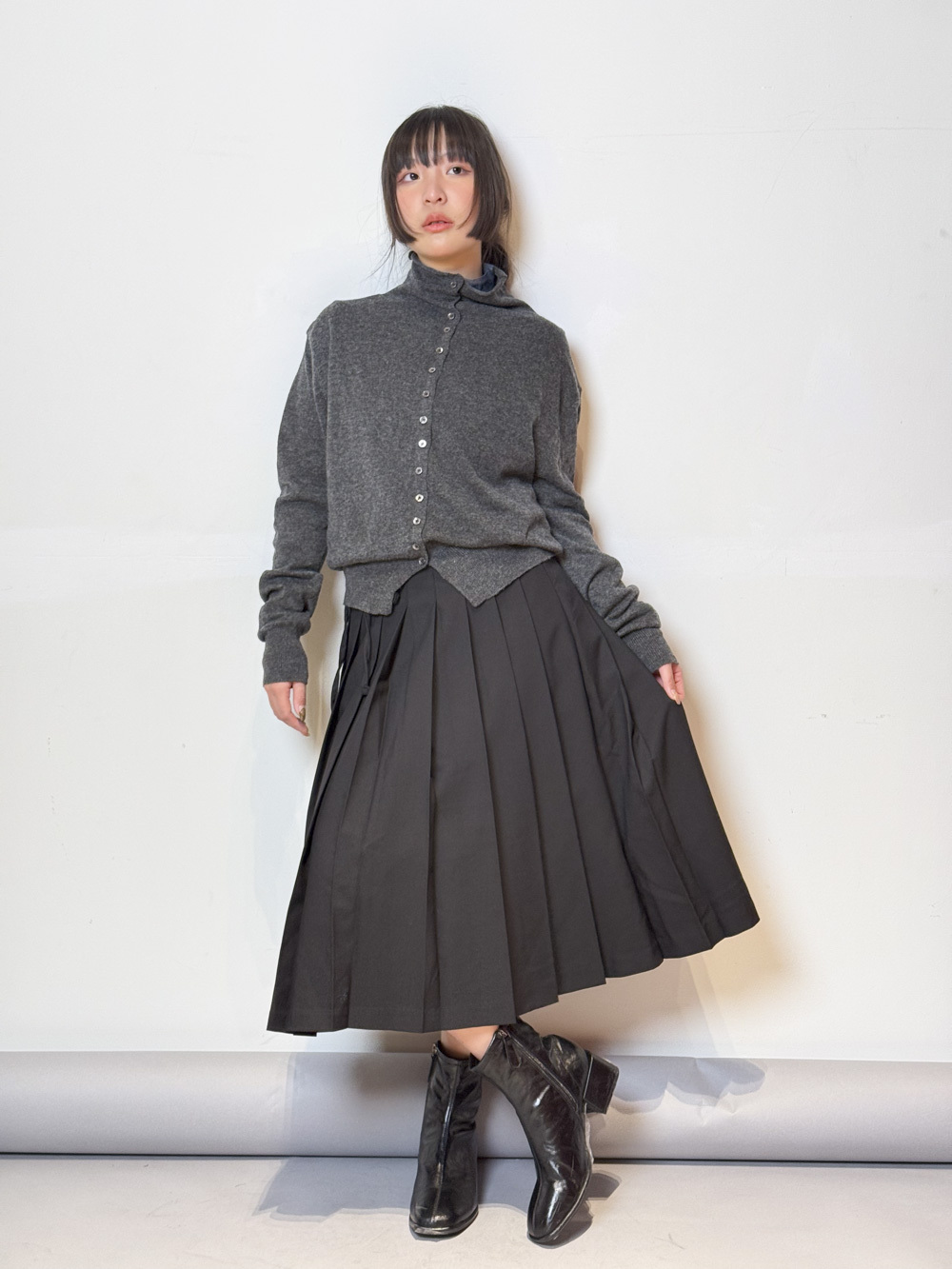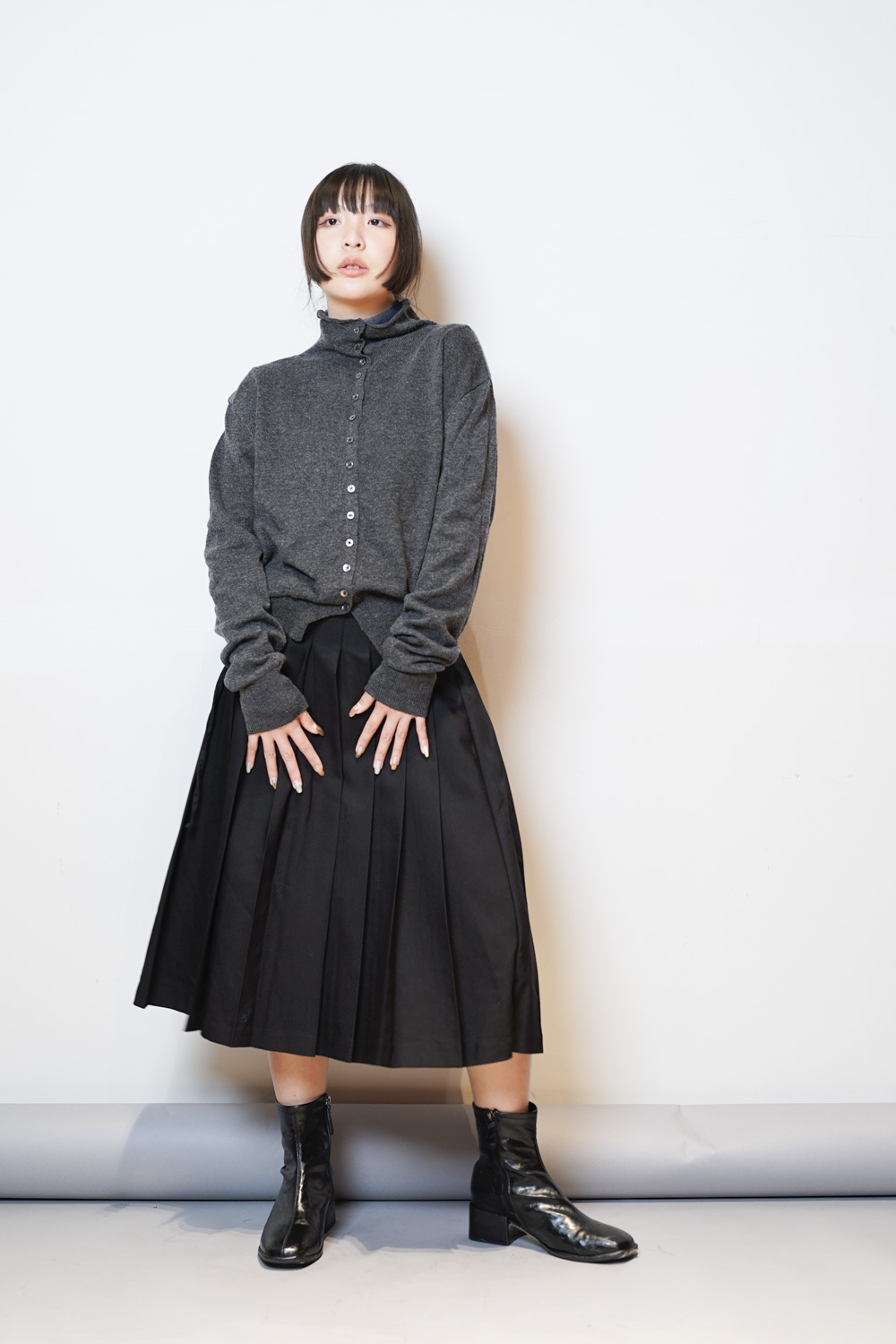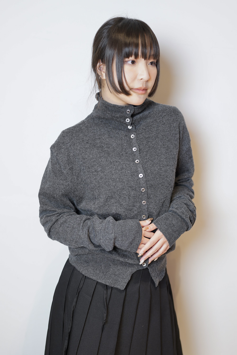 Hemingway collar cardigan-8% wool (WHITE / GREY)