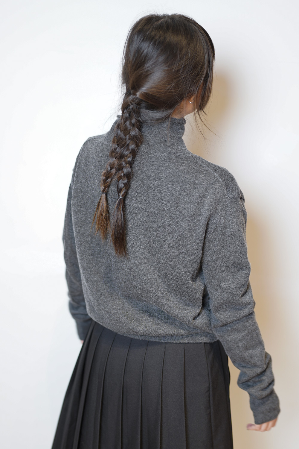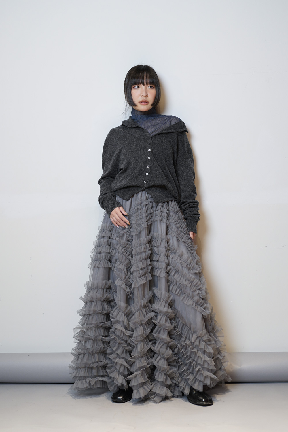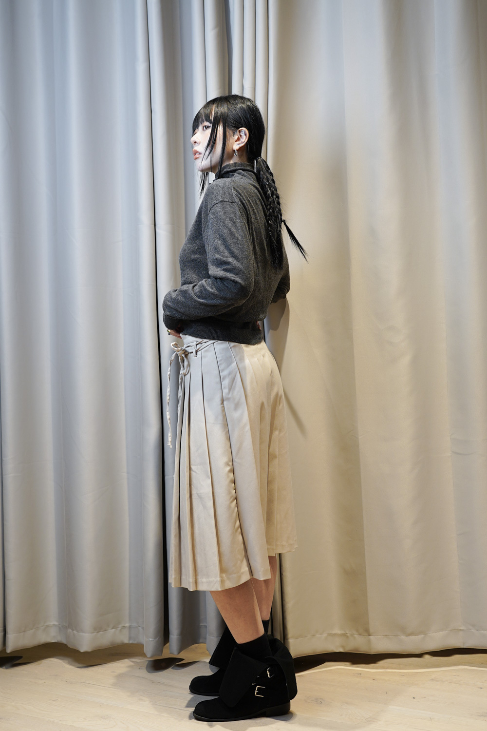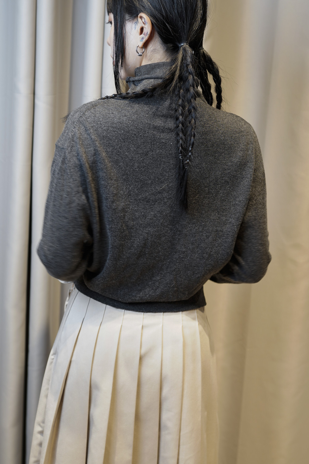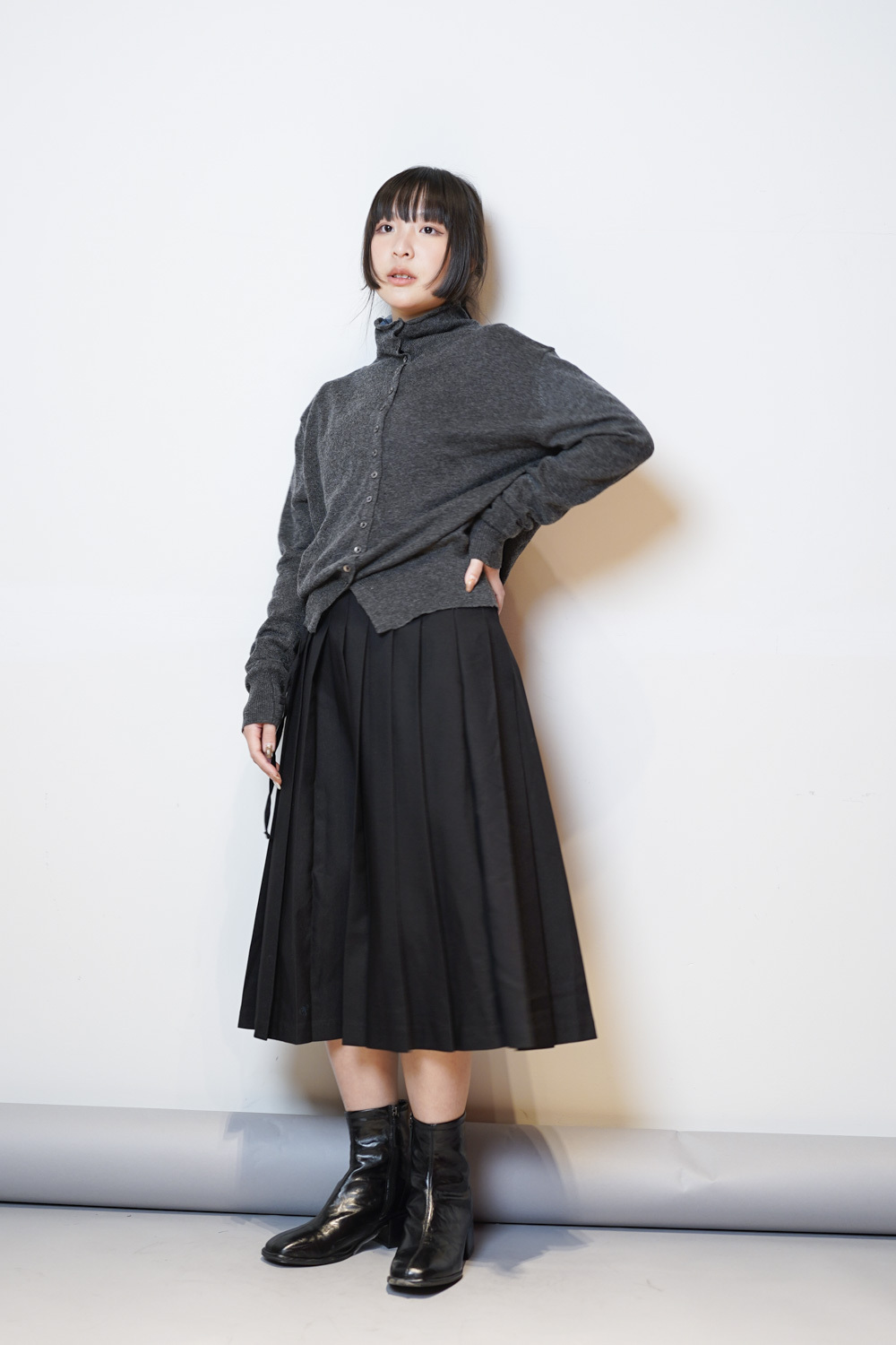 Hemingway collar cardigan-8% wool (WHITE / GREY)