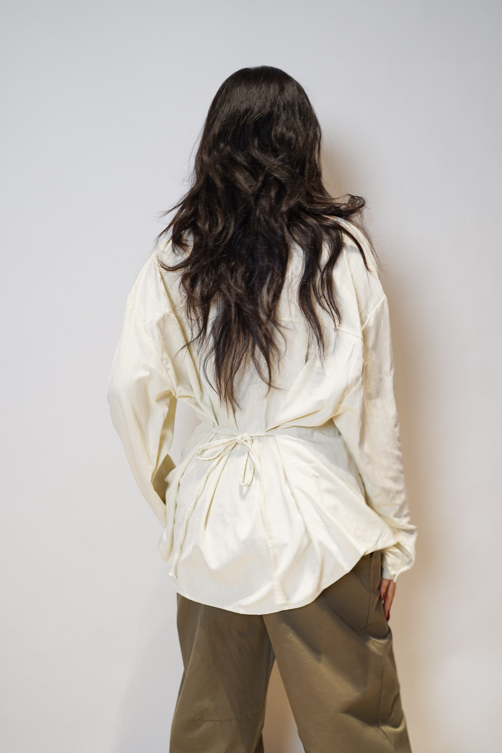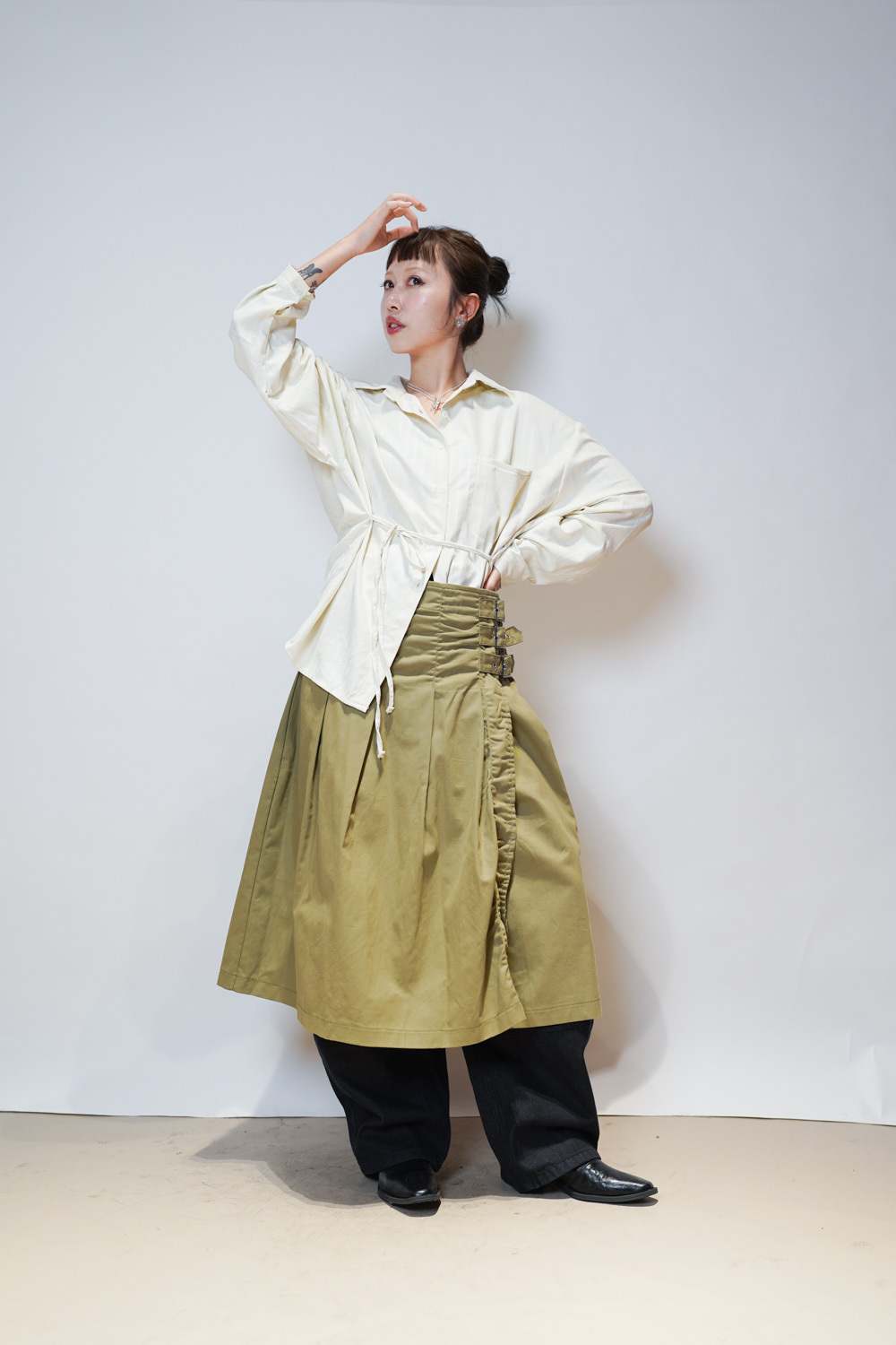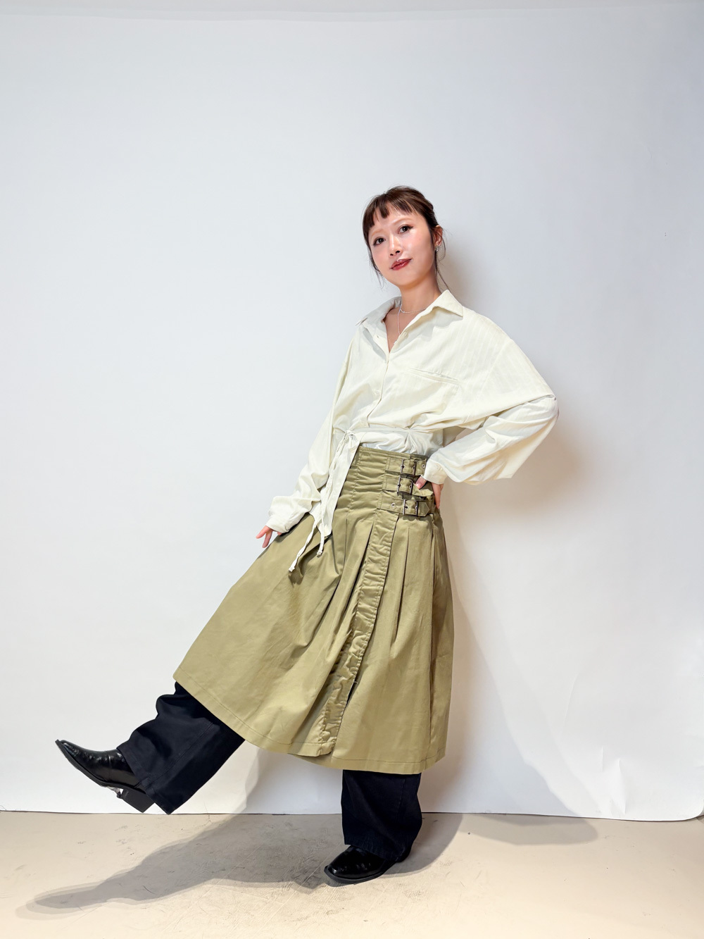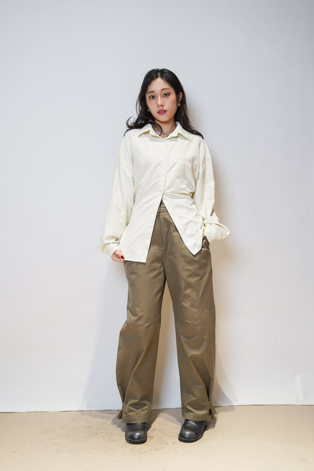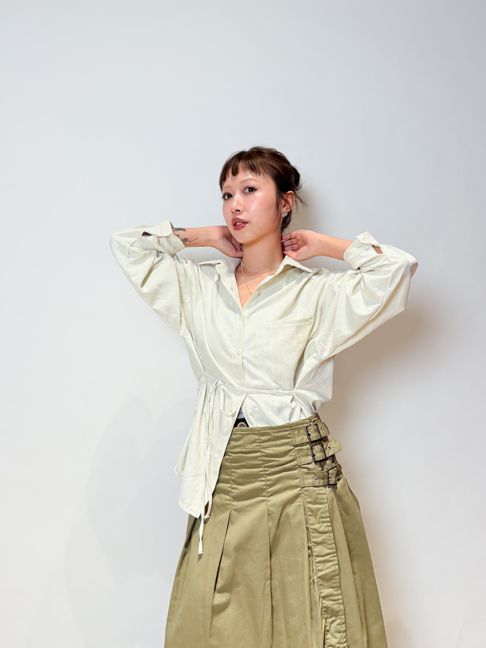 Hidden Striped shirt with waistband (BEIGE/ BLUE)