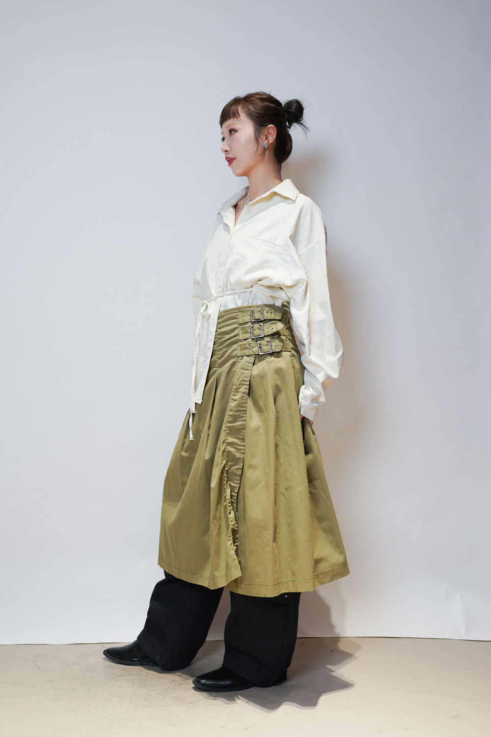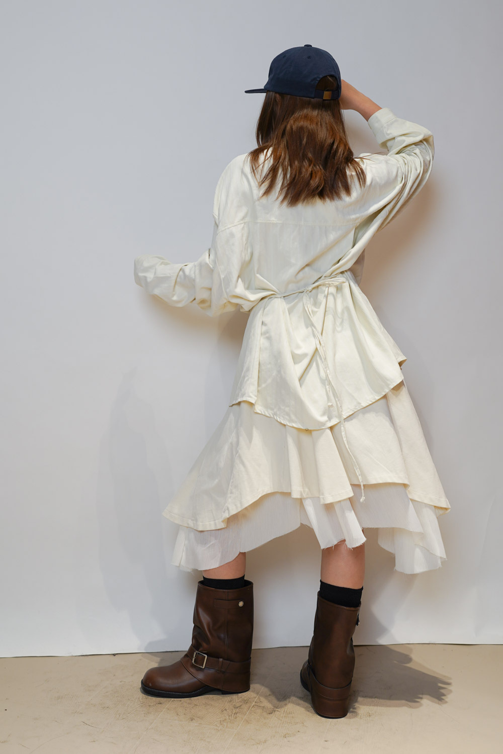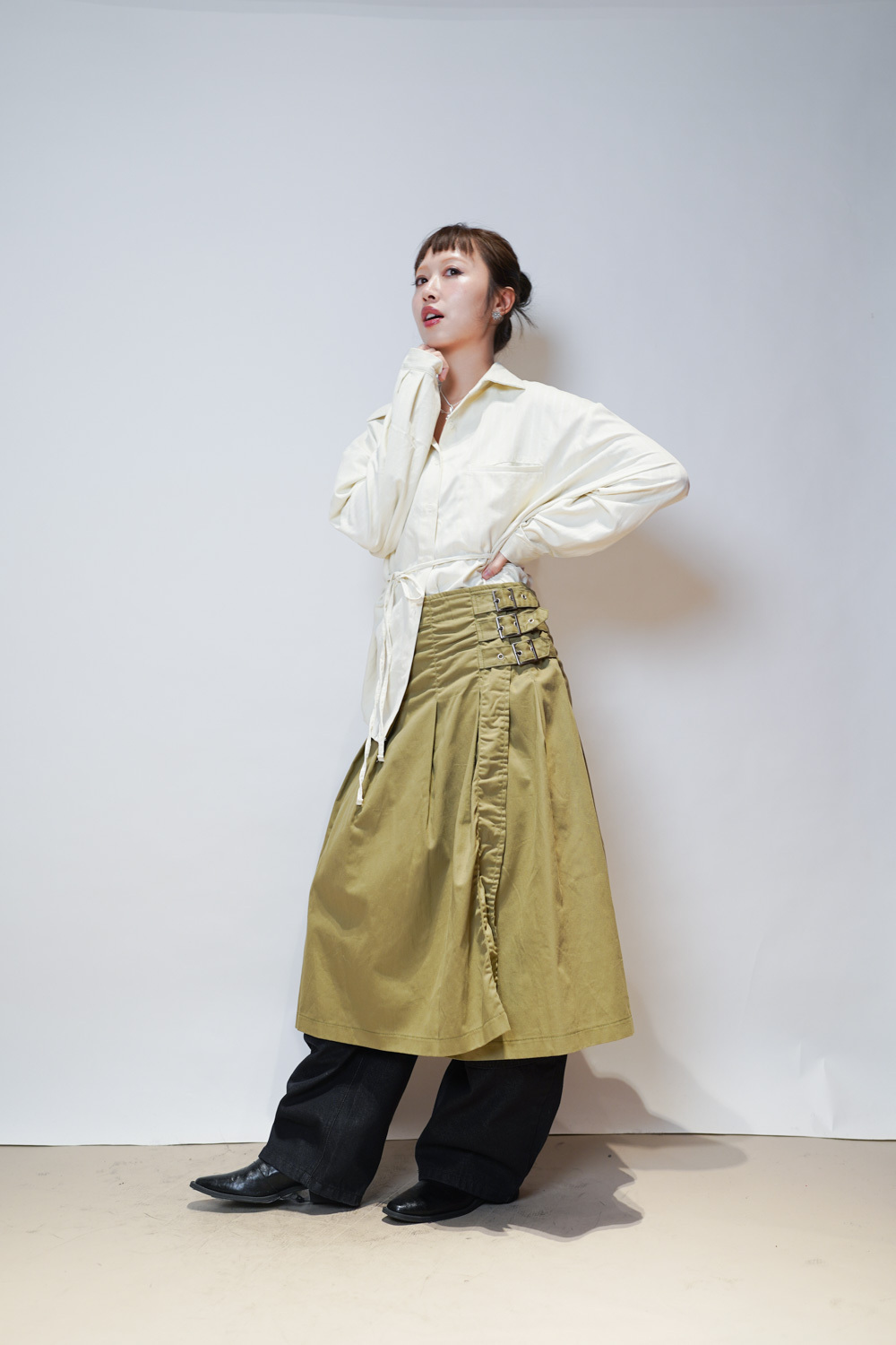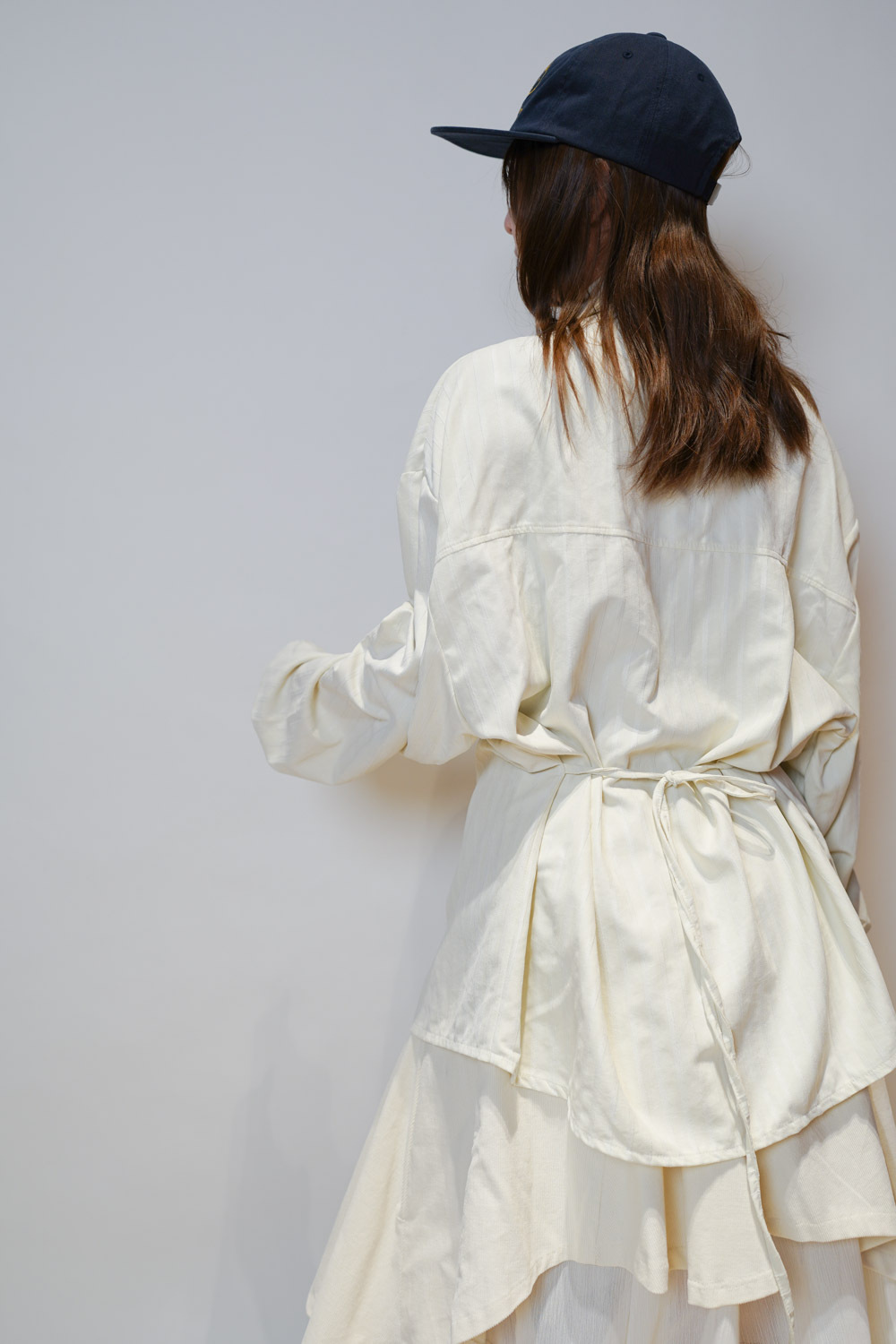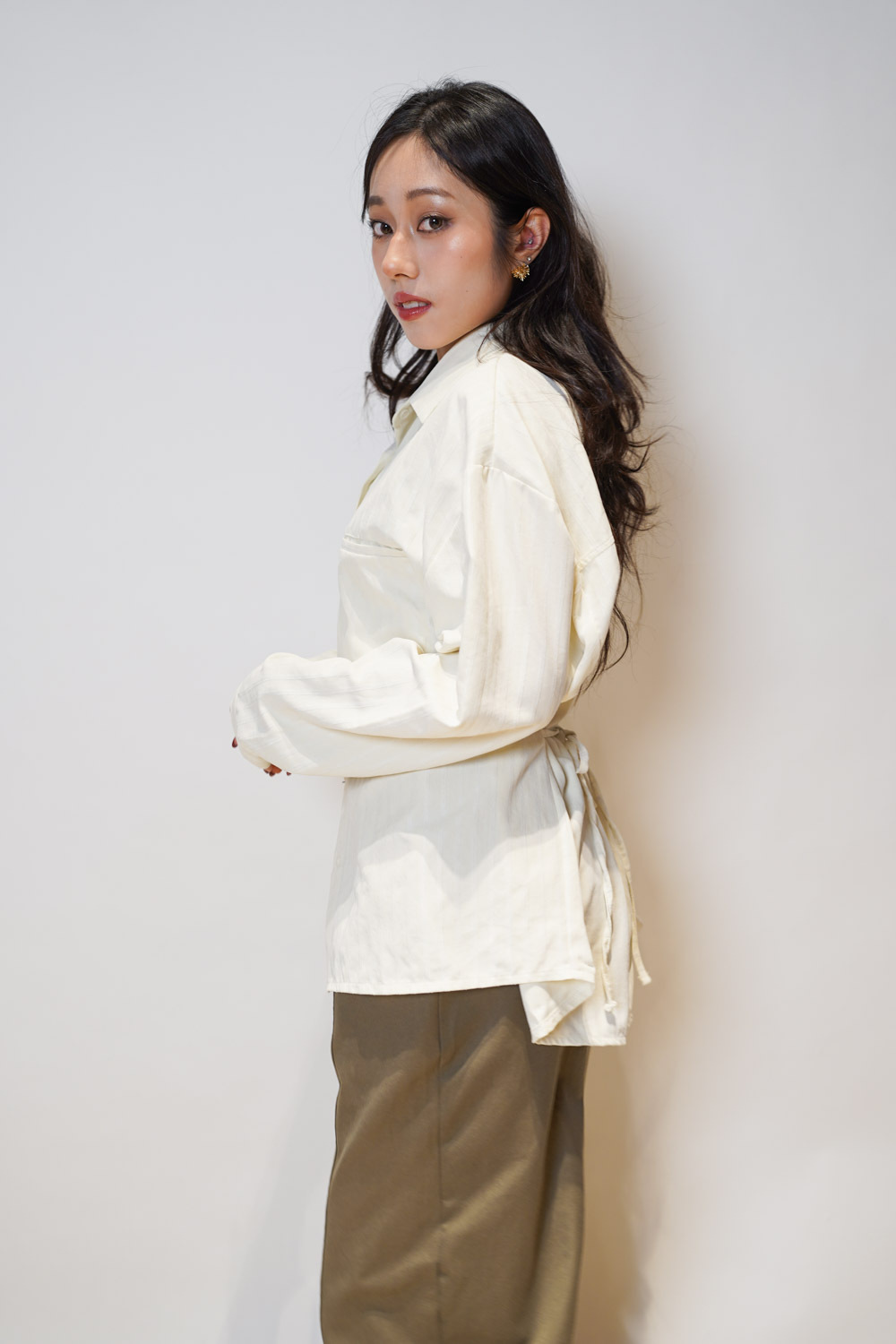 自帶同款布料細腰帶 可前後兩綁/輕鬆擁有腰線