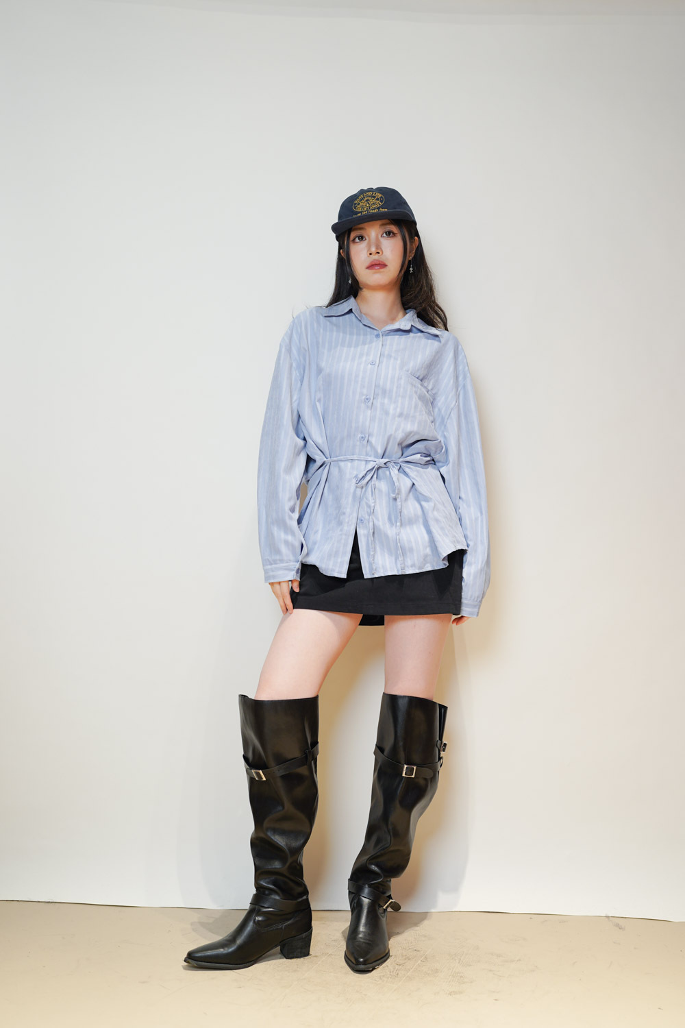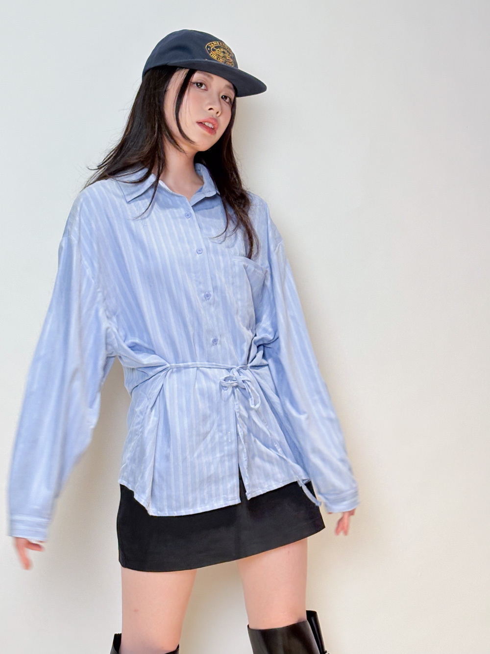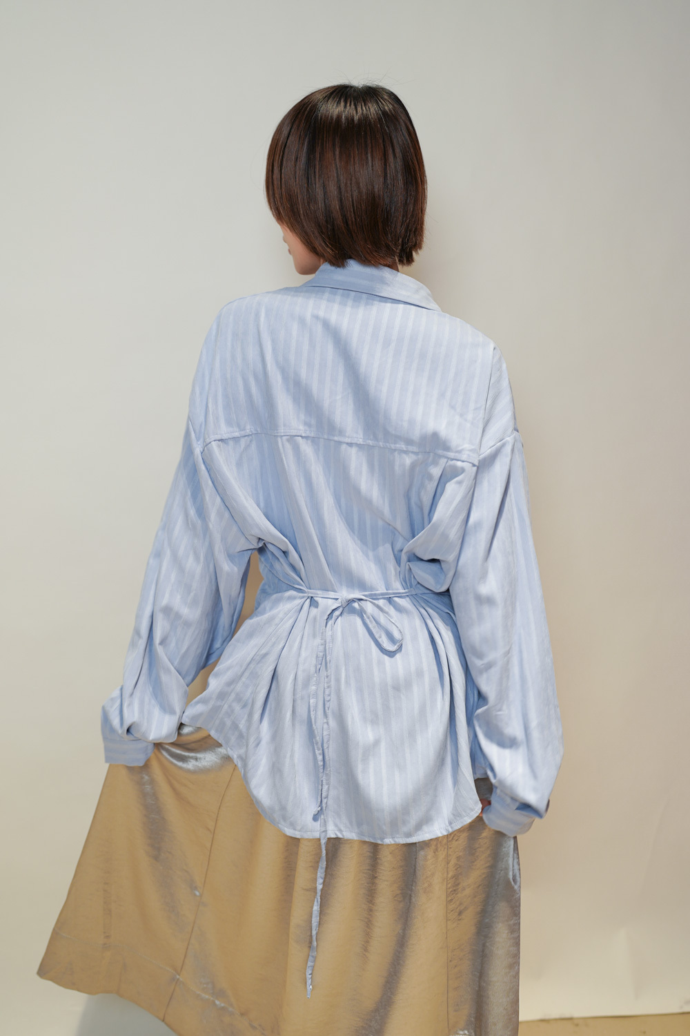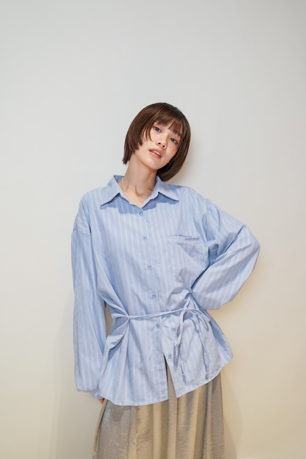 Hidden Striped shirt with waistband (BEIGE/ BLUE)