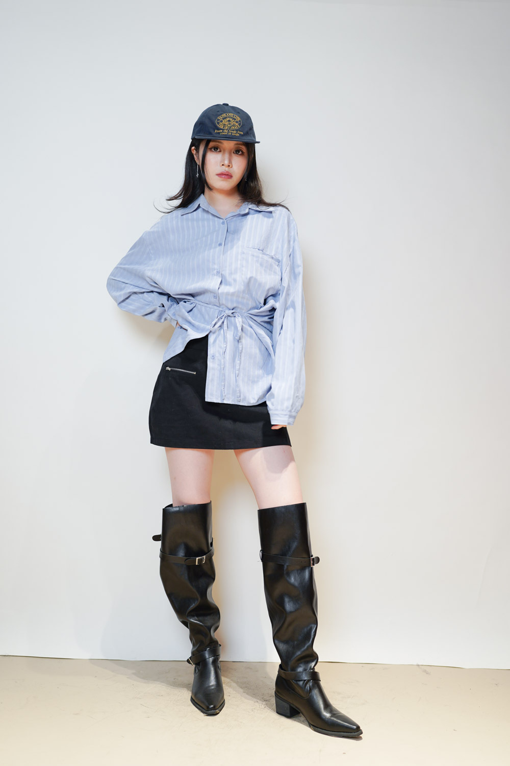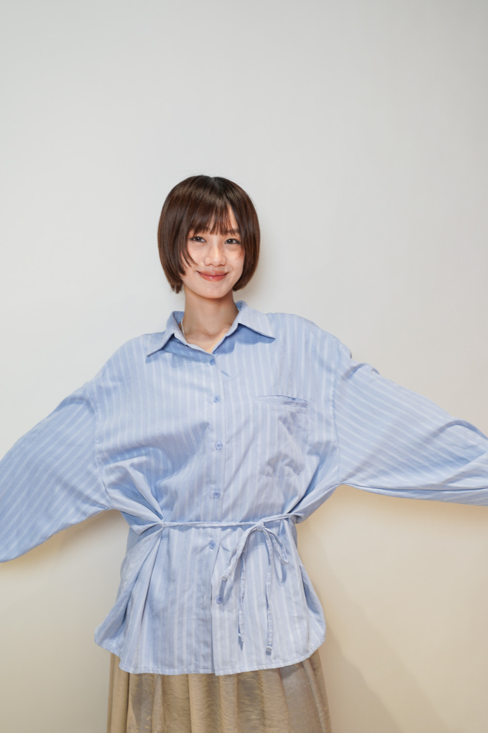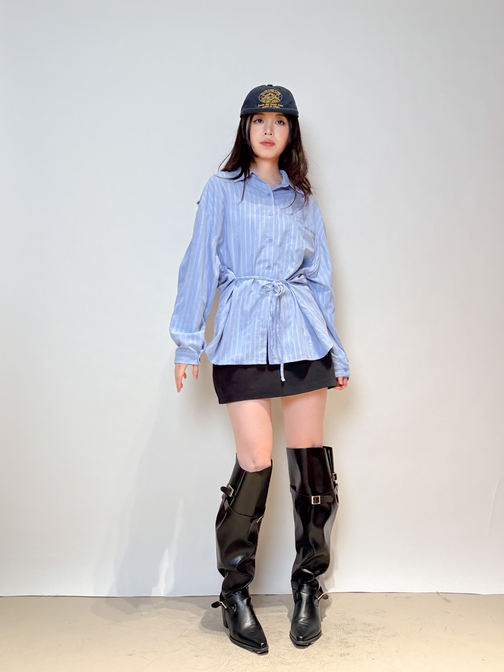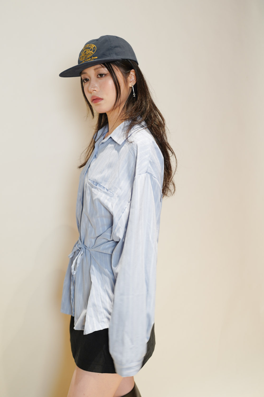 Hidden Striped shirt with waistband (BEIGE/ BLUE)