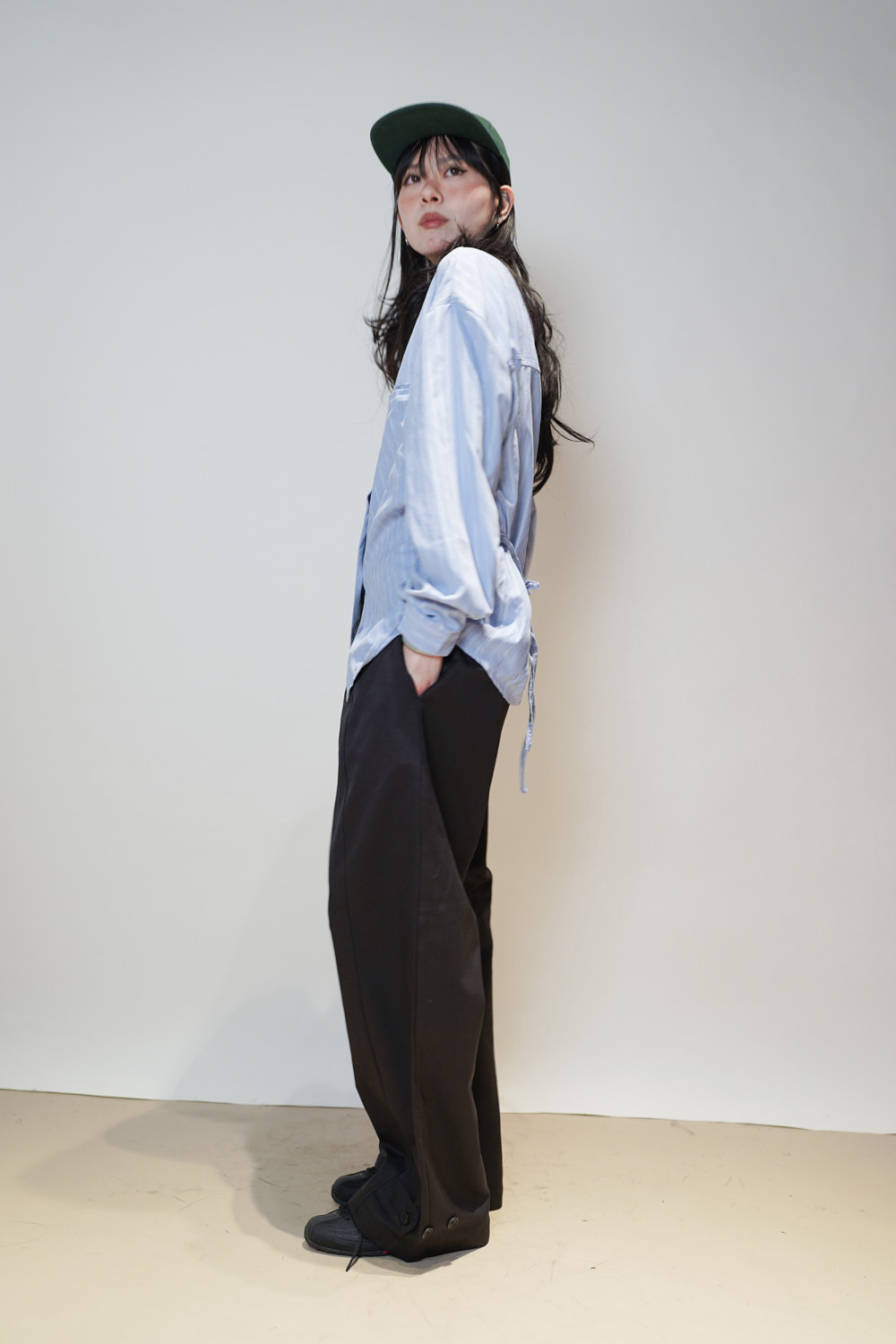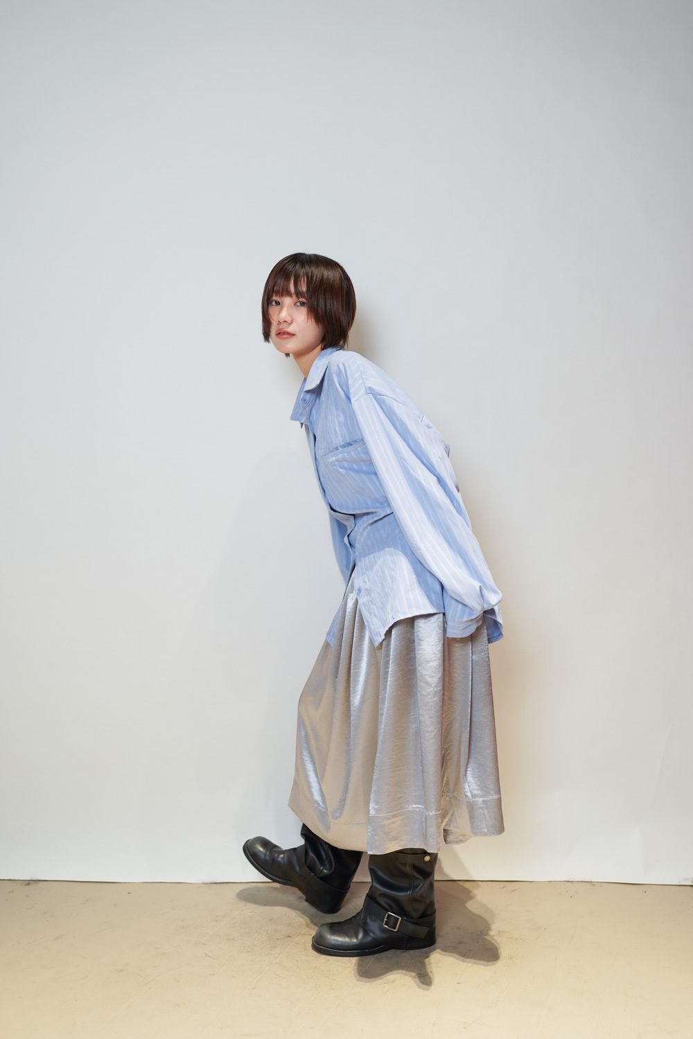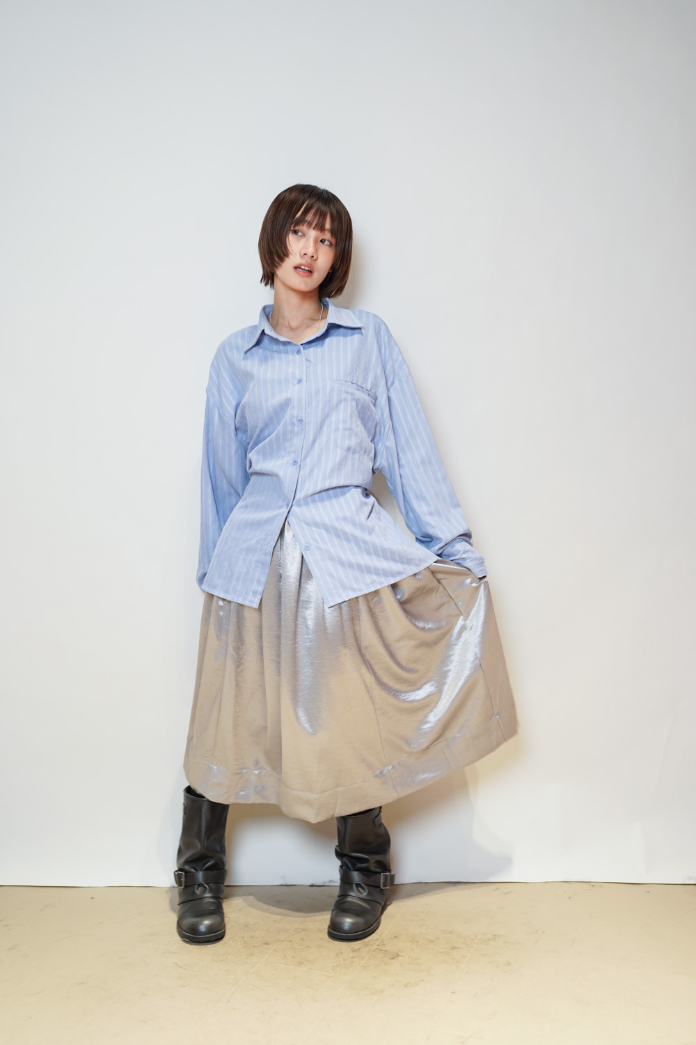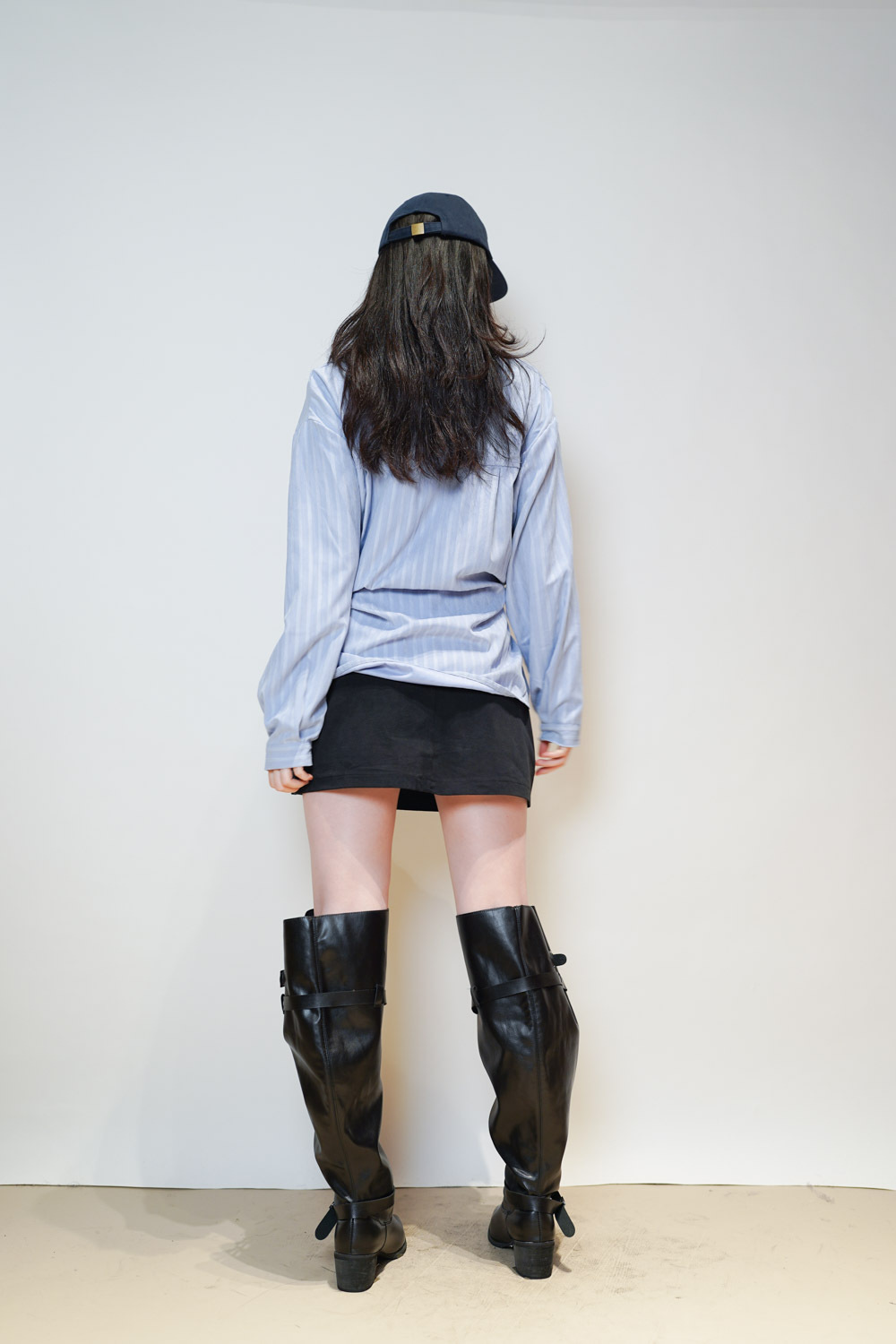 Hidden Striped shirt with waistband (BEIGE/ BLUE)