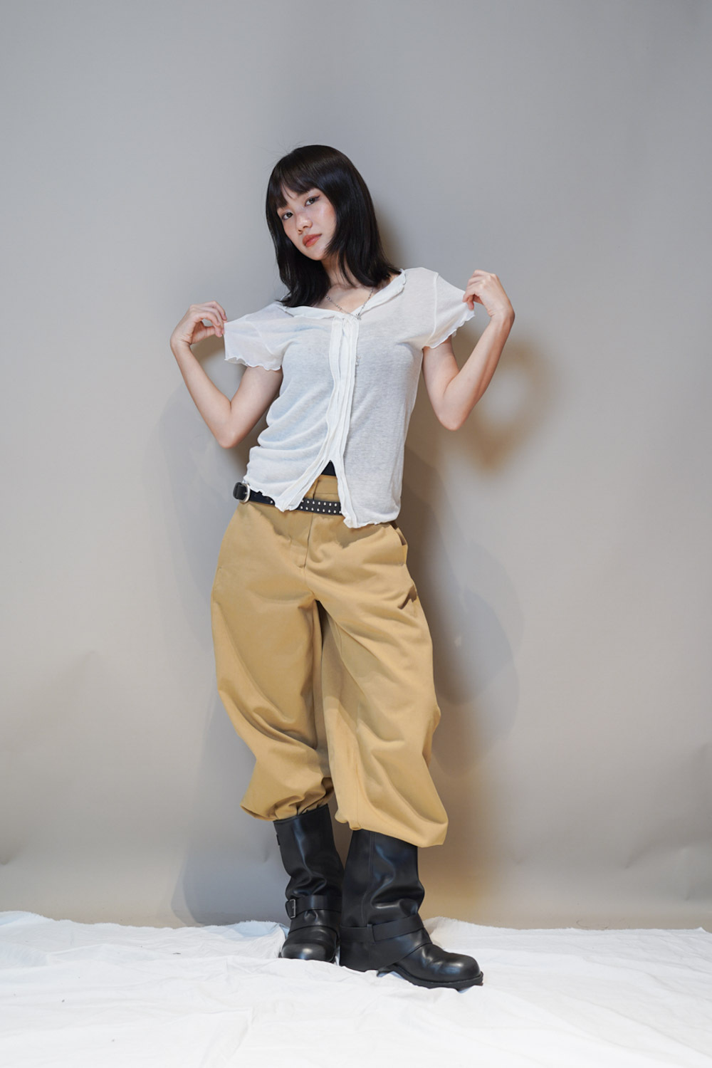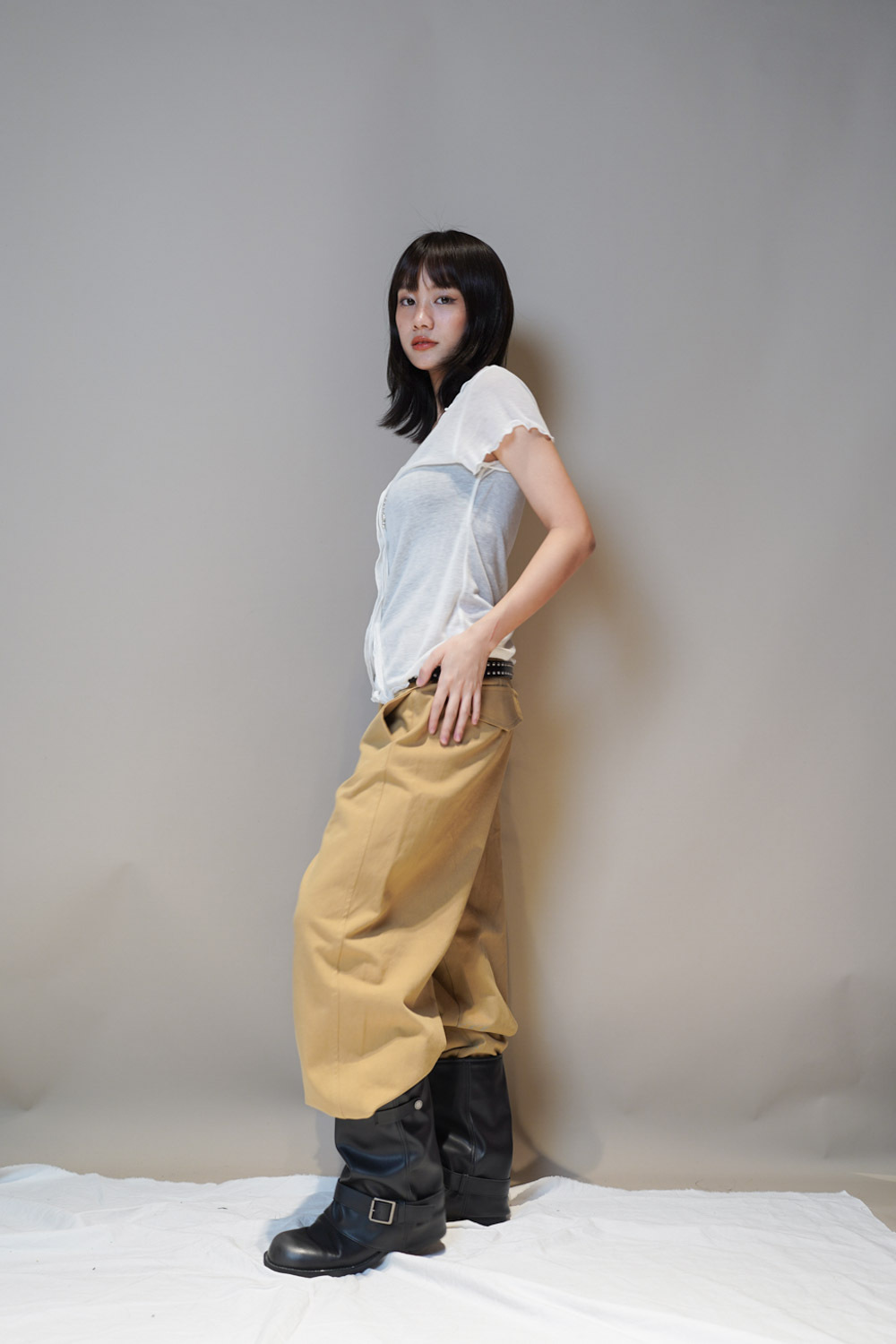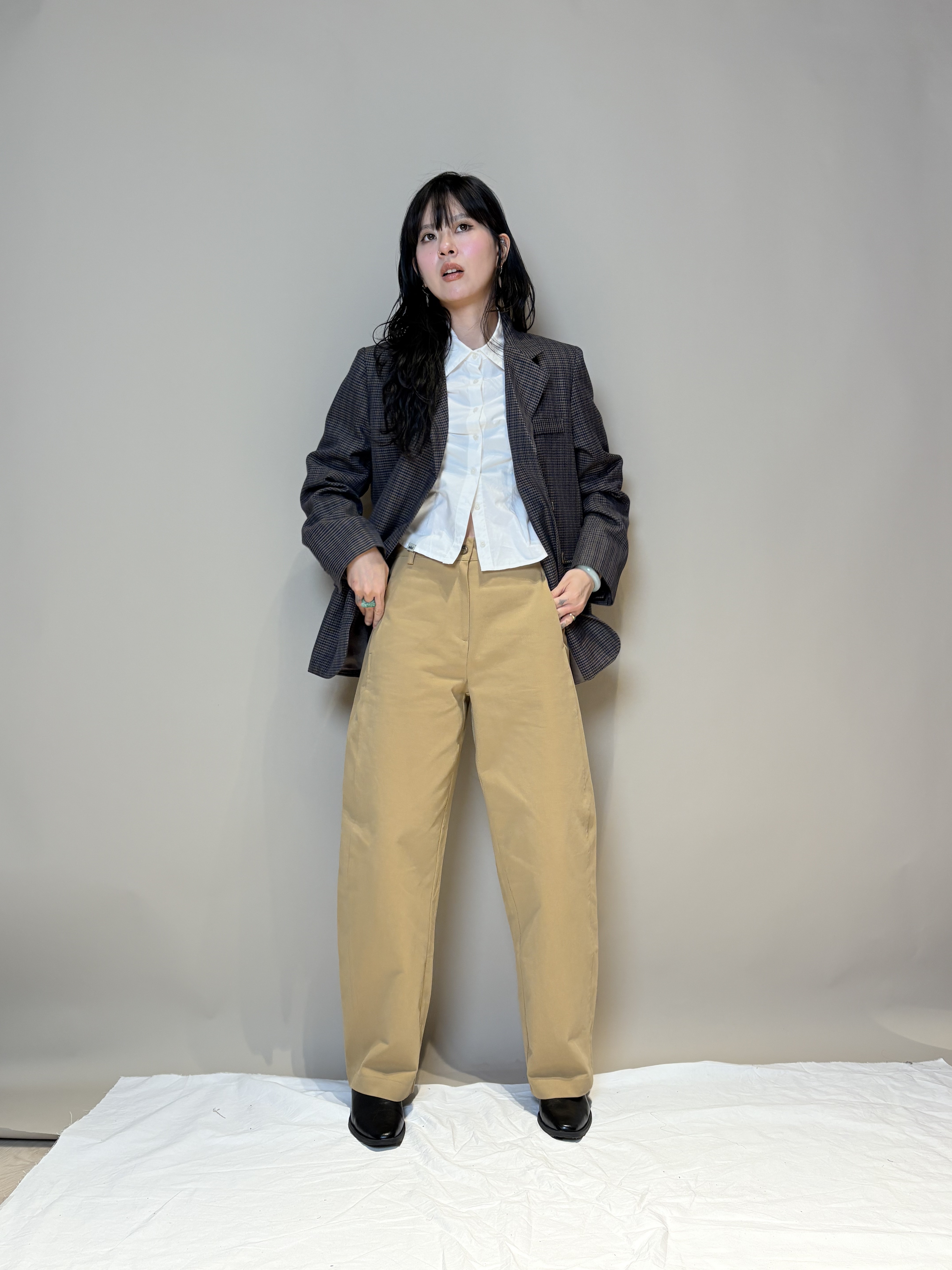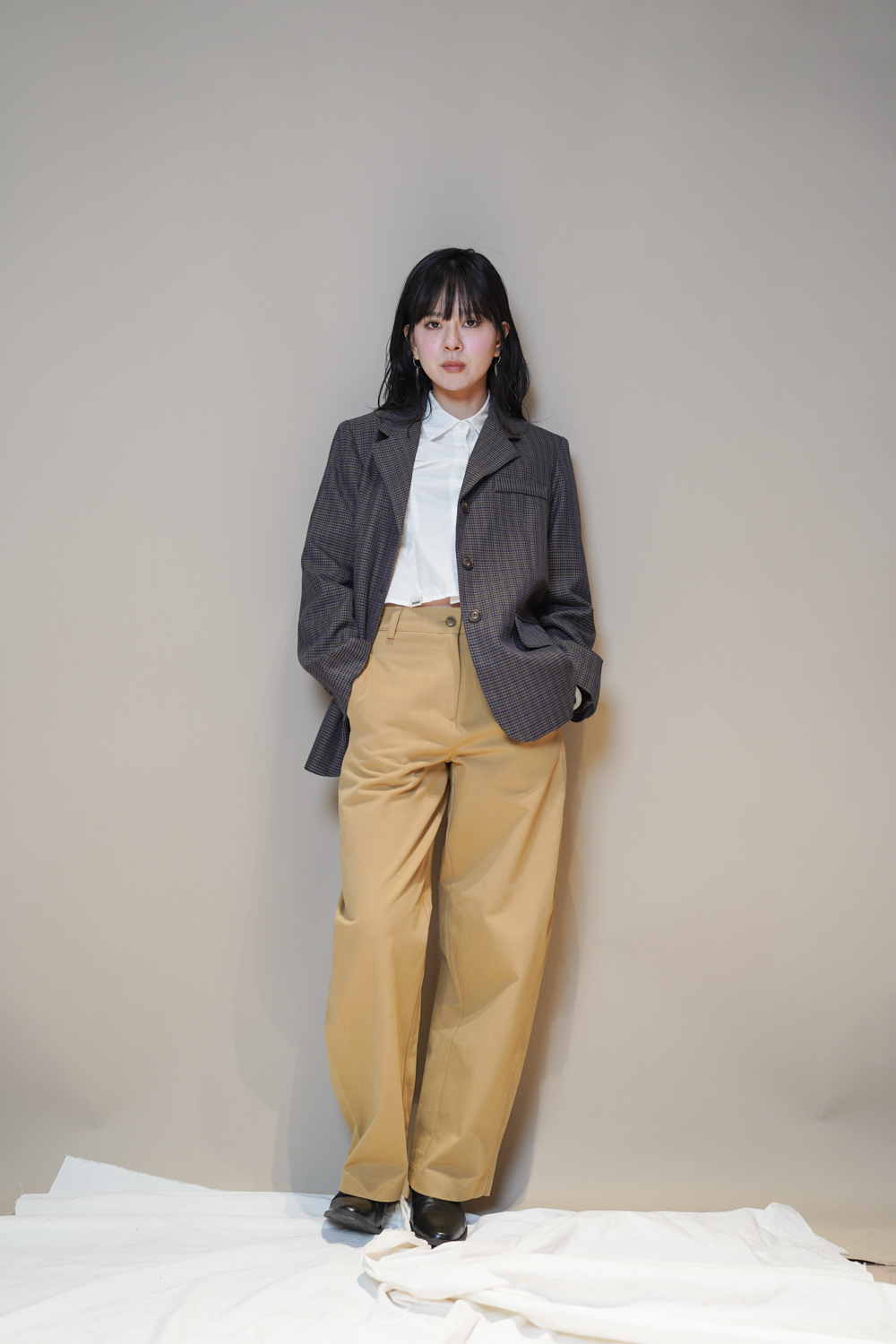 微膨膨的休閒感/微微收束的圓筒褲管 使下身比例更佳/