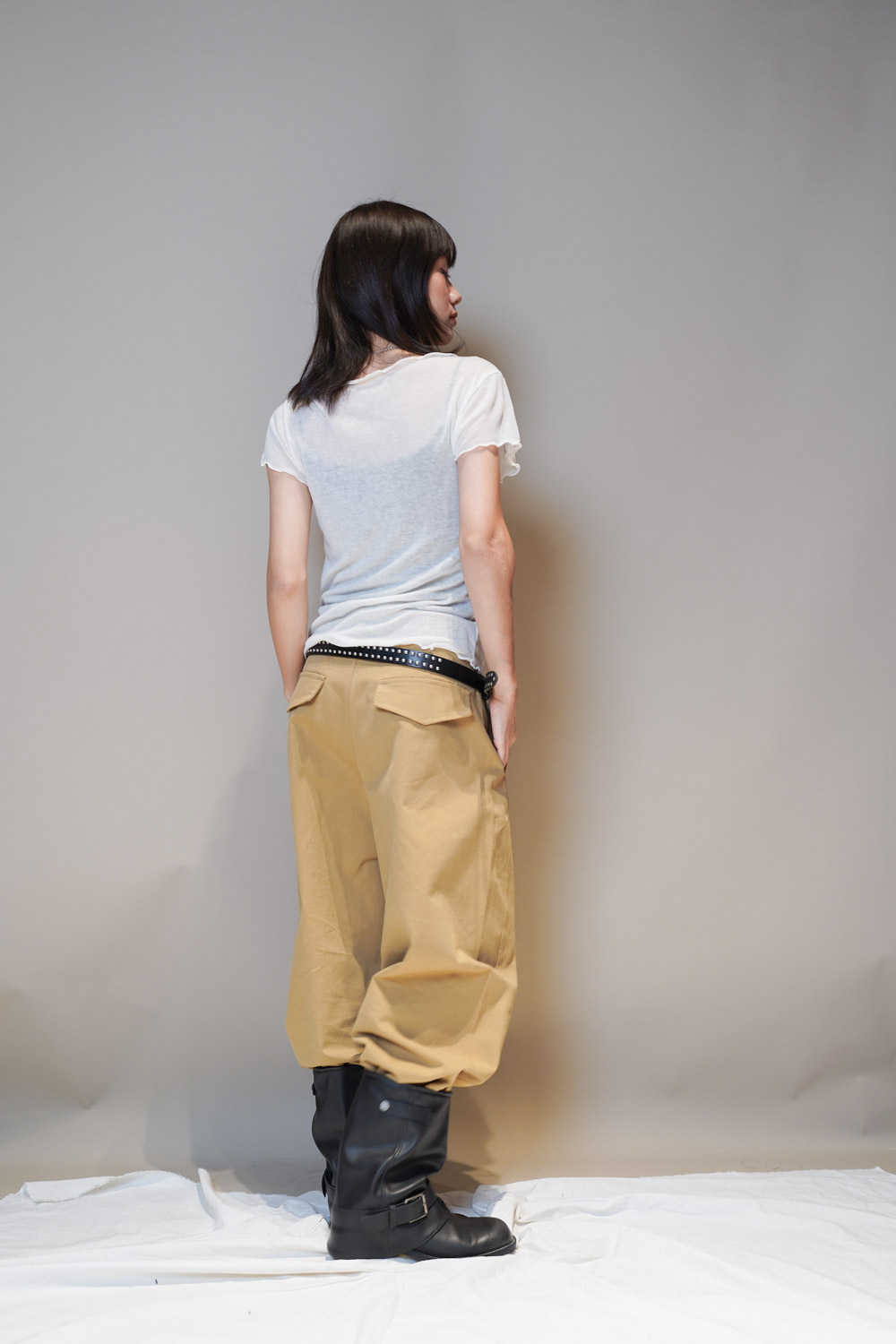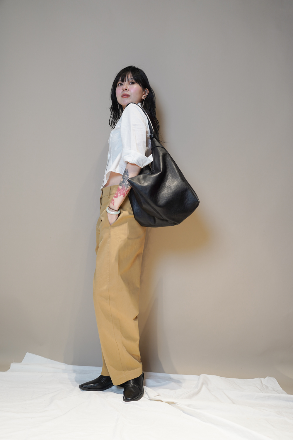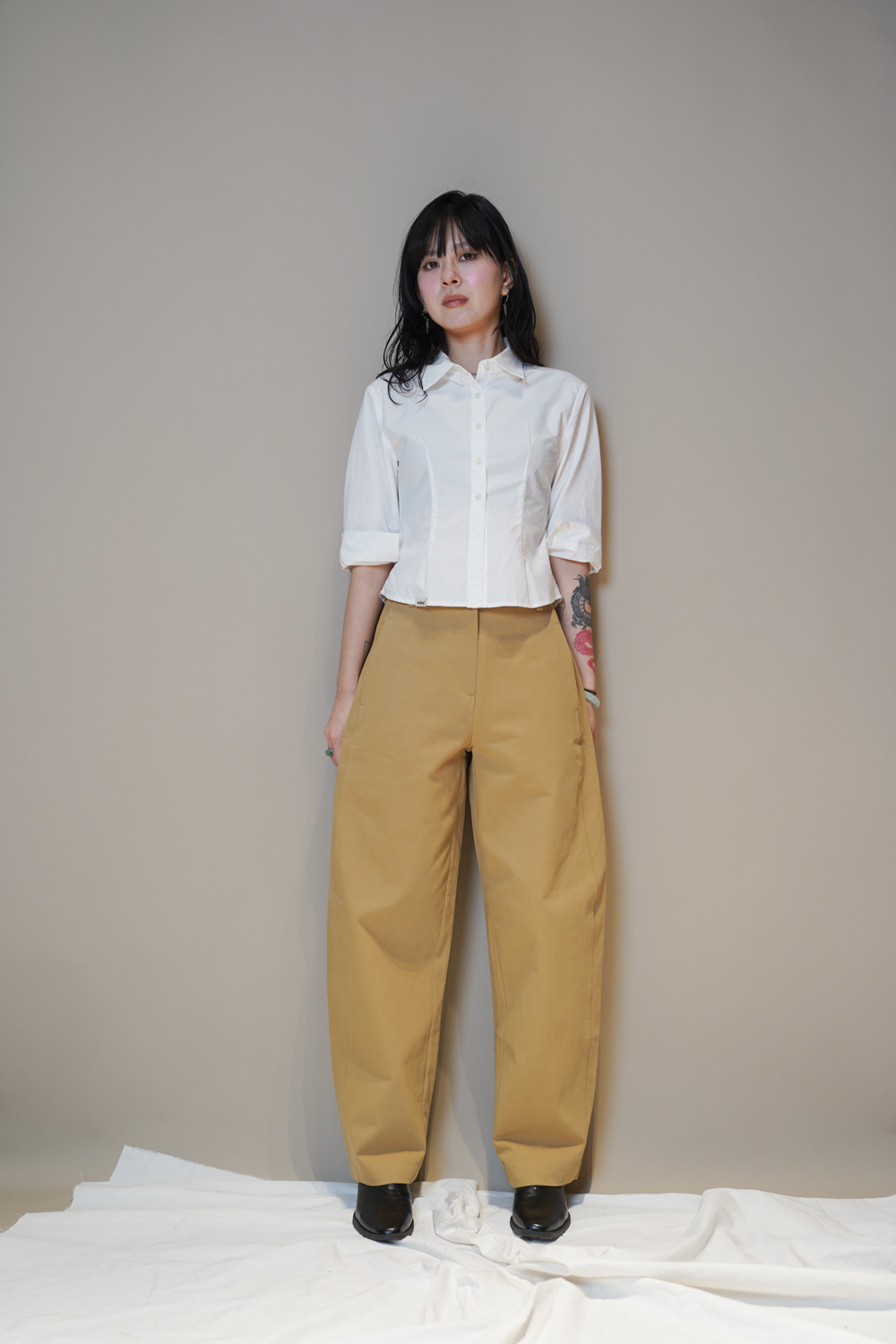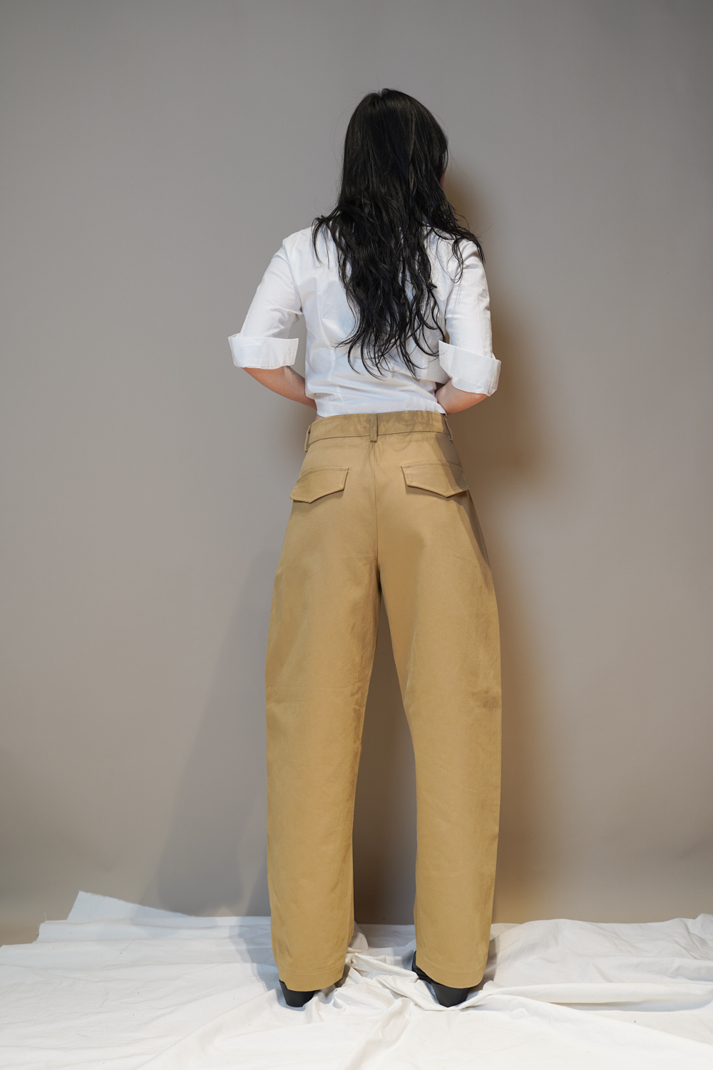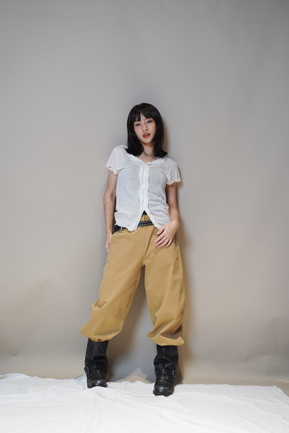 微膨膨的休閒感/微微收束的圓筒褲管 使下身比例更佳/