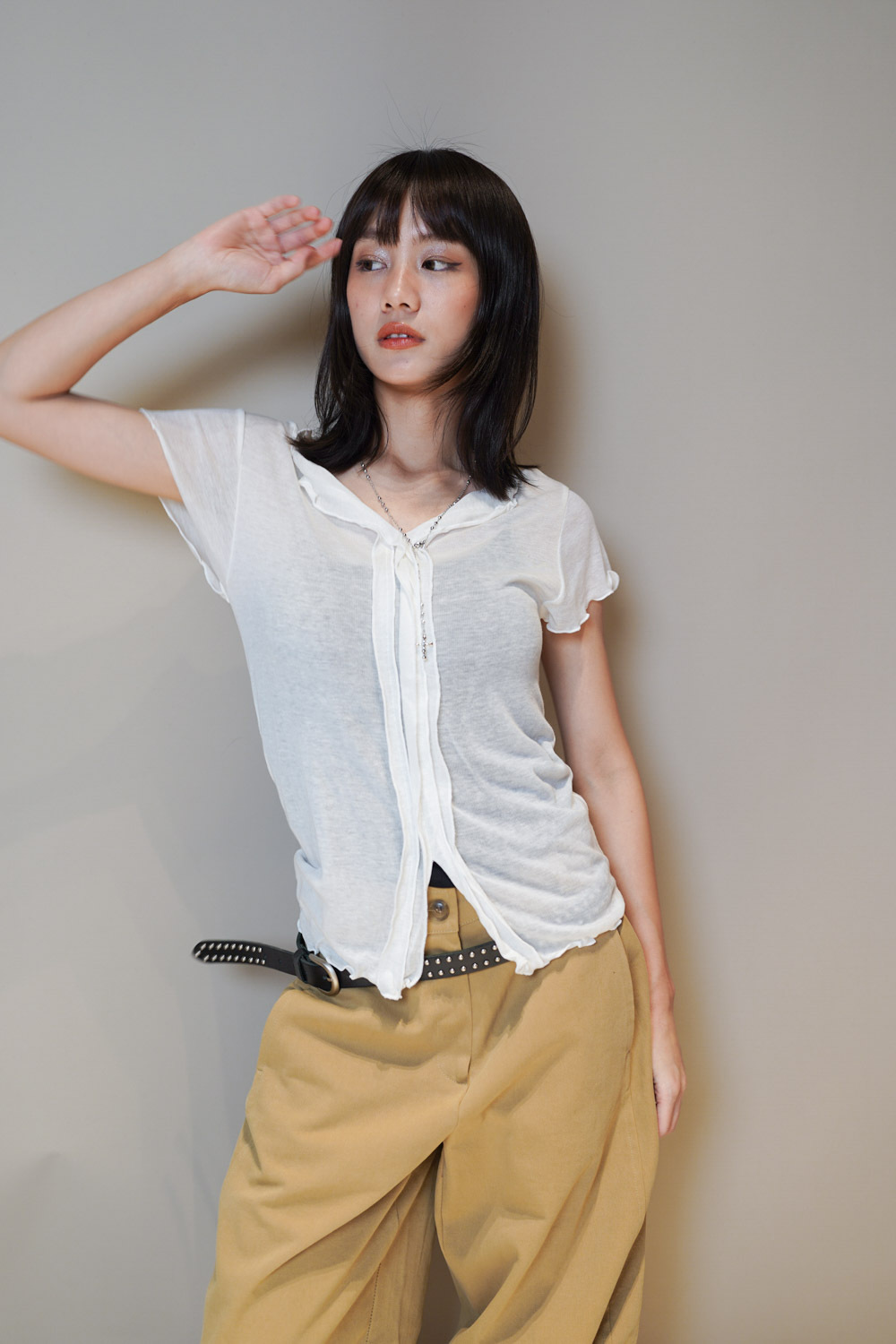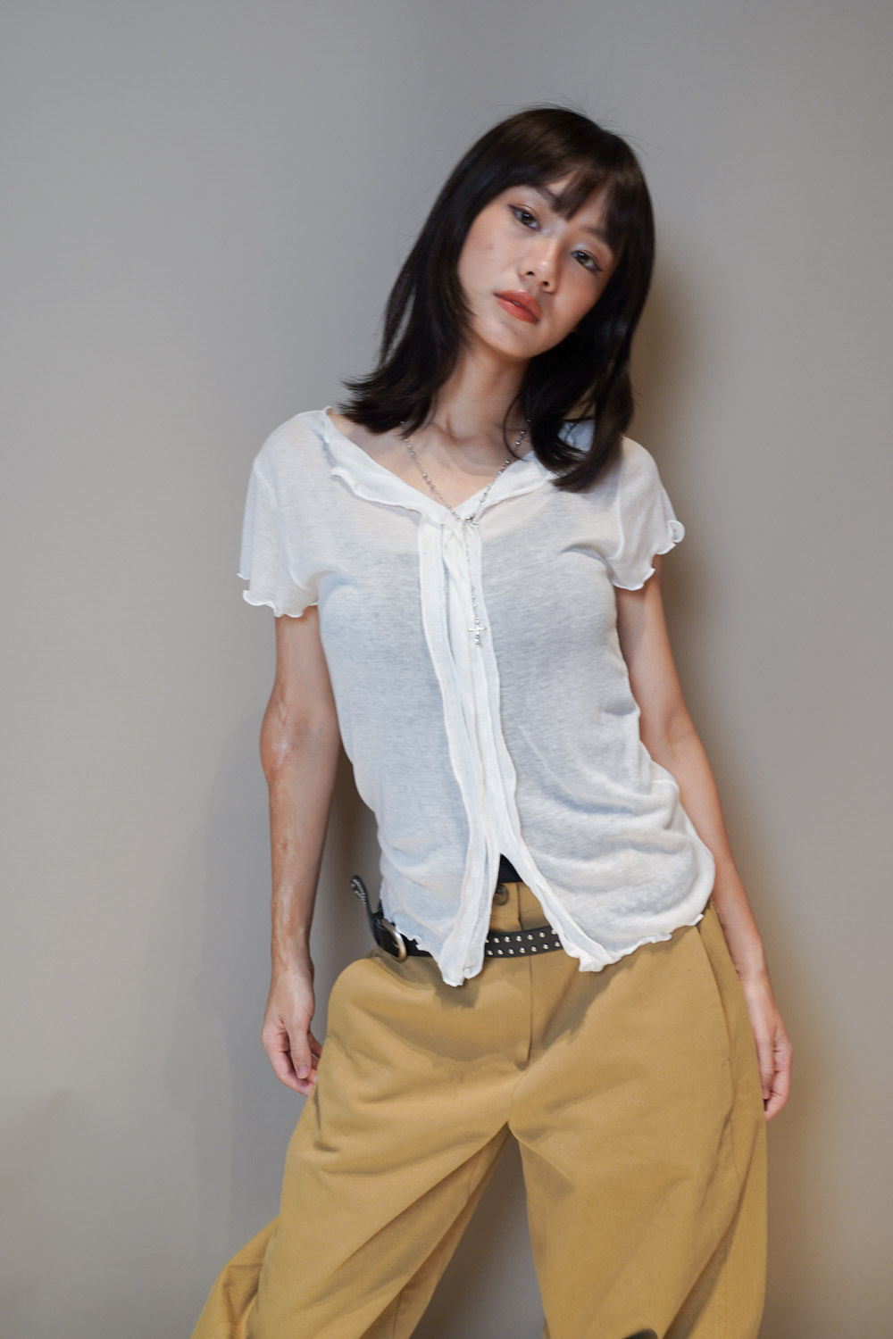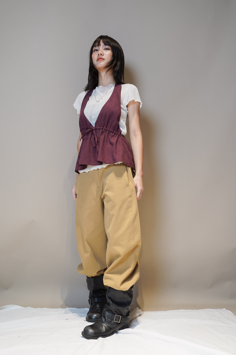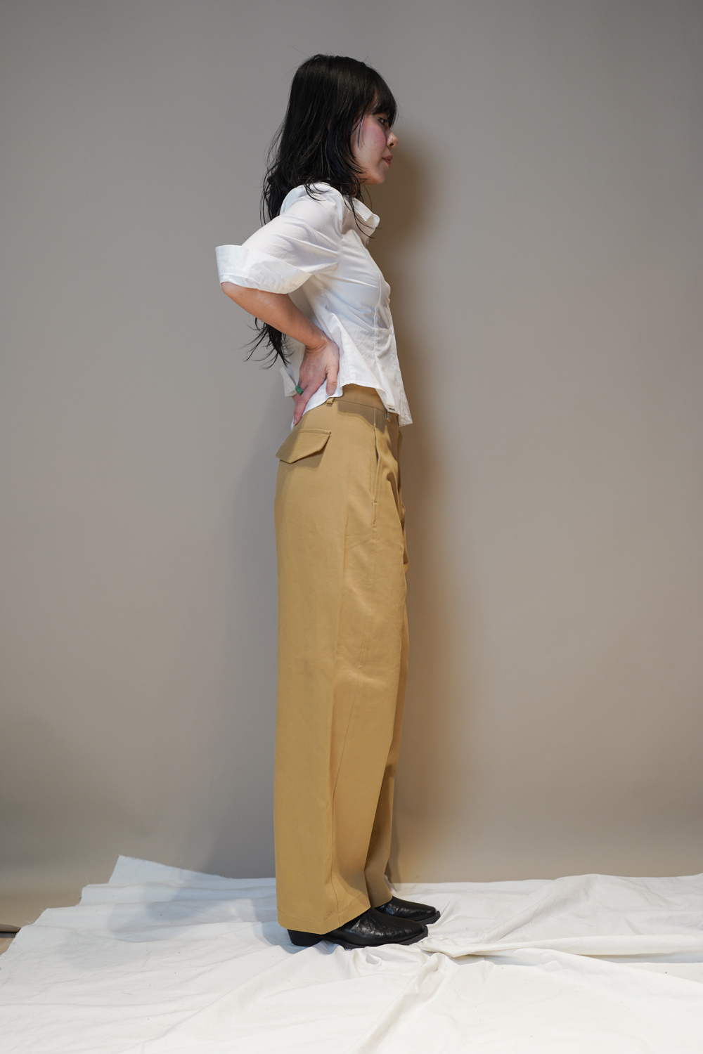 微膨膨的休閒感/微微收束的圓筒褲管 使下身比例更佳/