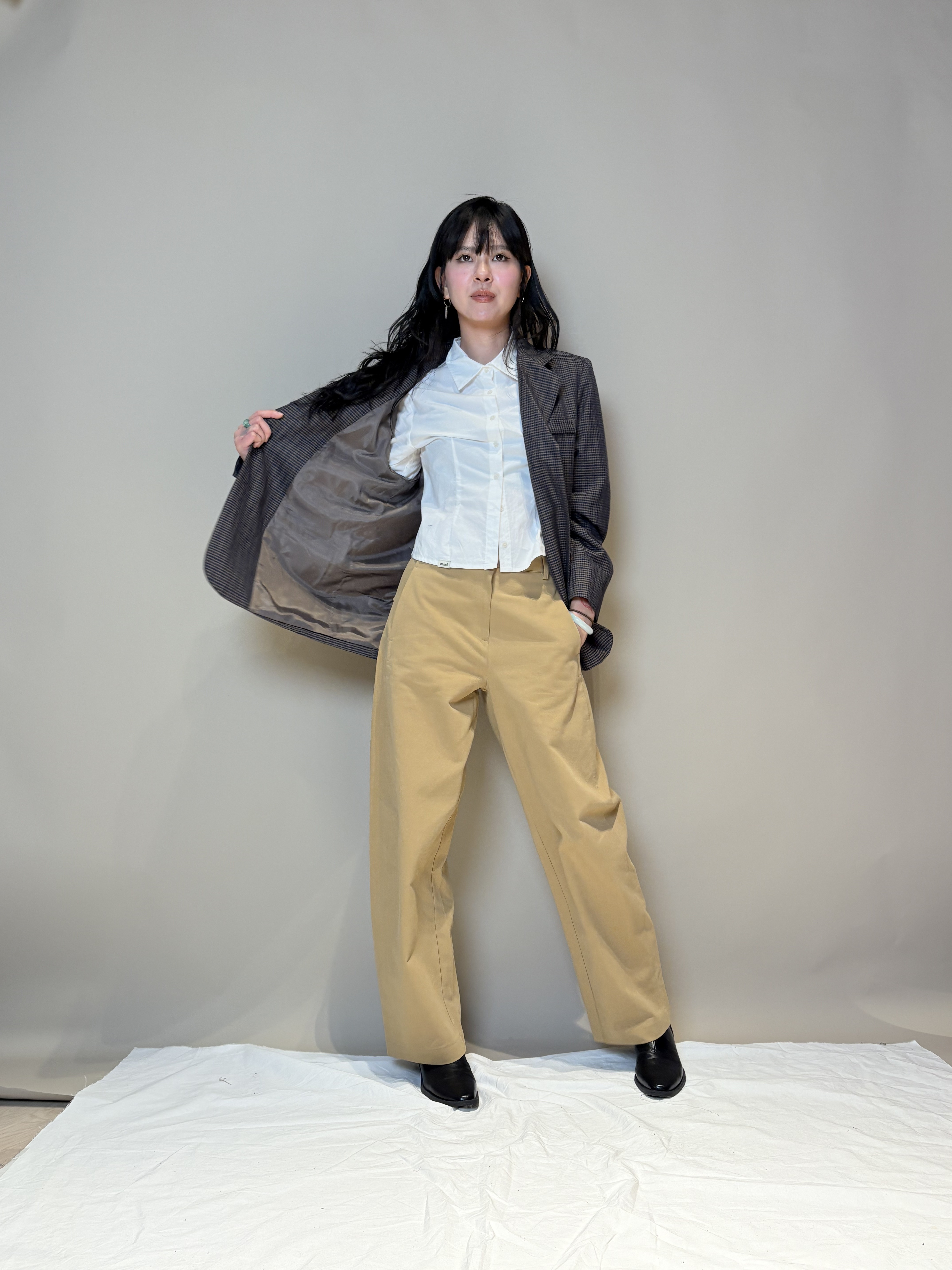 High waisted carrot pants (BEIGE/NAVY) - S/M