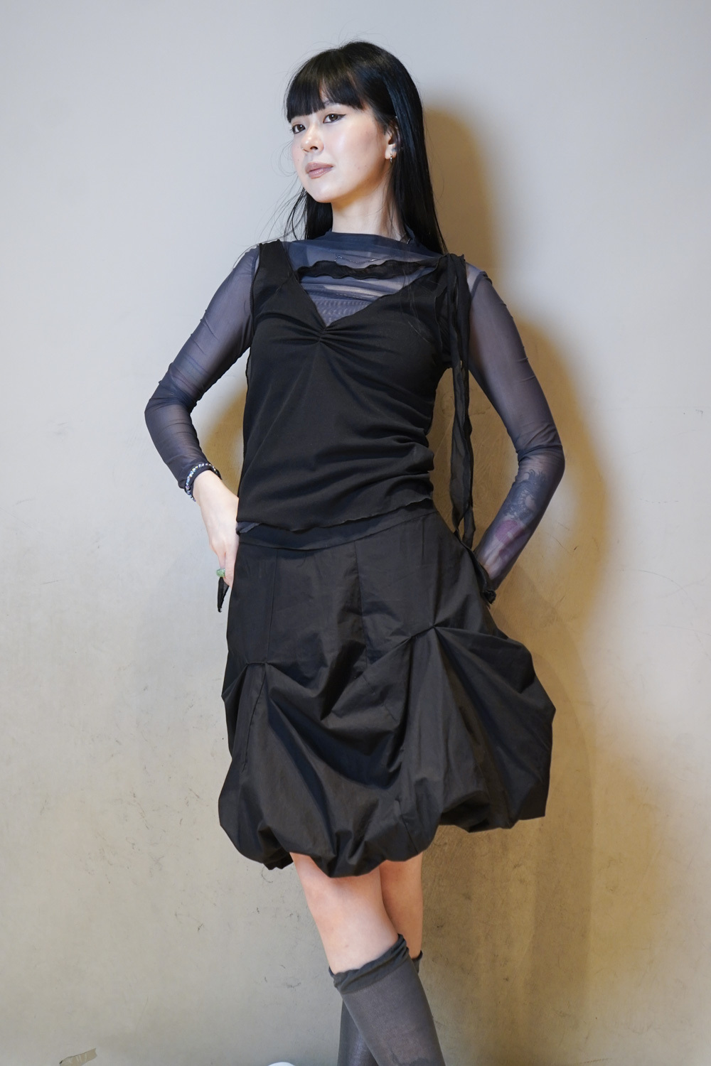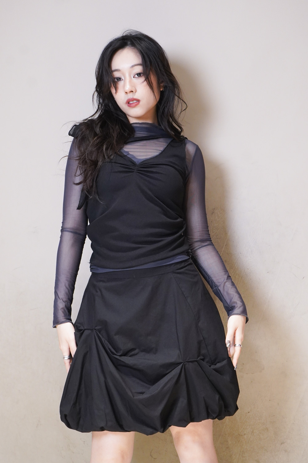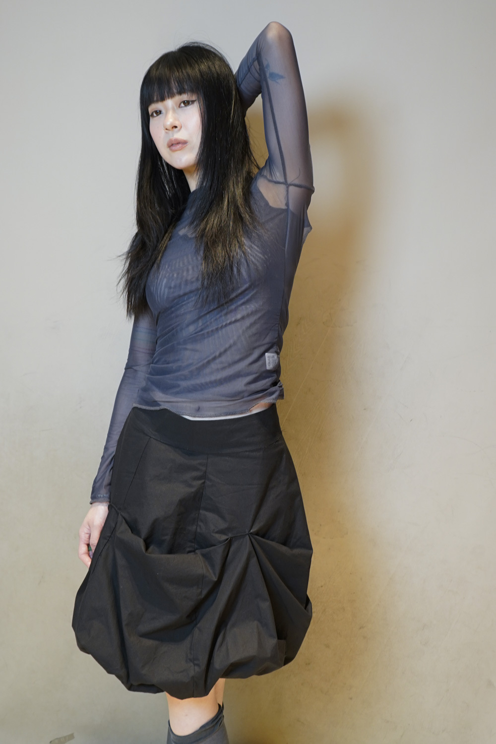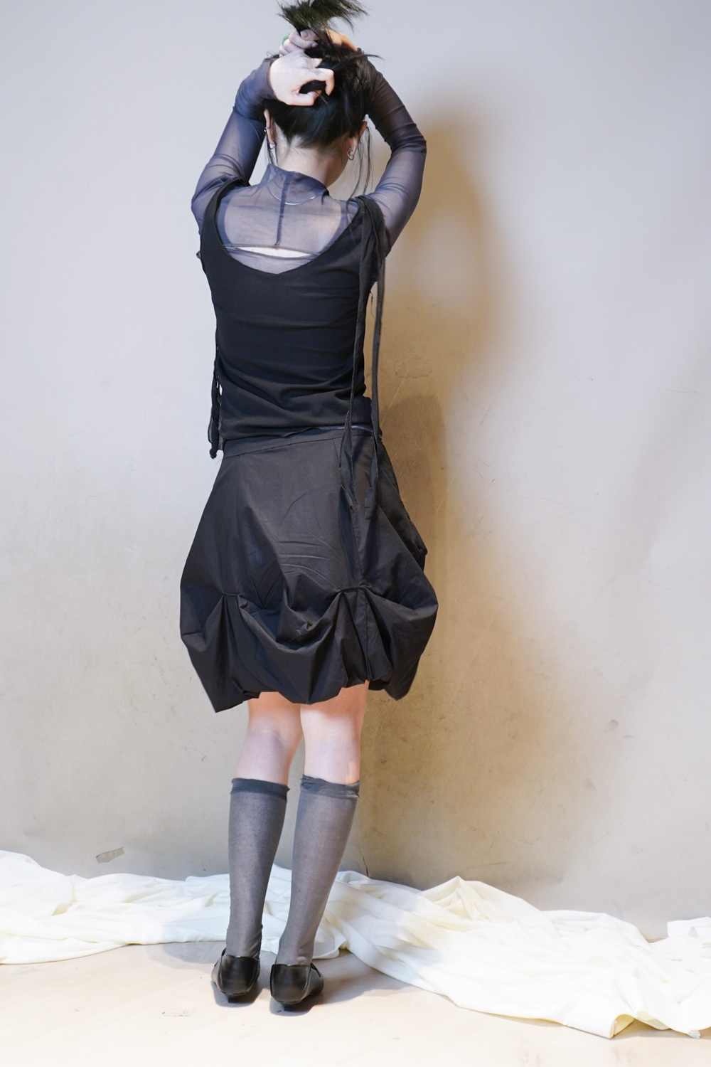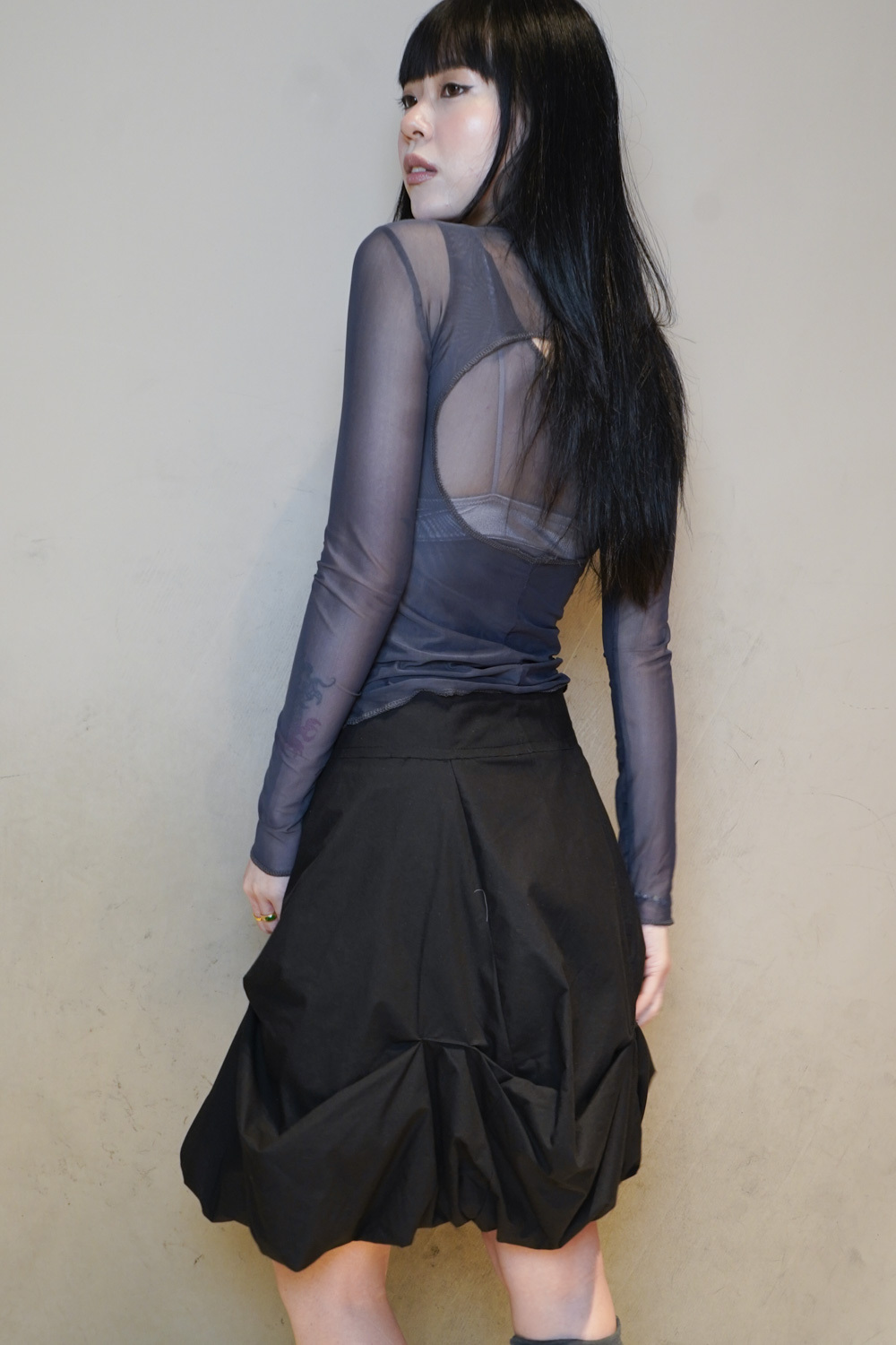 S:Waist: 70cm (27.5”) / Hip: 110cm (43”) / Length: 51cm / Hem: 80-144cm