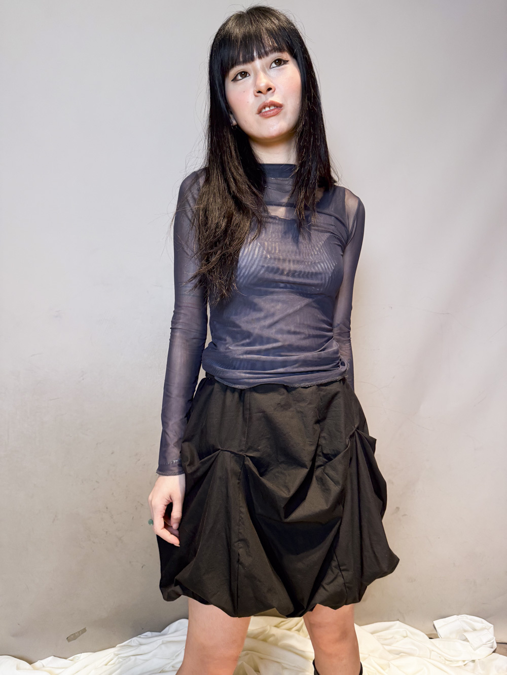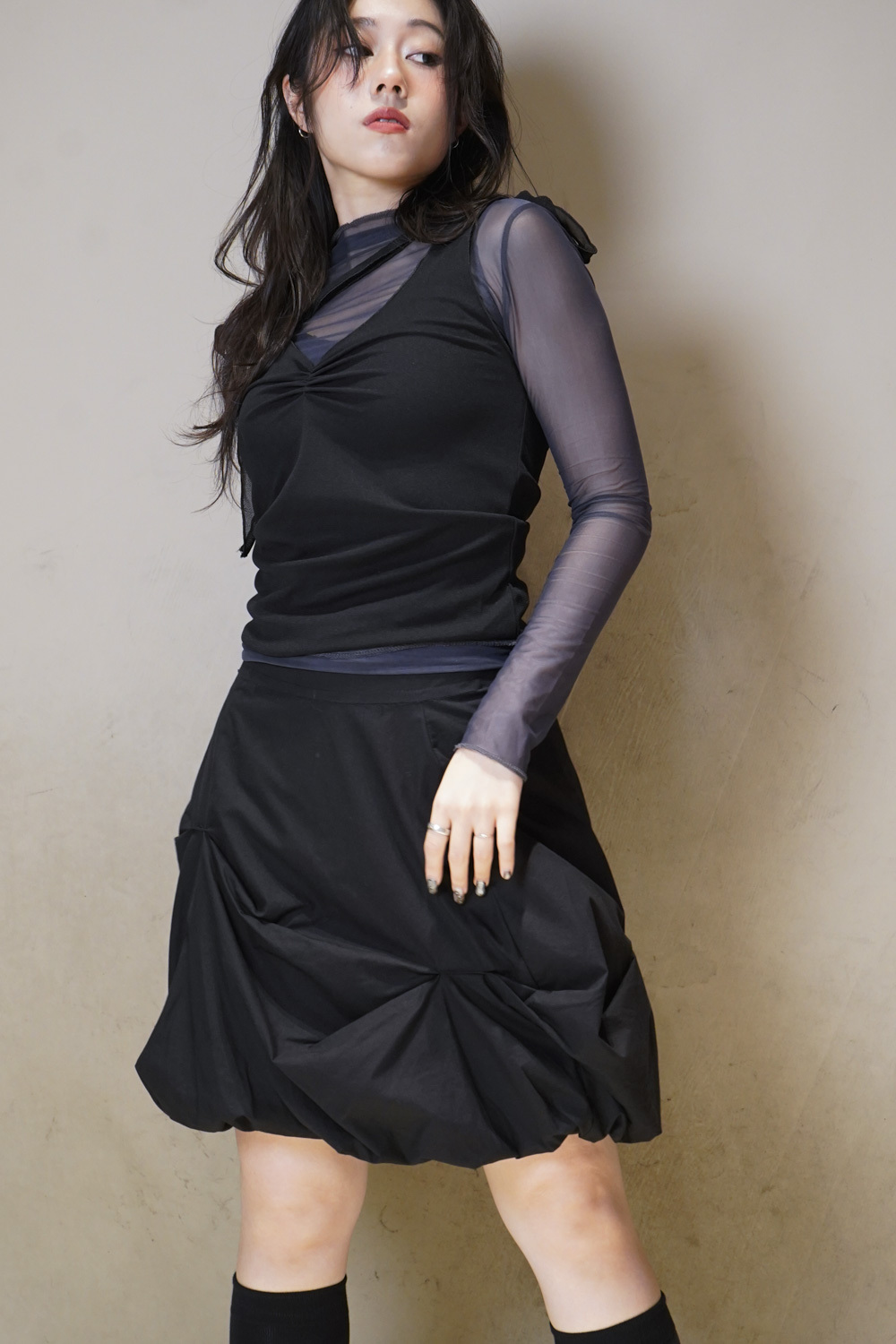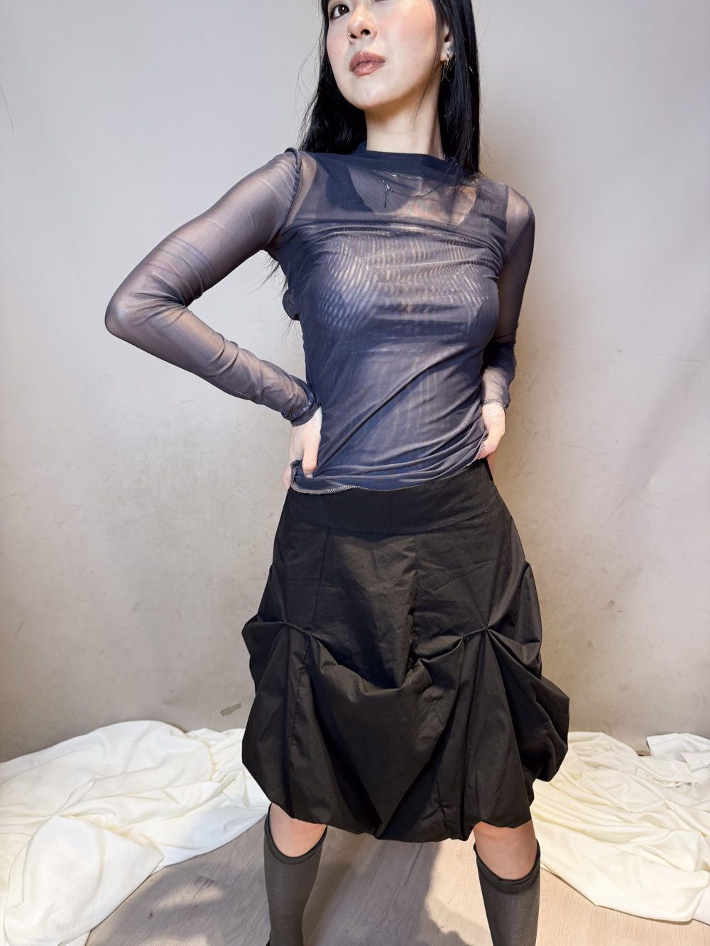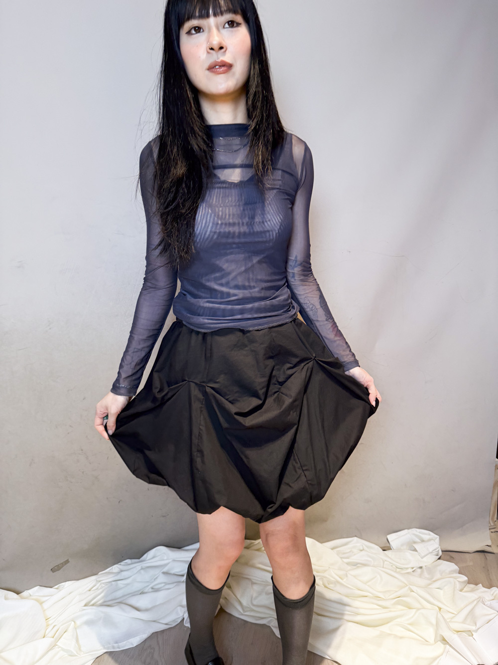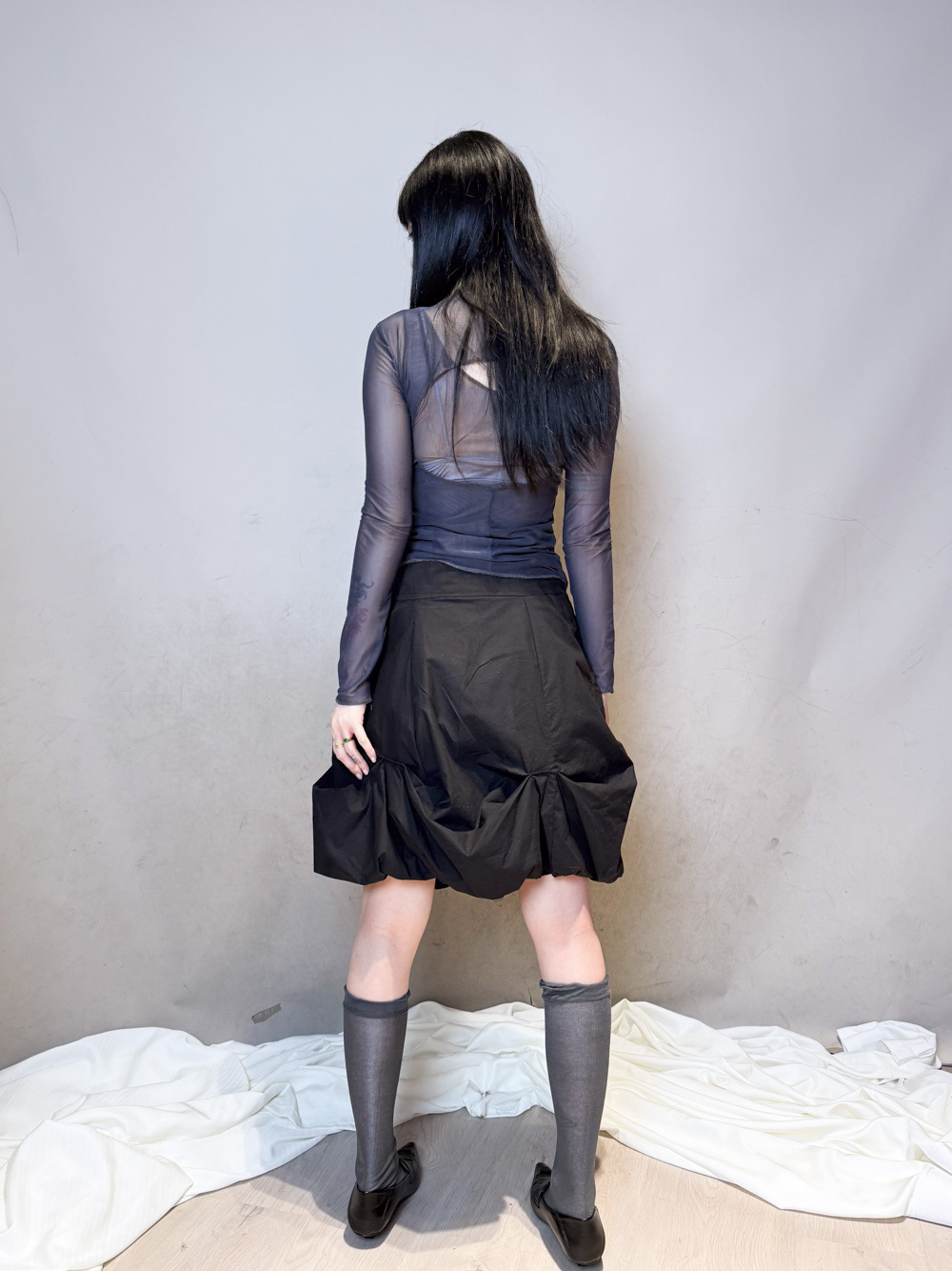 S:Waist: 70cm (27.5”) / Hip: 110cm (43”) / Length: 51cm / Hem: 80-144cm