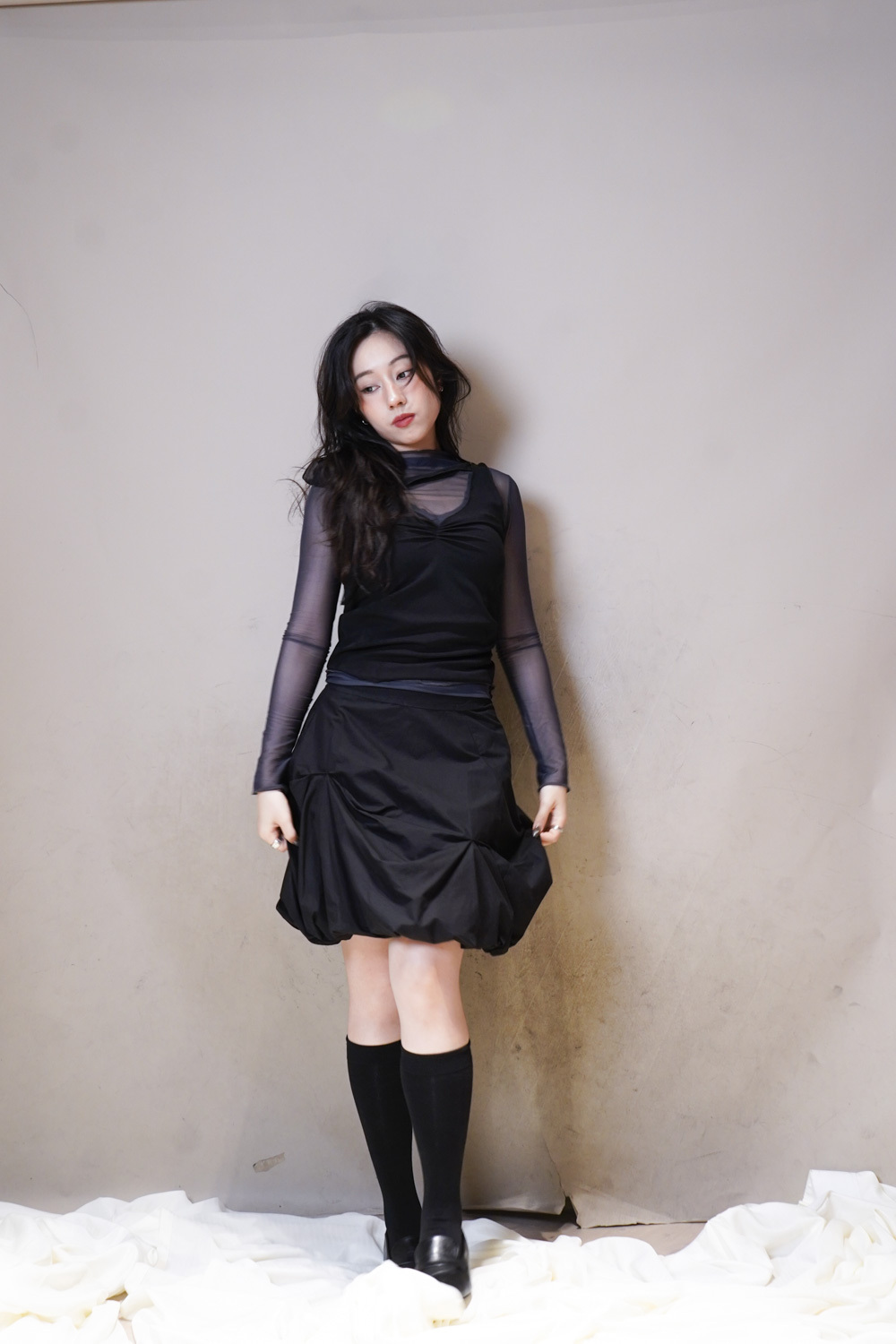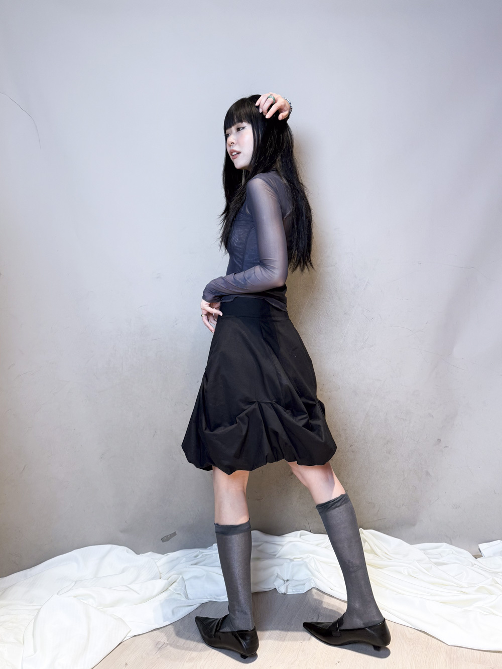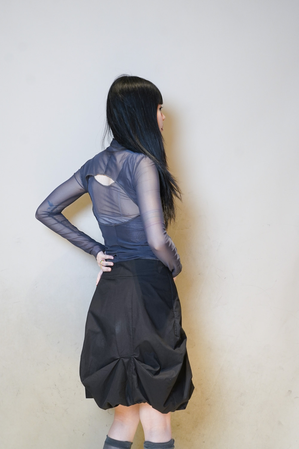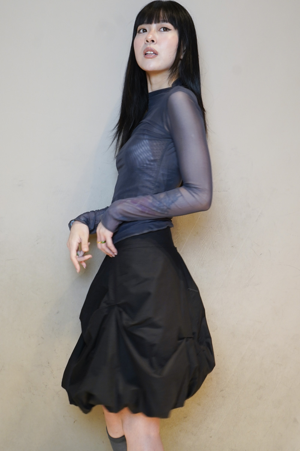 S:Waist: 70cm (27.5”) / Hip: 110cm (43”) / Length: 51cm / Hem: 80-144cm