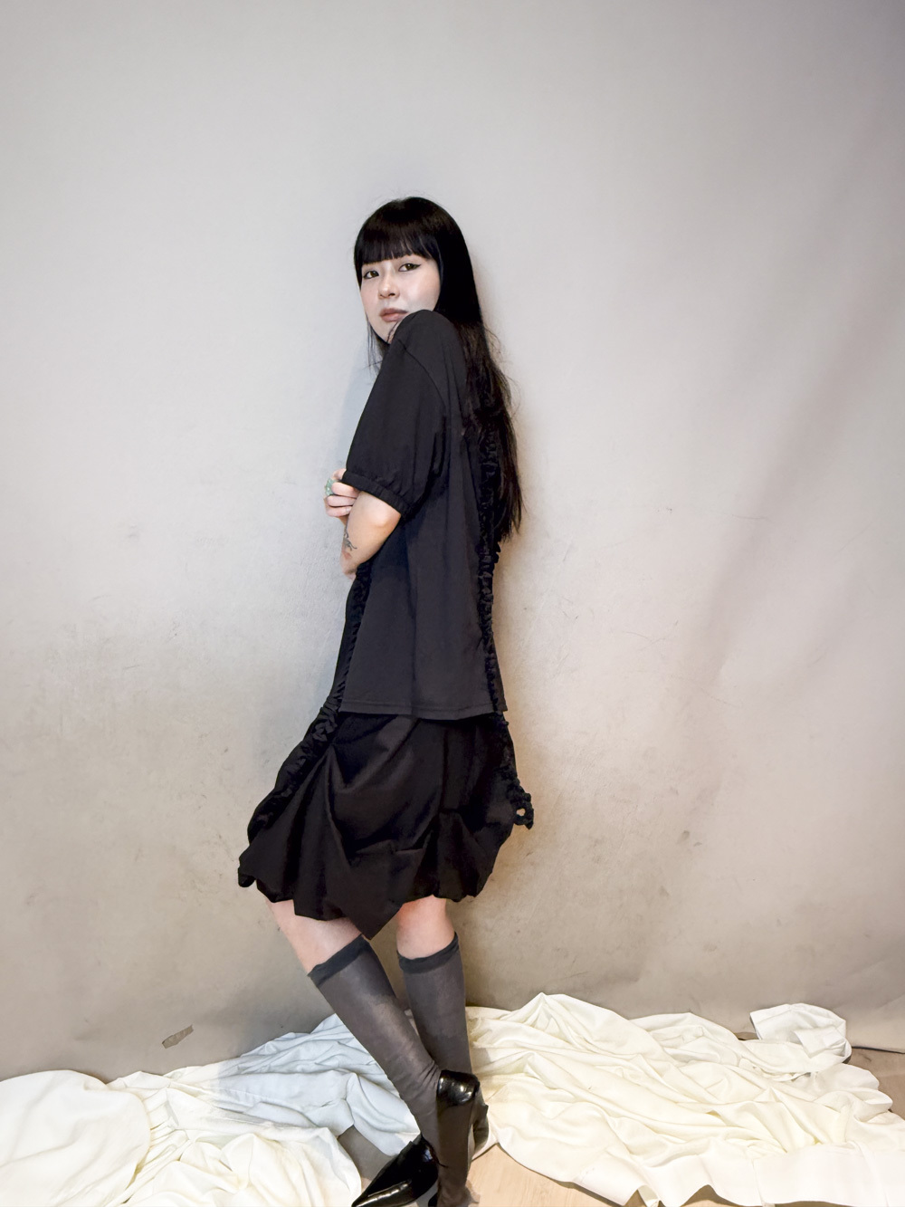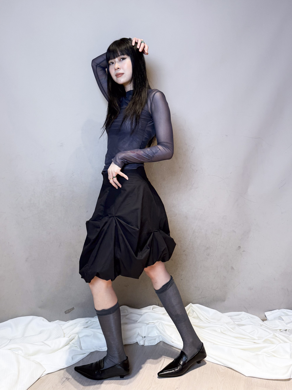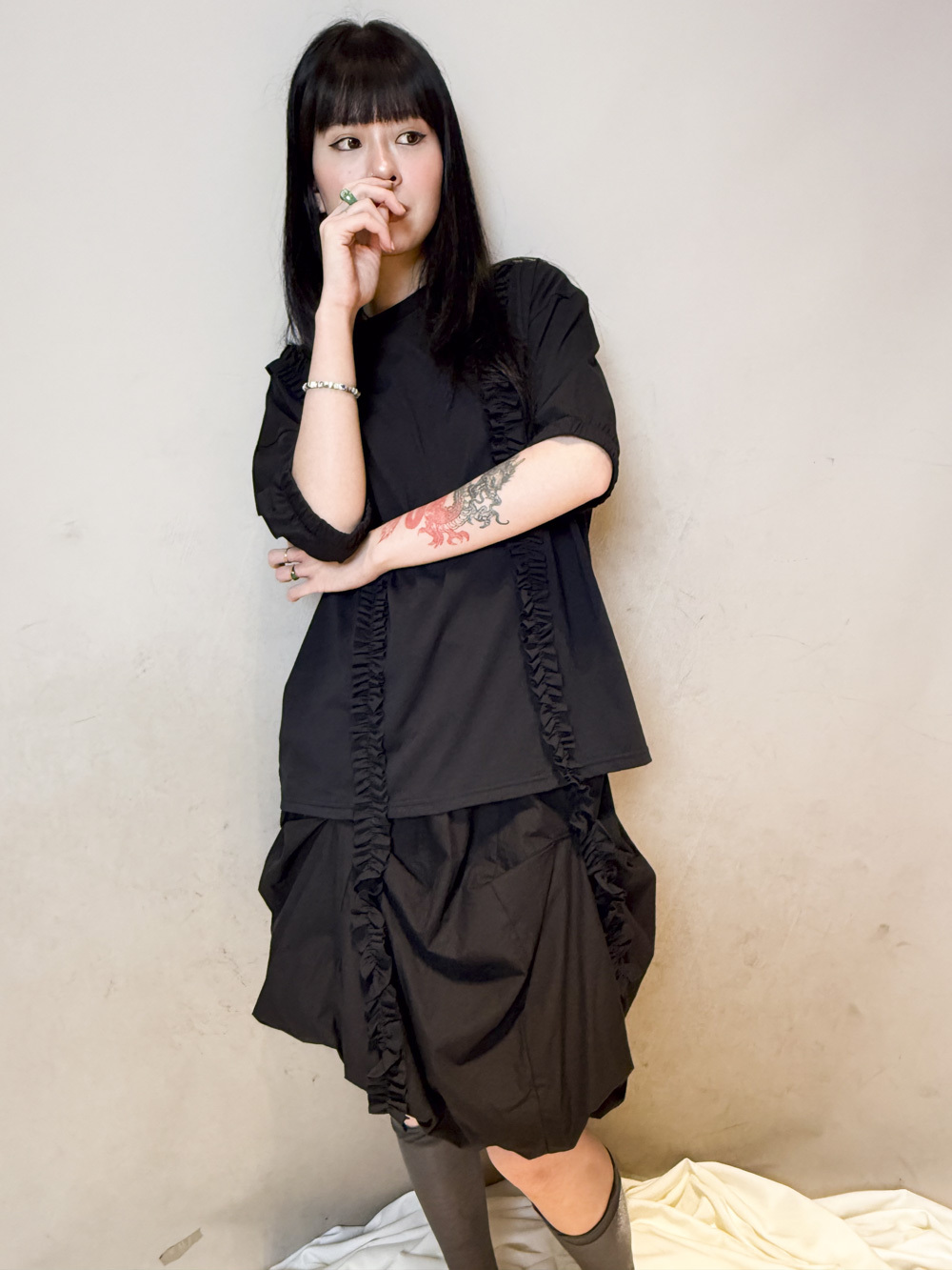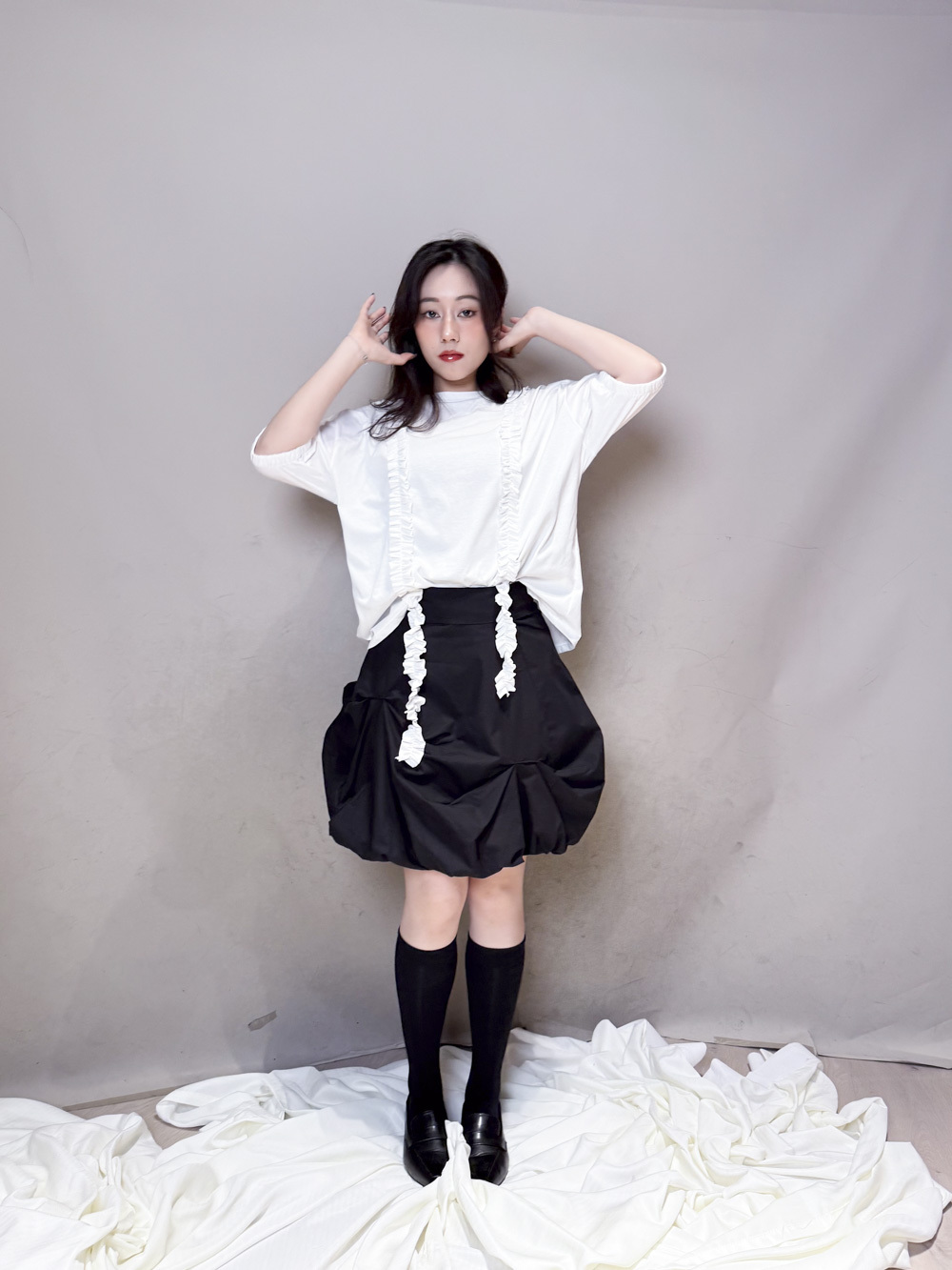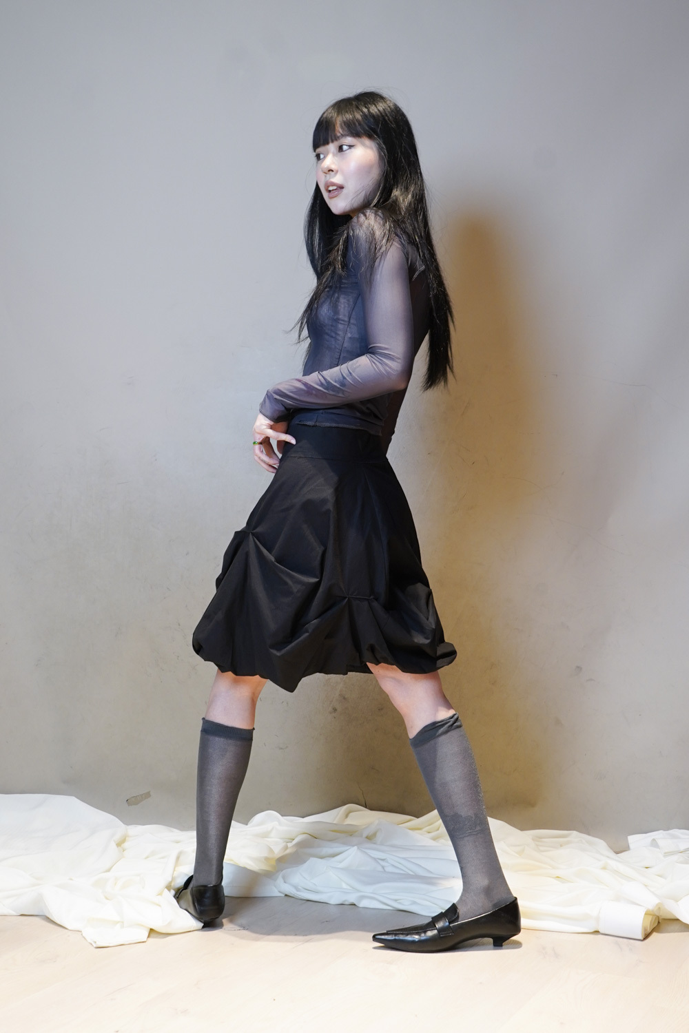 S:Waist: 70cm (27.5”) / Hip: 110cm (43”) / Length: 51cm / Hem: 80-144cm