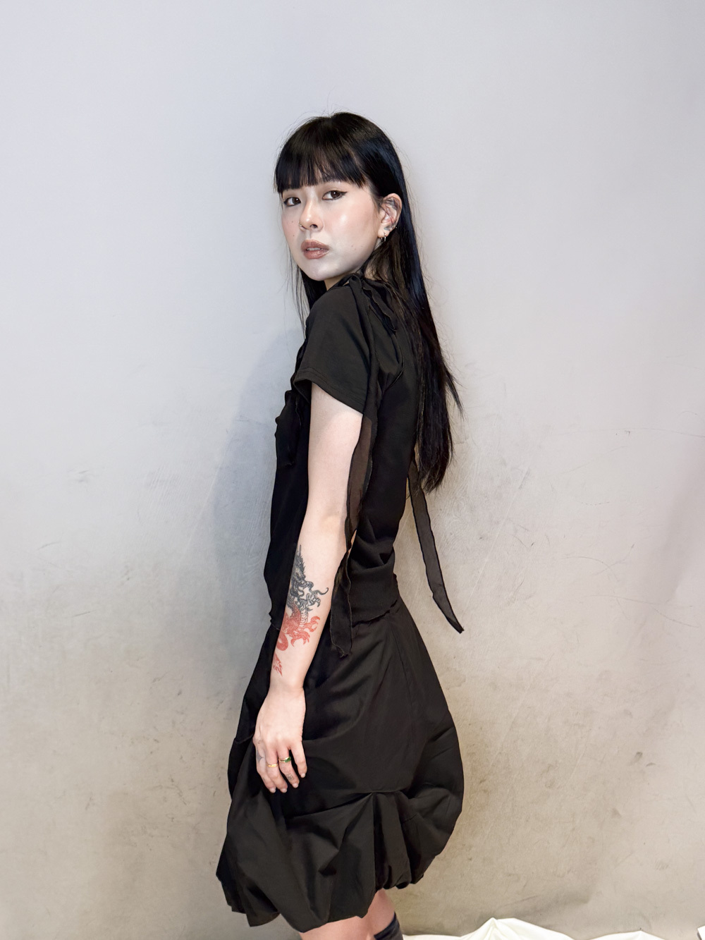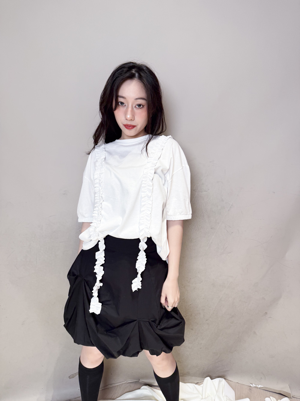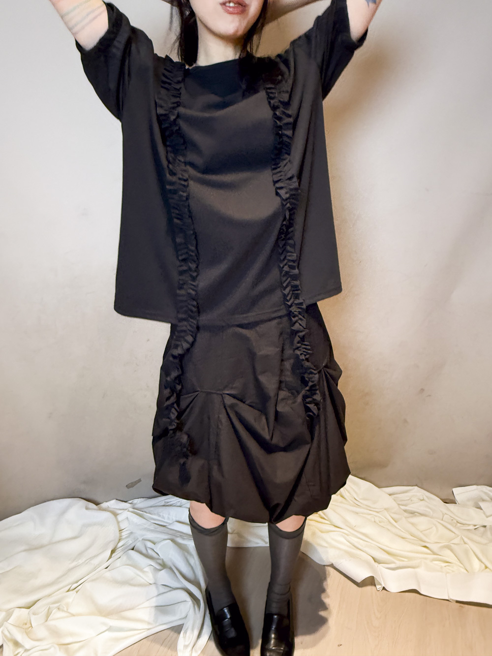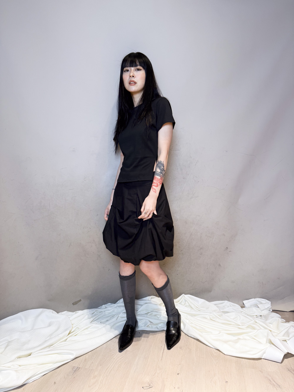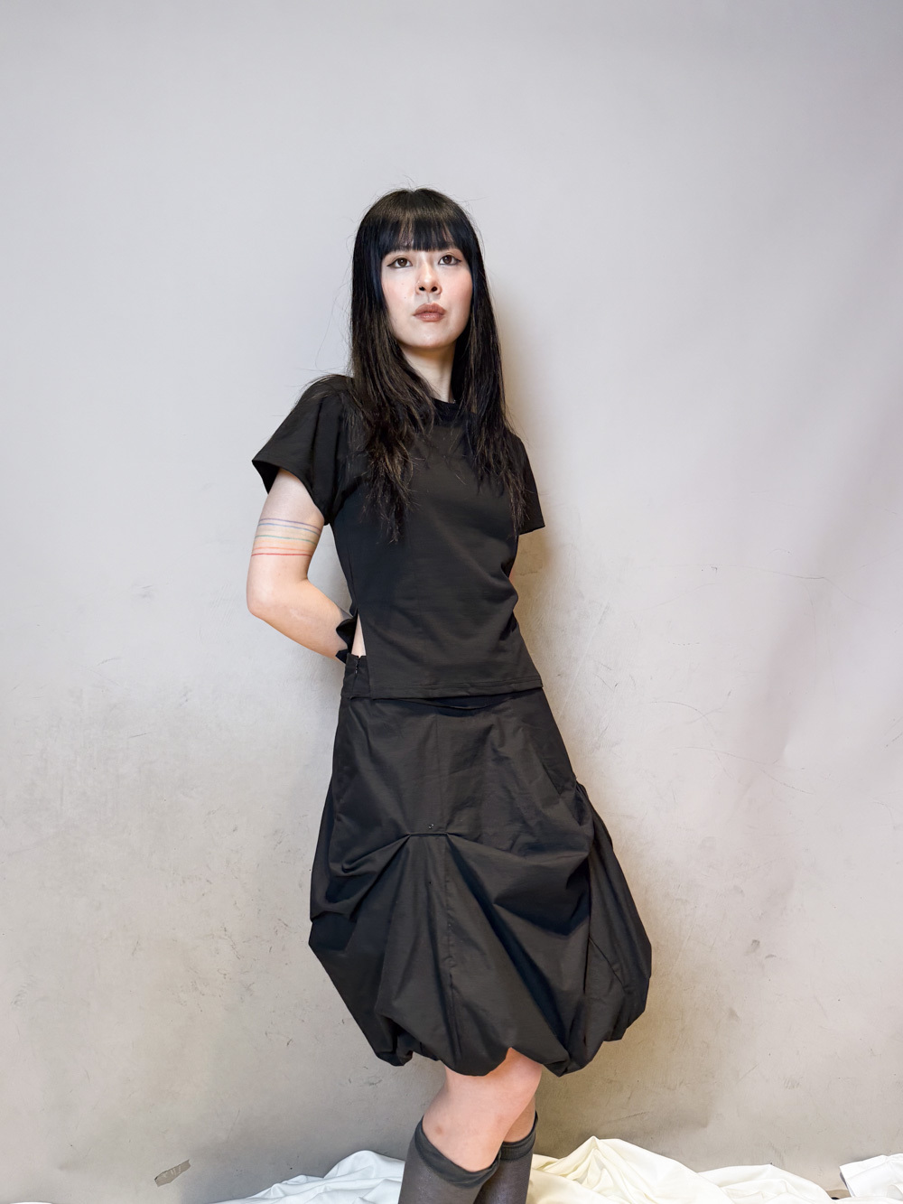 S:Waist: 70cm (27.5”) / Hip: 110cm (43”) / Length: 51cm / Hem: 80-144cm