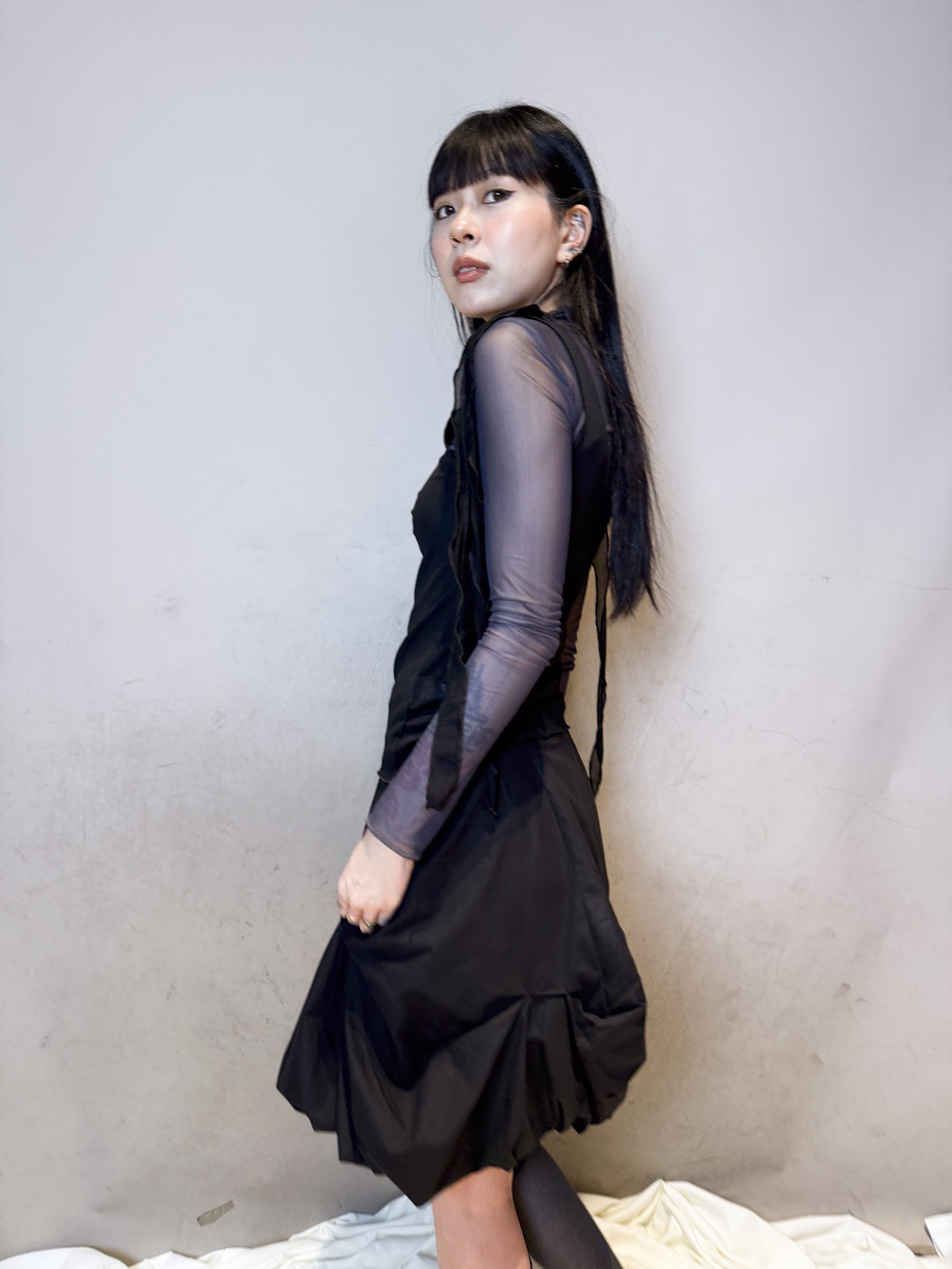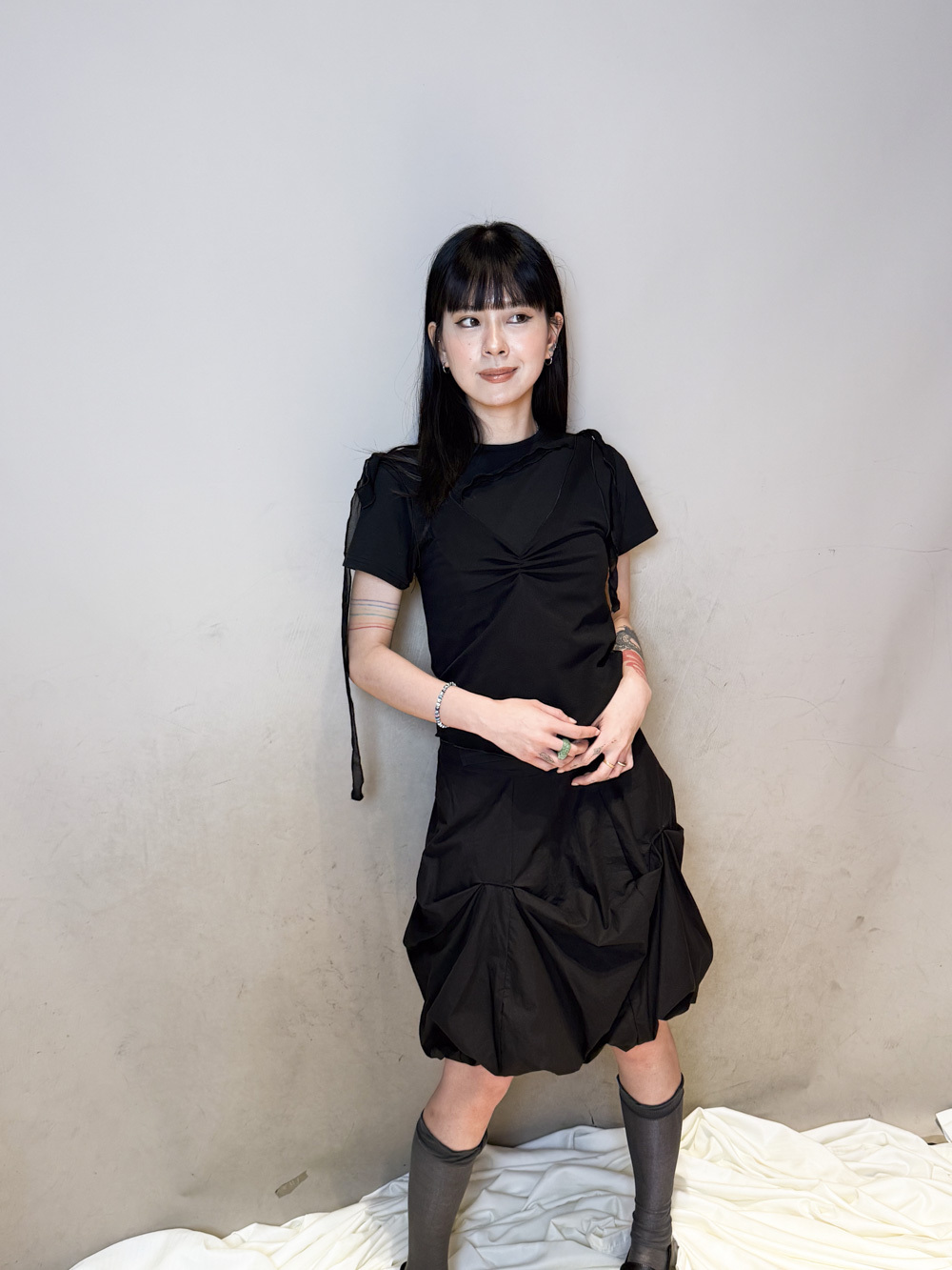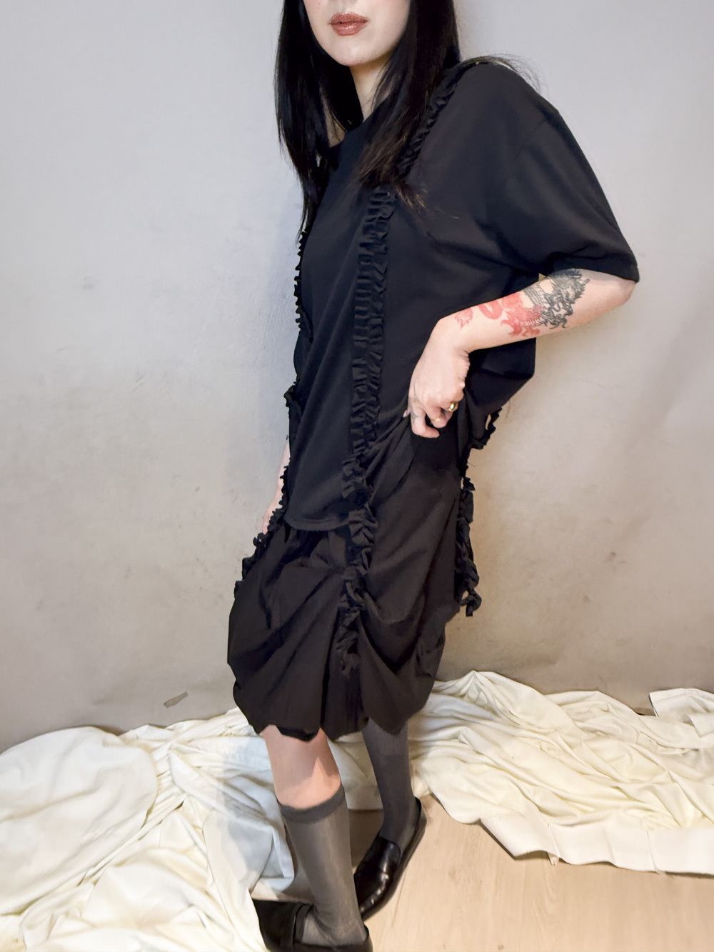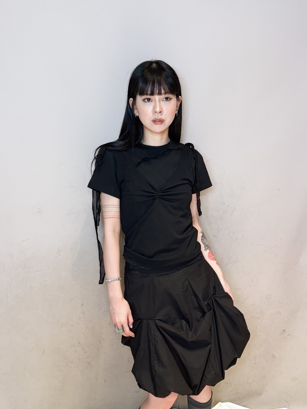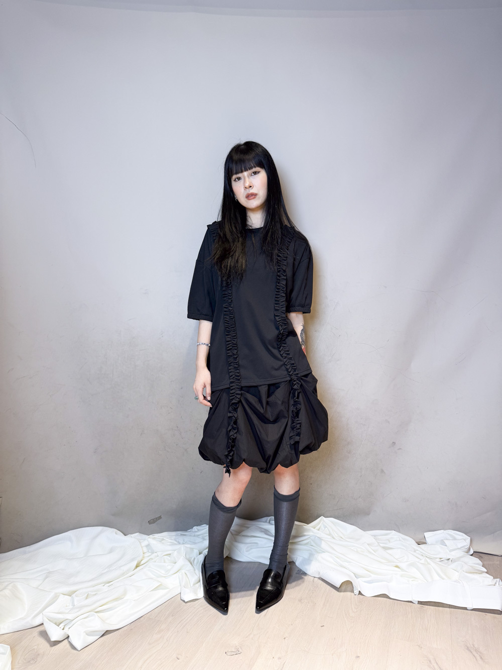 S:Waist: 70cm (27.5”) / Hip: 110cm (43”) / Length: 51cm / Hem: 80-144cm