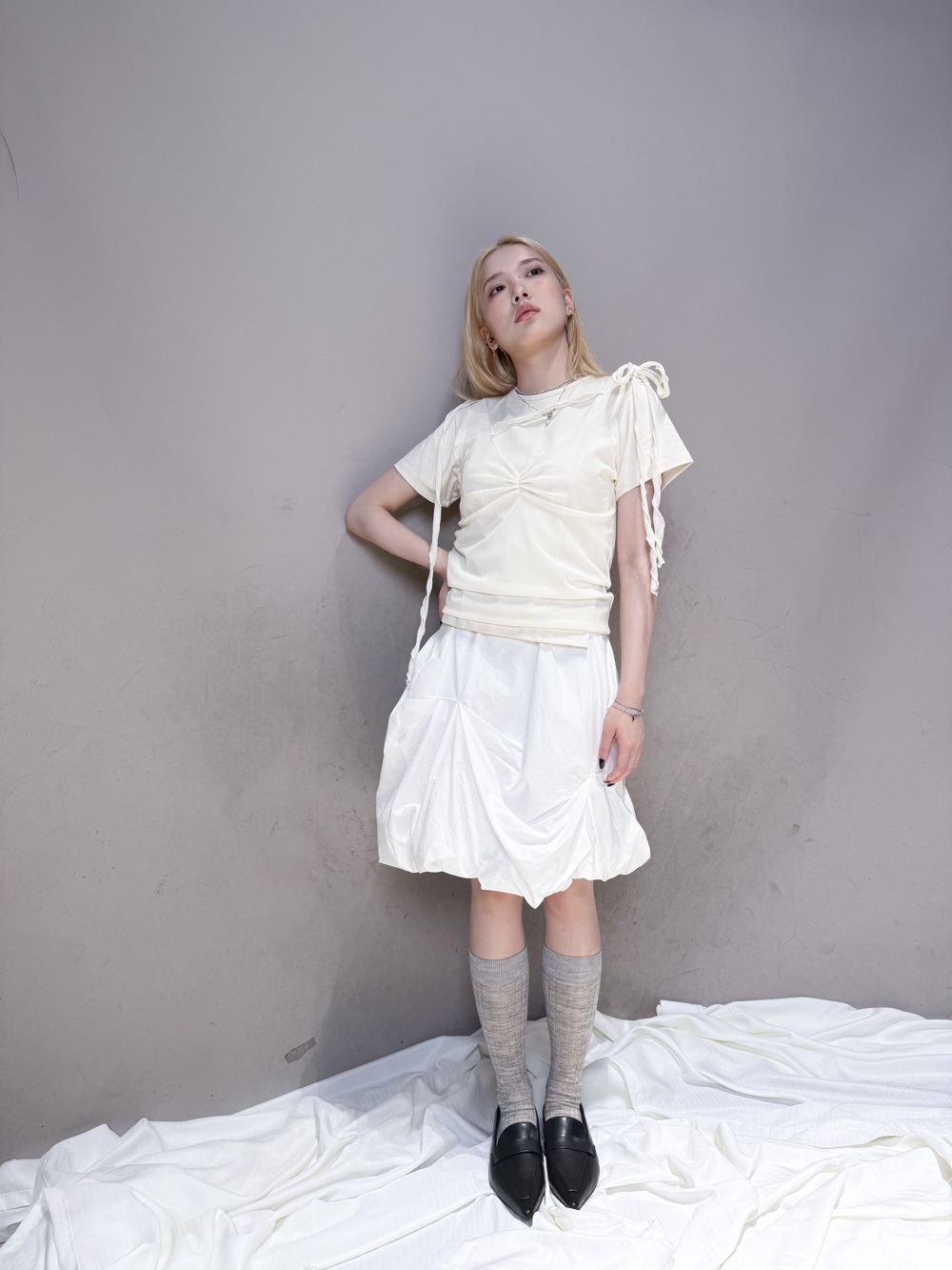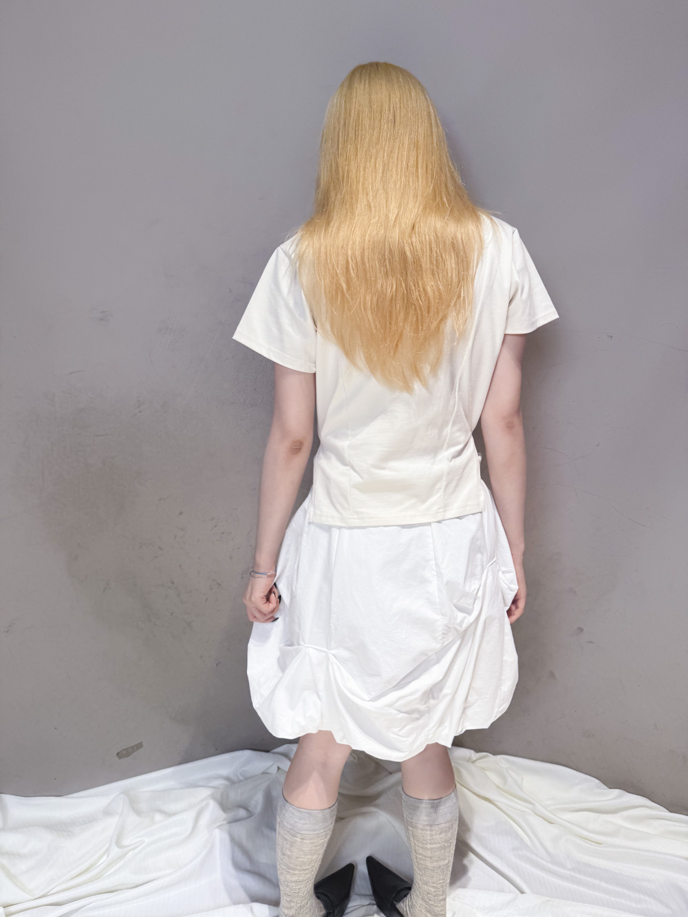 S:Waist: 70cm (27.5”) / Hip: 110cm (43”) / Length: 51cm / Hem: 80-144cm