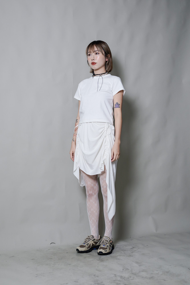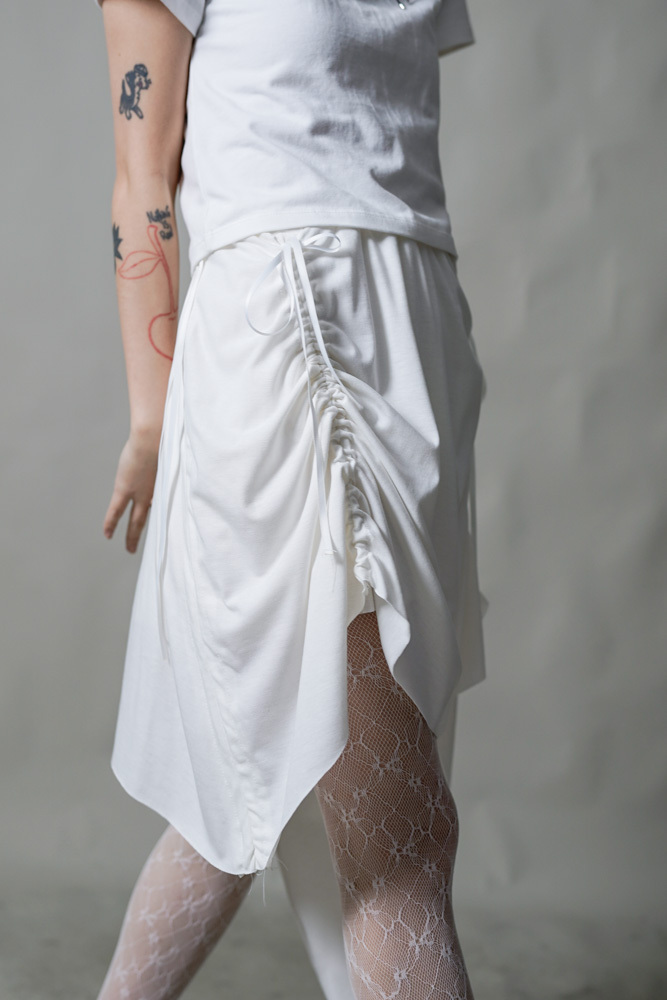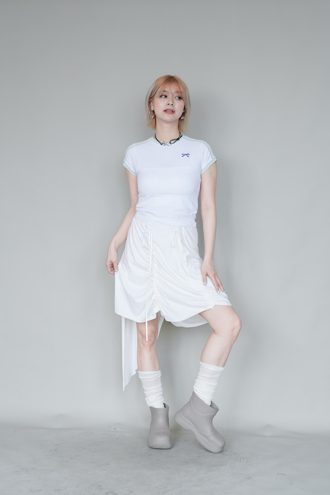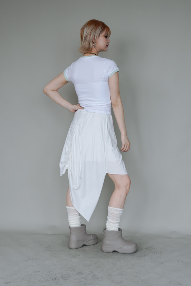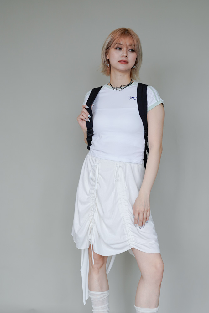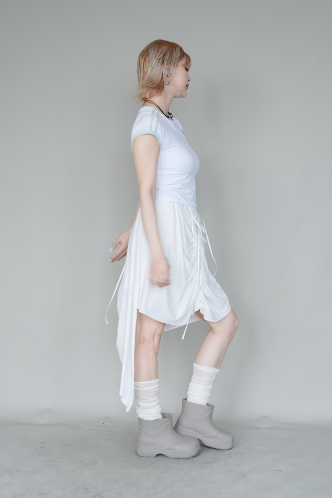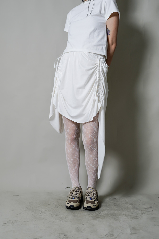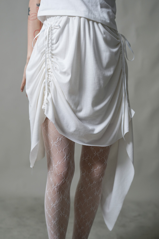 Irregular x ribbon cotton skirt (WHITE /BLACK)