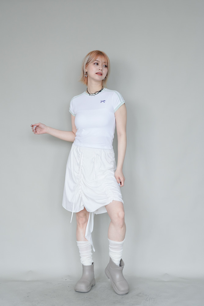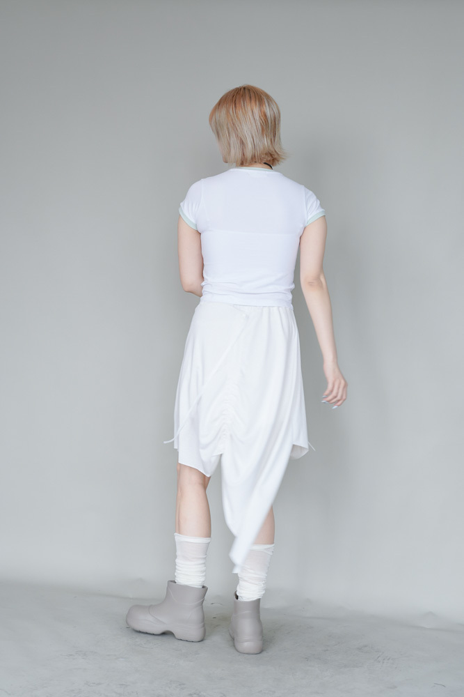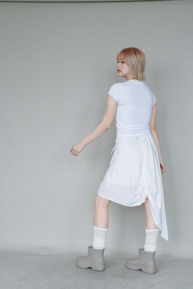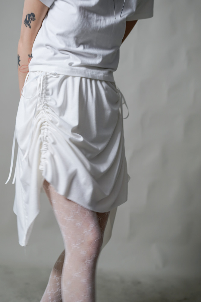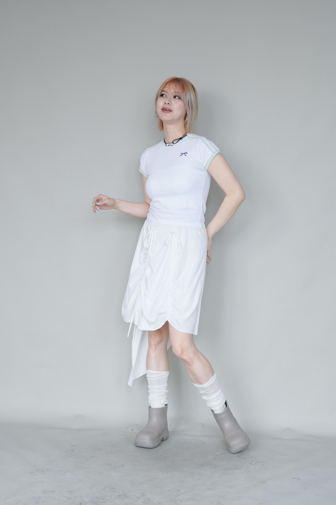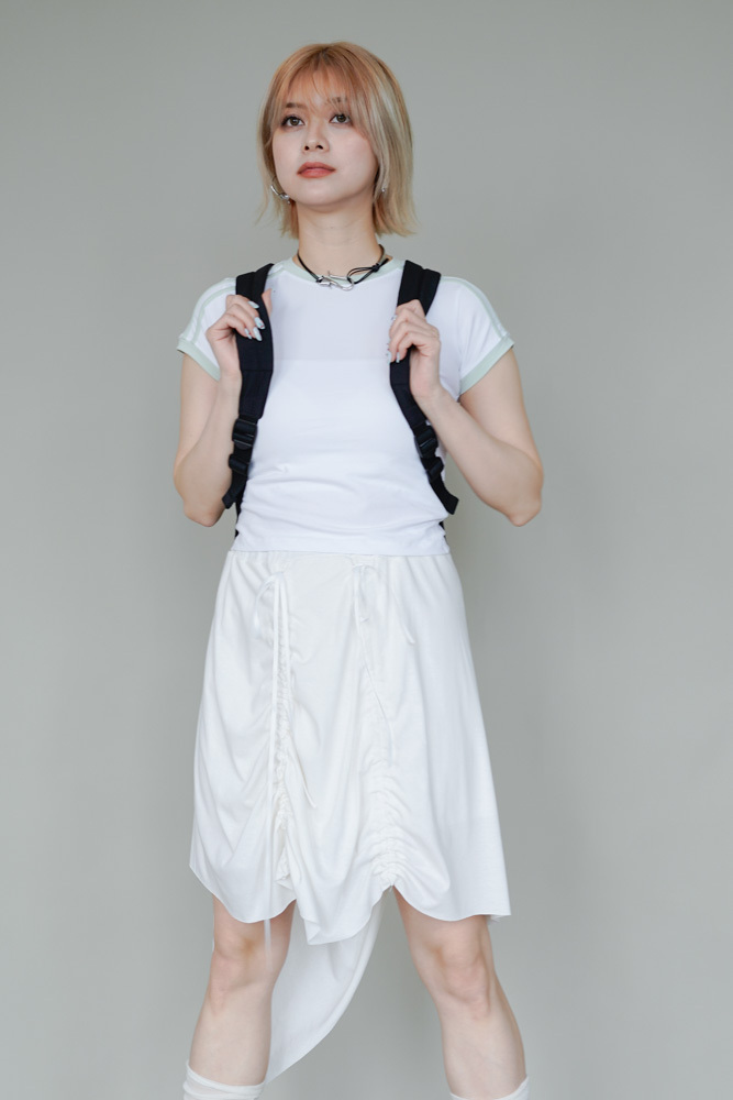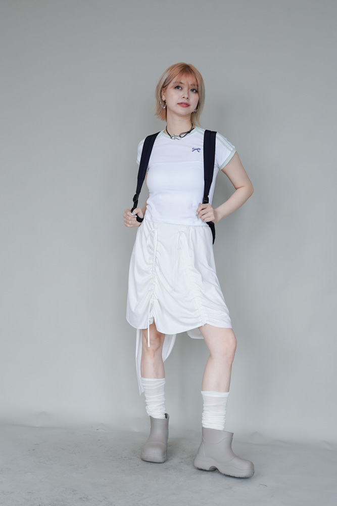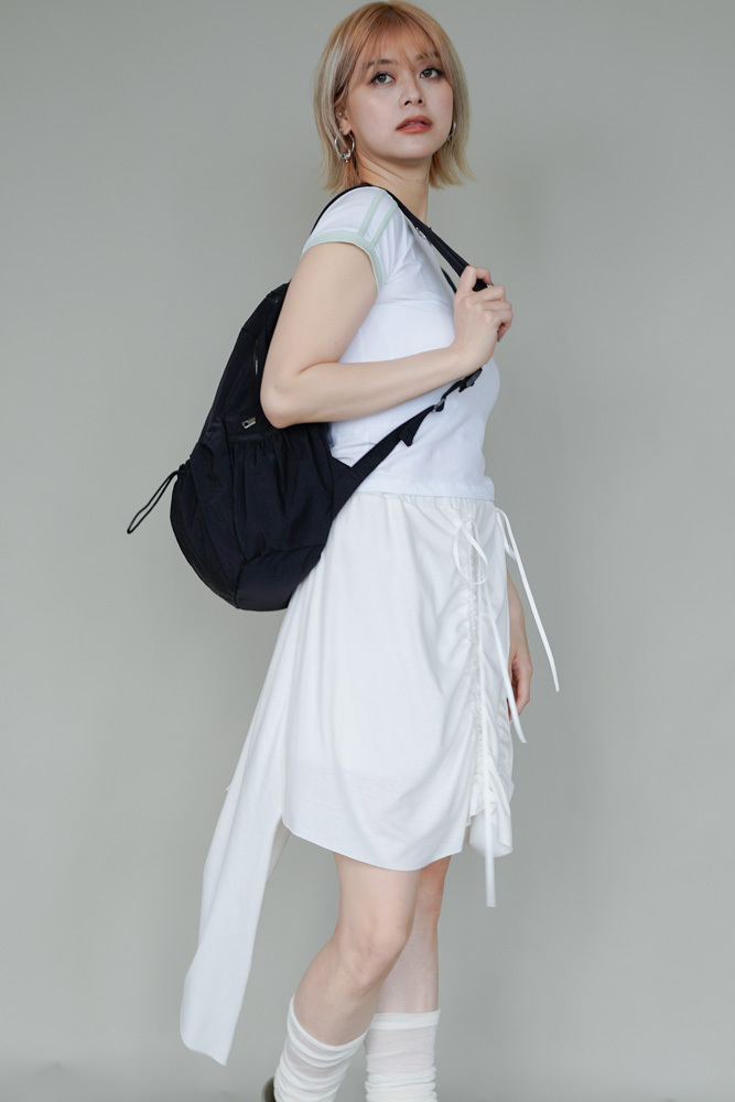 Irregular x ribbon cotton skirt (WHITE /BLACK)