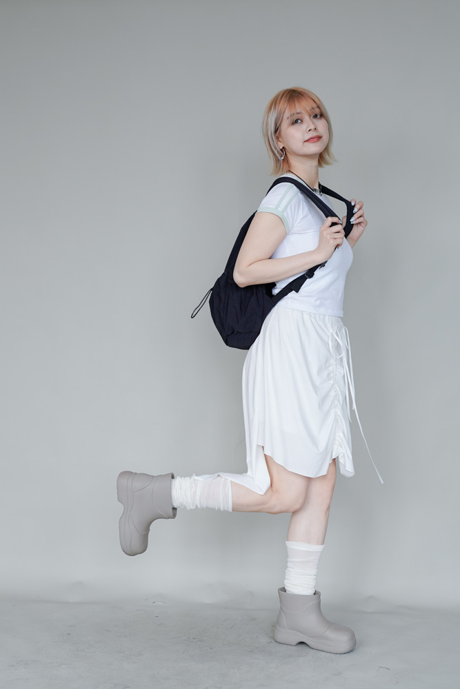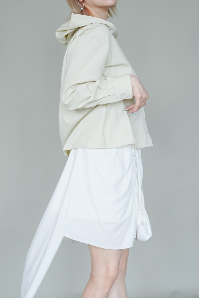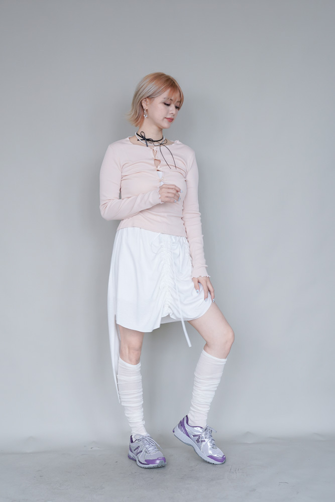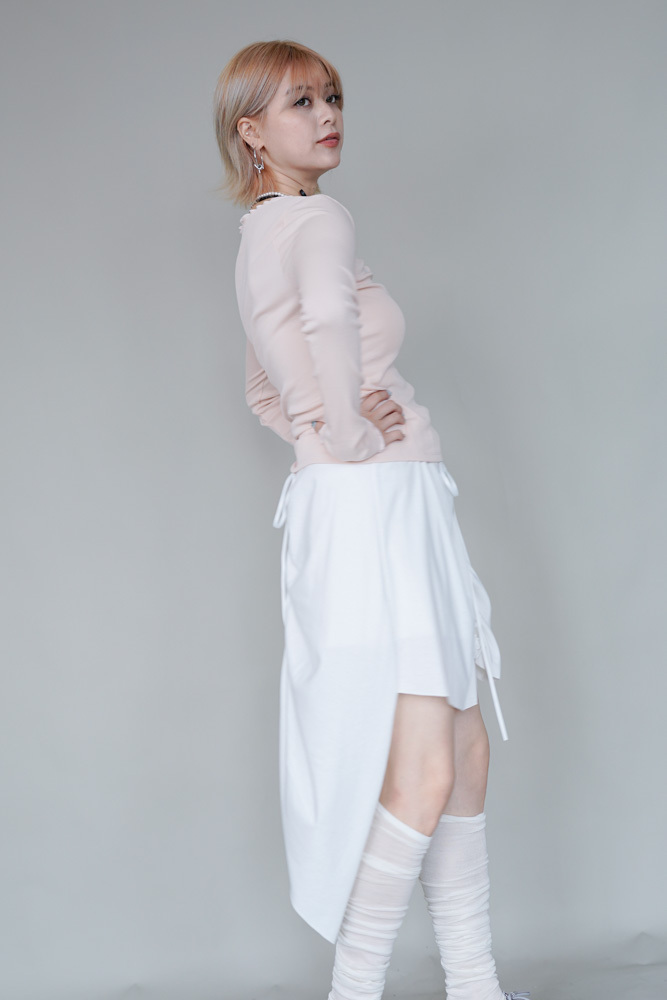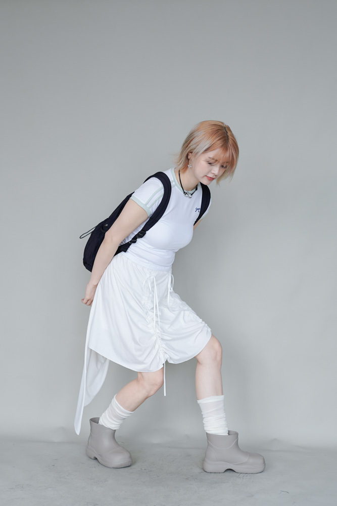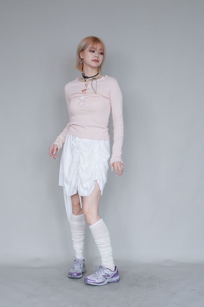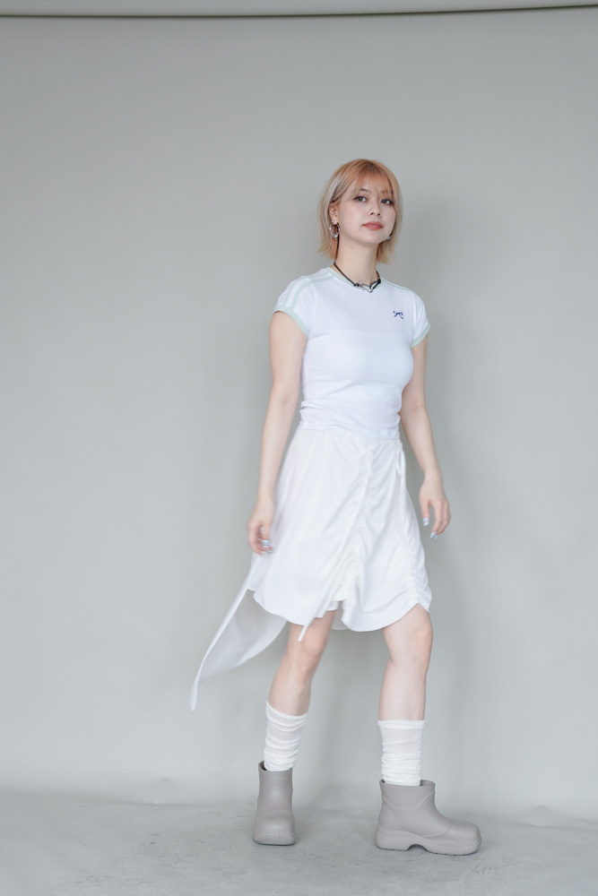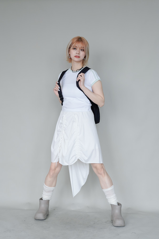 Irregular x ribbon cotton skirt (WHITE /BLACK)