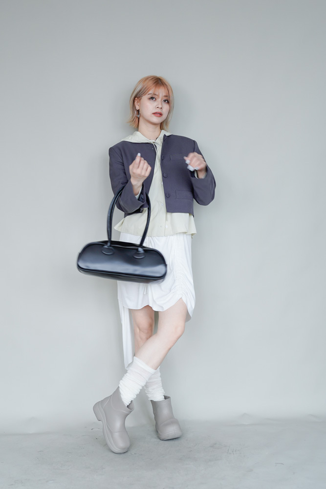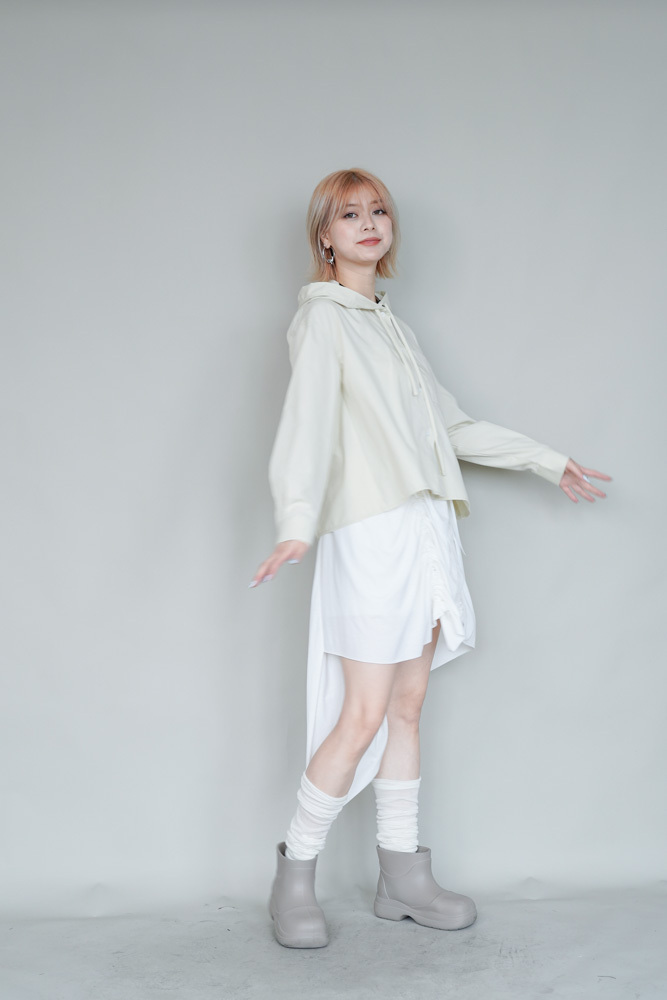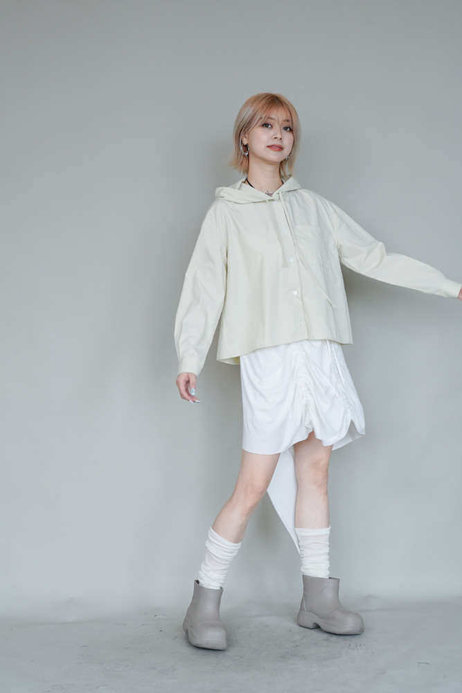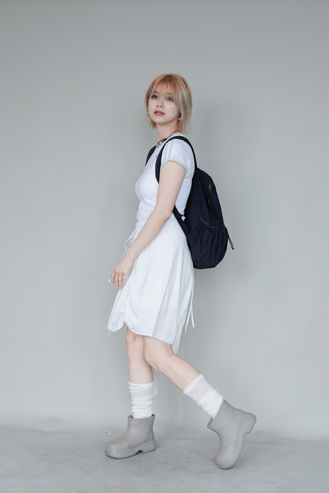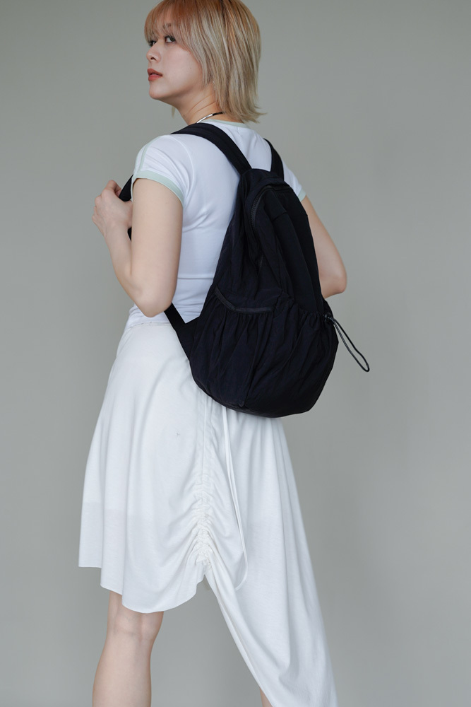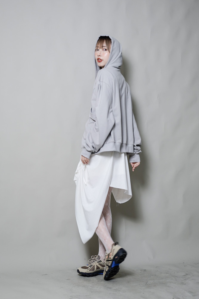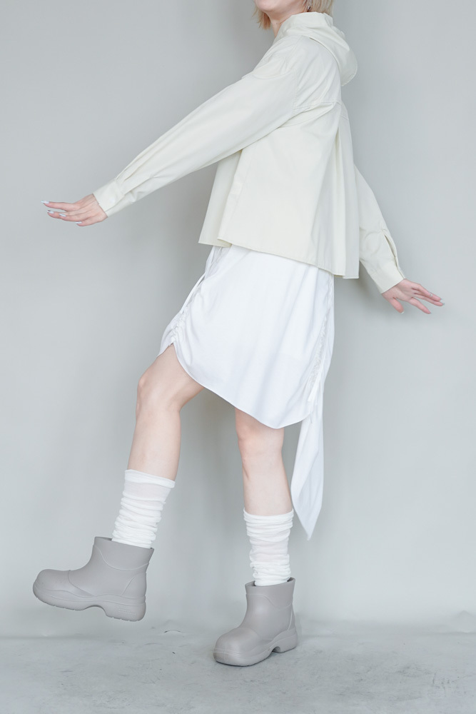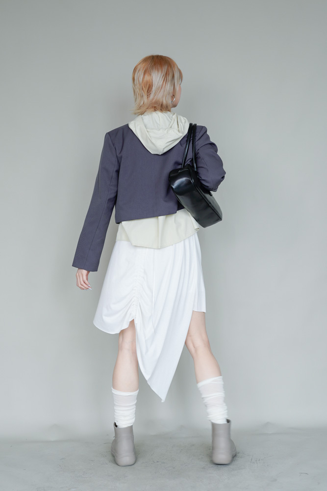Irregular x ribbon cotton skirt (WHITE /BLACK)