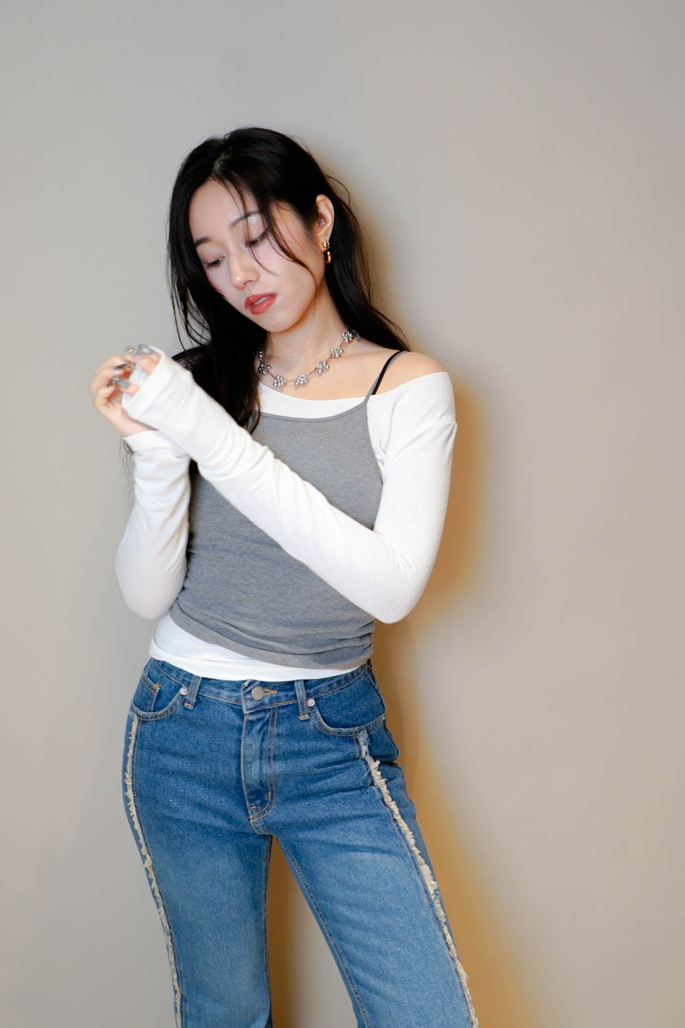 Layering halter Sun top (WHITE/GREY/BROWN/BLACK)