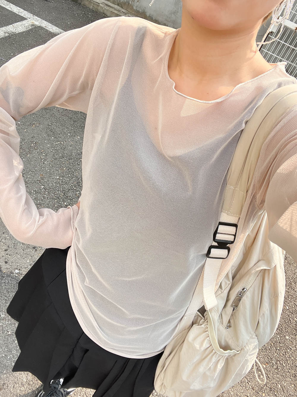 質地微微挺身/輕微露膚 小性感/ 領口袖口微